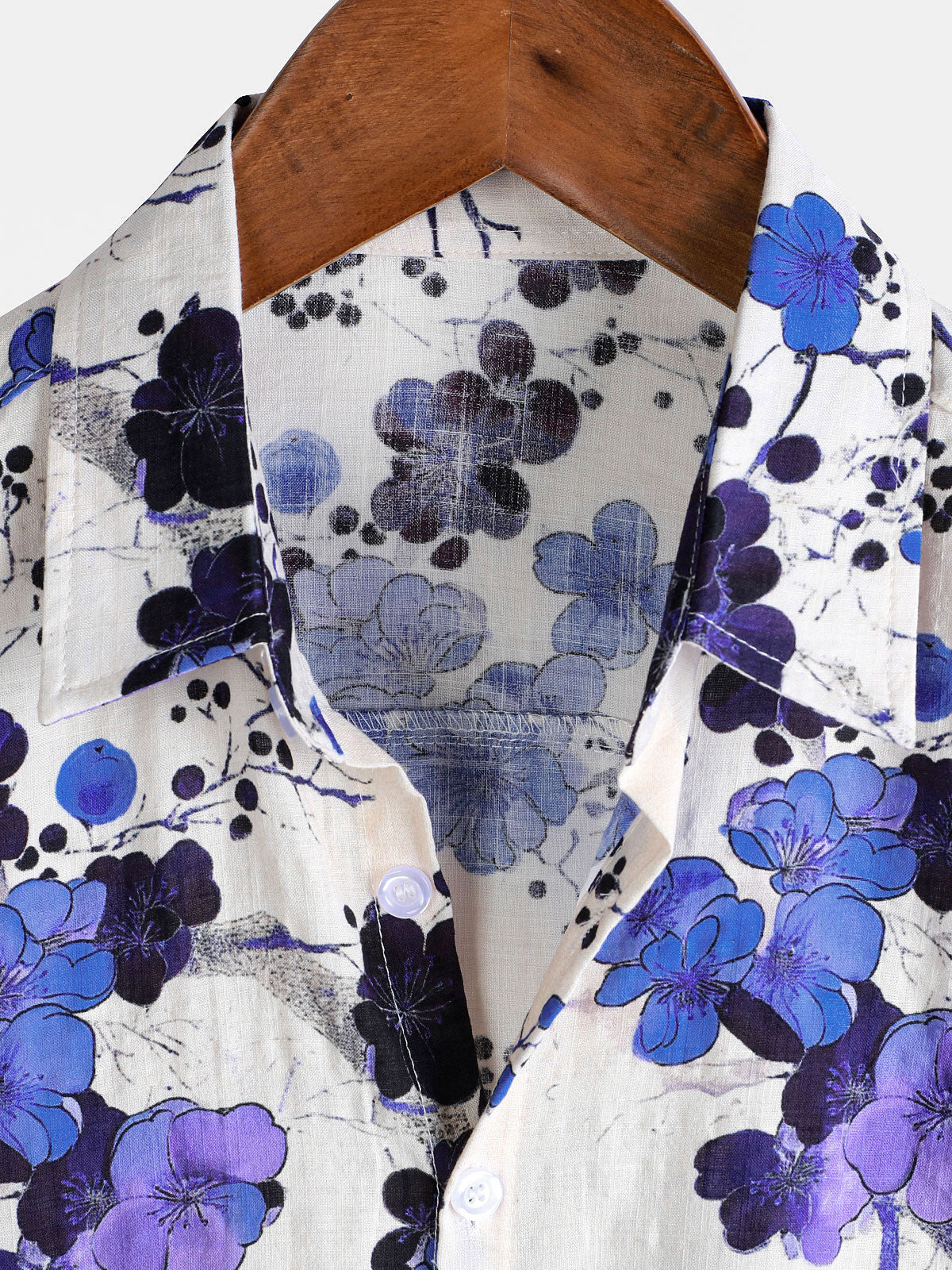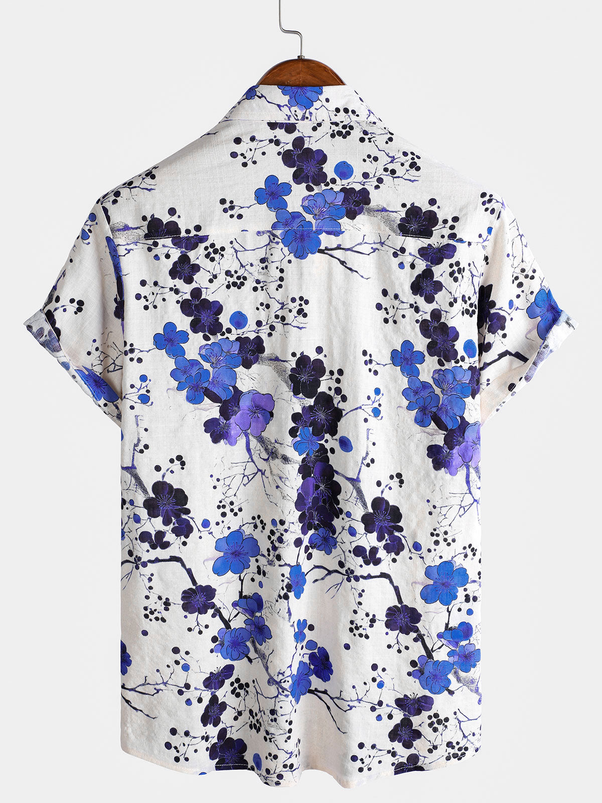 Men's Retro Blue Blossom Summer Holiday Short Sleeve Shirt