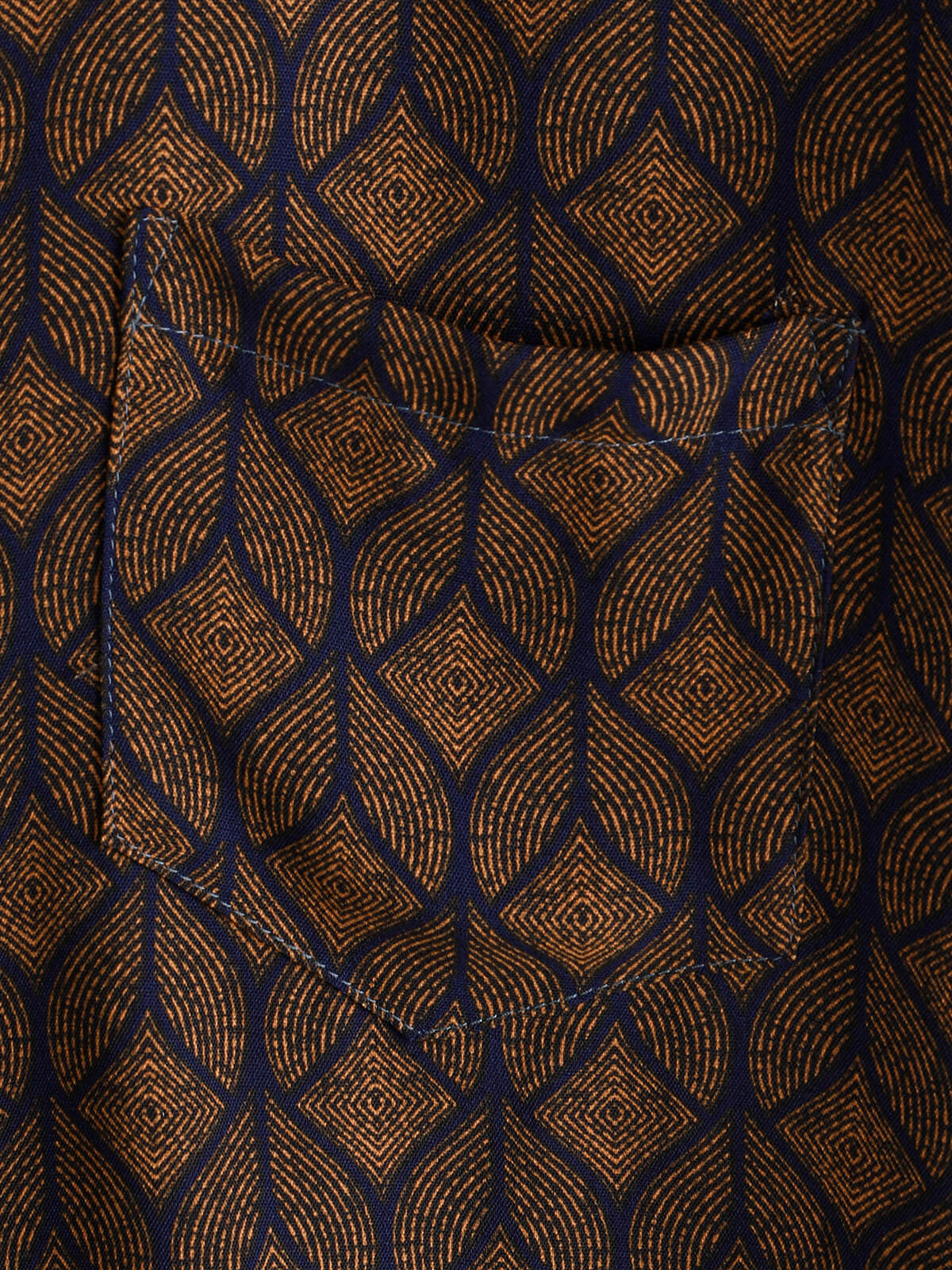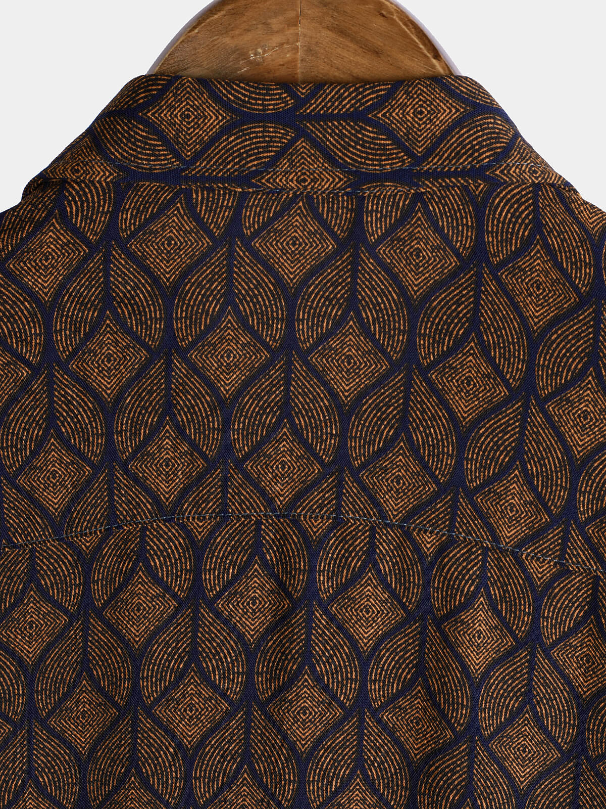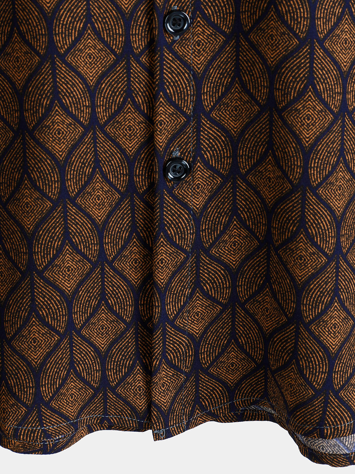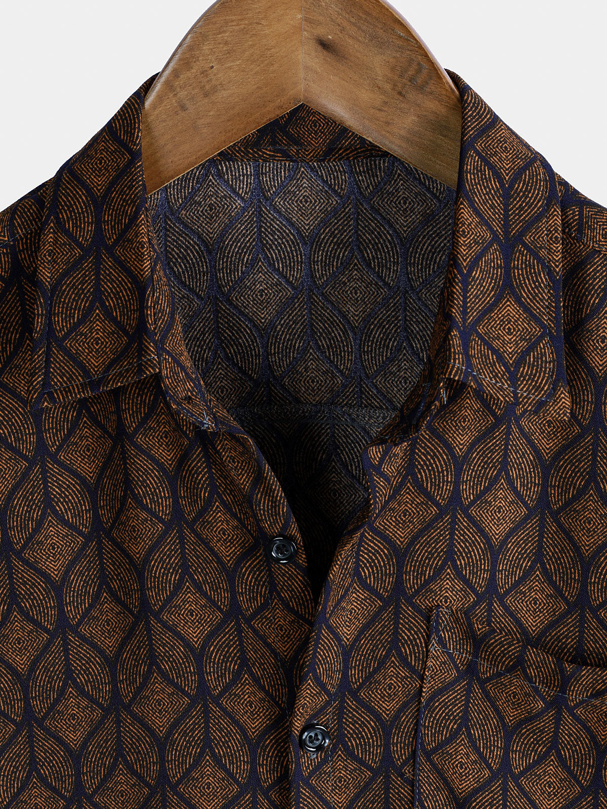 Men's Retro Brown Geometric Print Pocket Short Sleeve Shirt