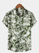 Men's Abstract Botanical Button Up Short Sleeve Shirt