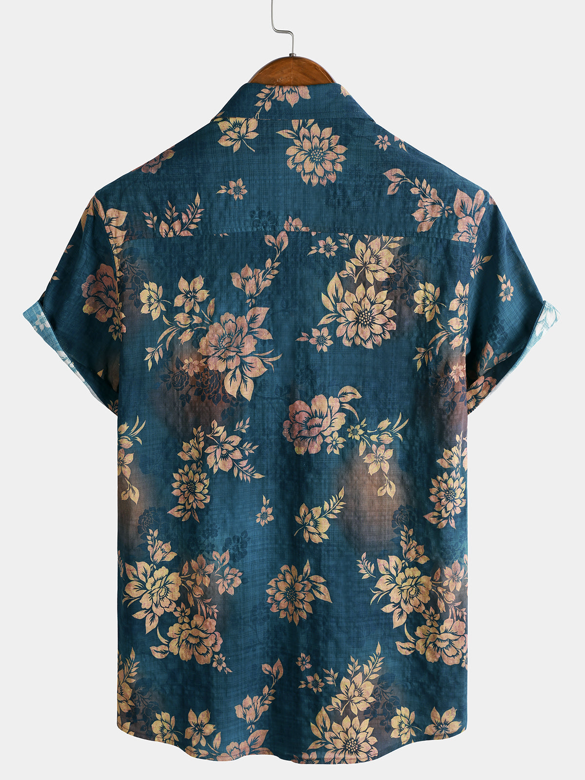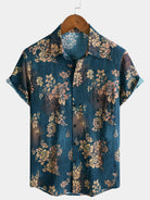 Men's Blue Casual Floral Summer Beach Short Sleeve Shirt