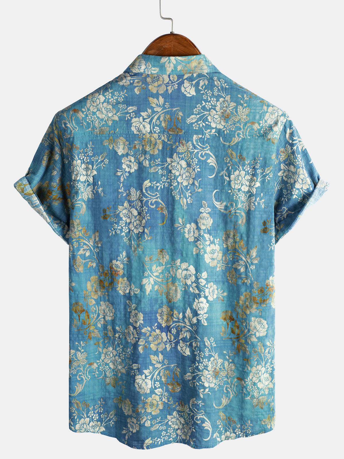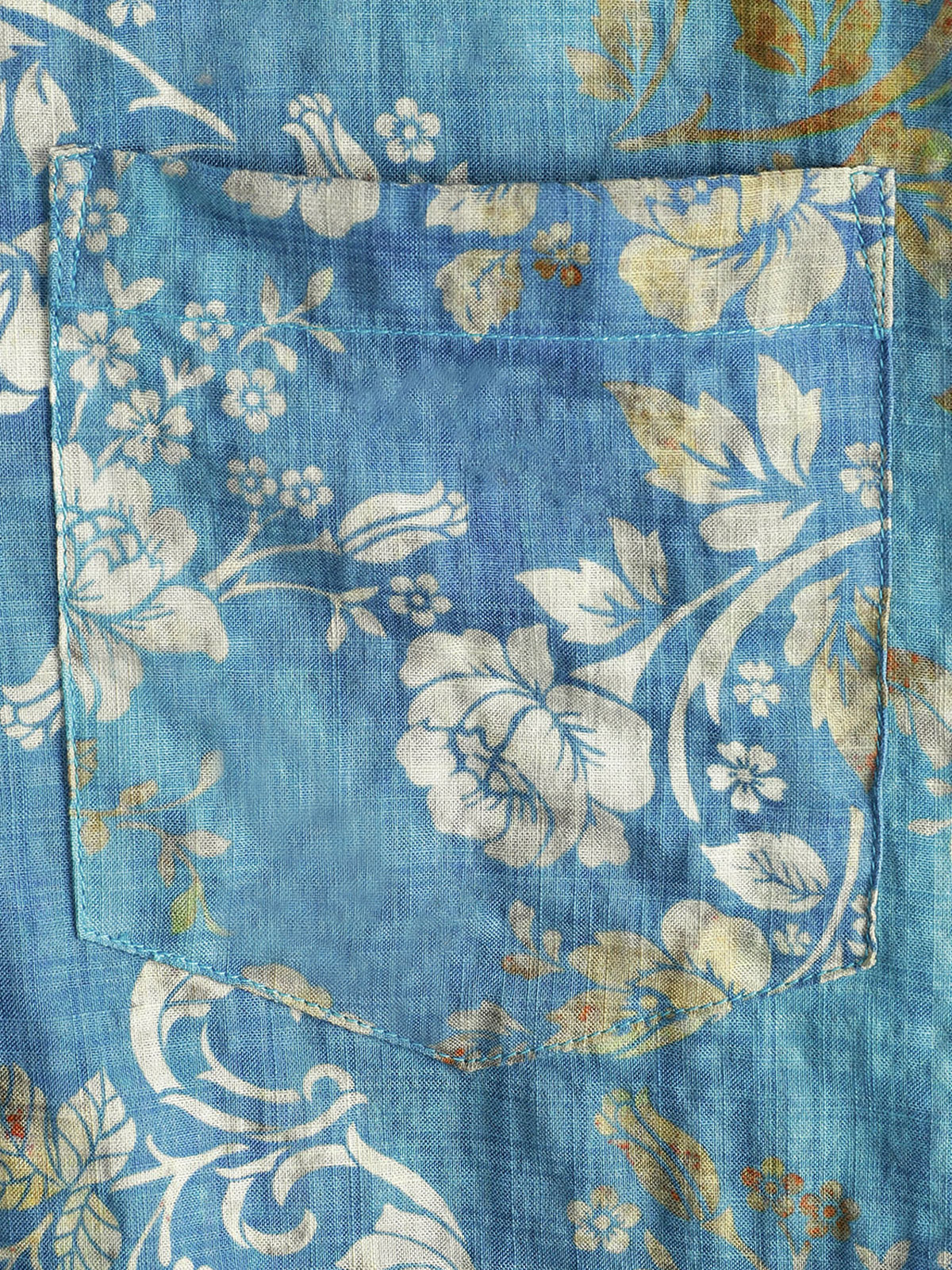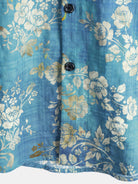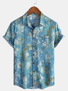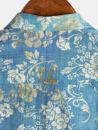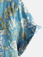 Men's Blue Floral Print Pocket Short Sleeve Shirt