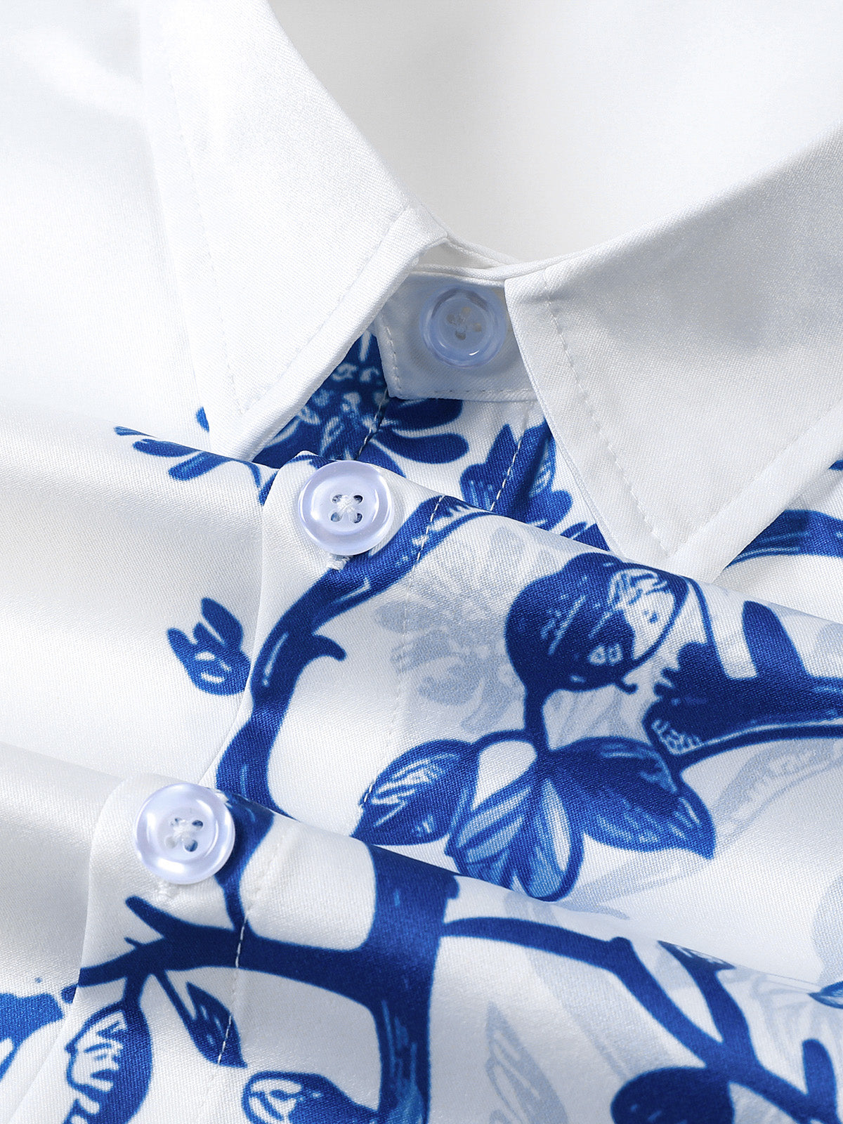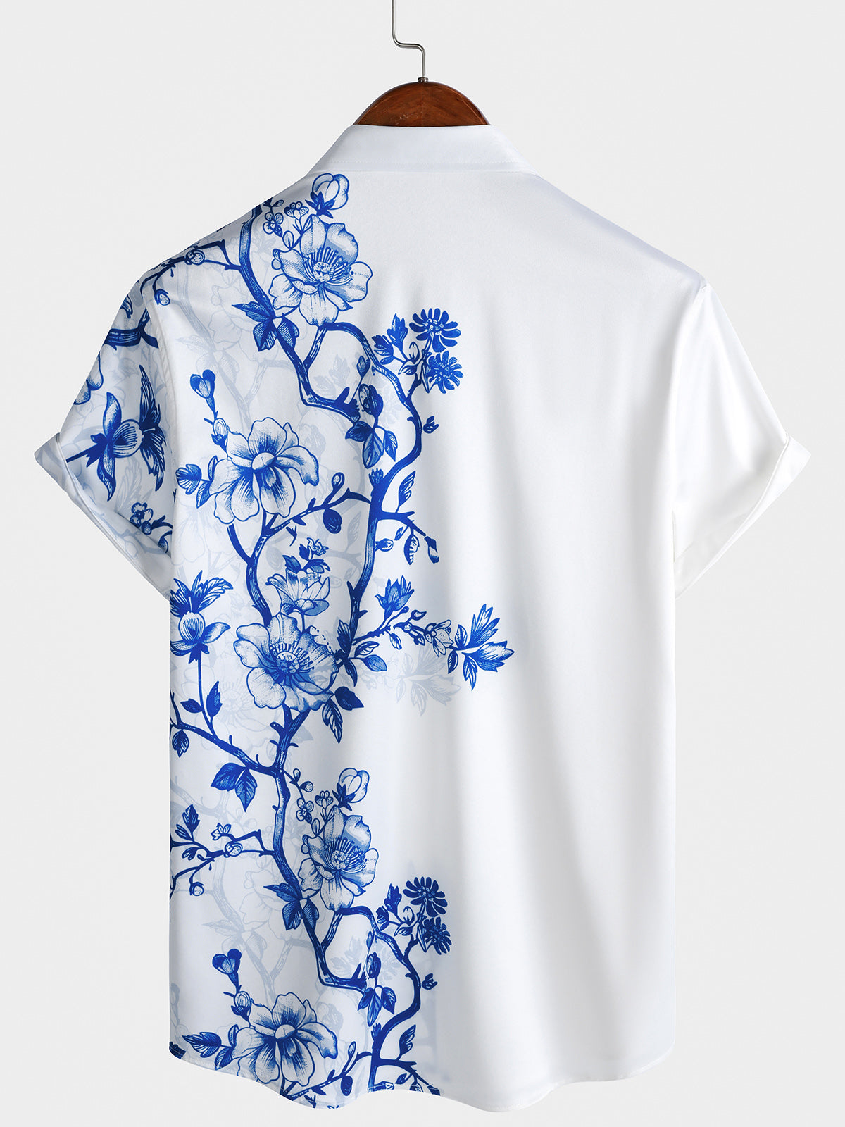 Men's Blue Floral Print Summer Beach Cruise Hawaiian Short Sleeve Shirt