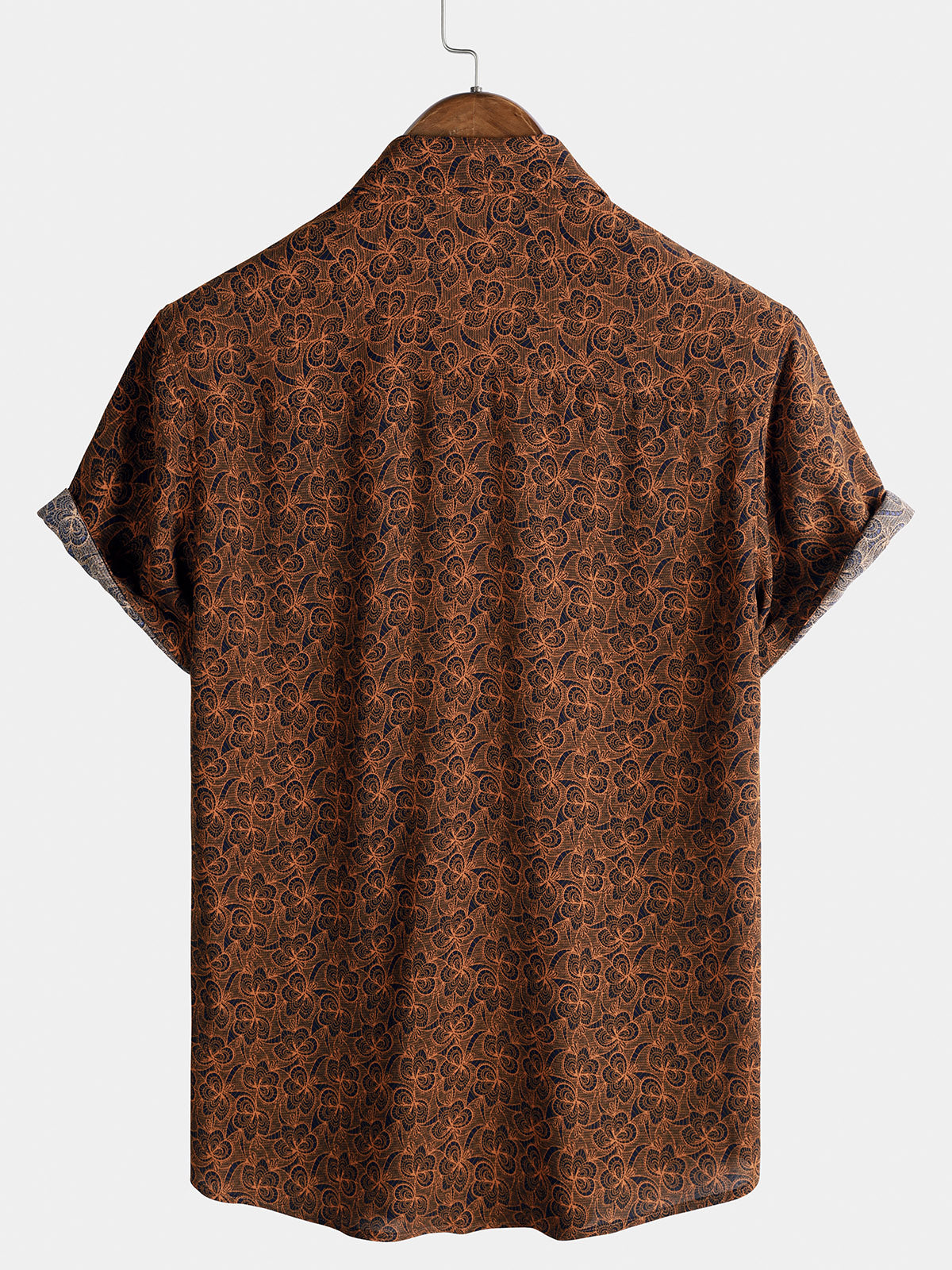 Men's Casual Floral Pattern Summer Soft Short Sleeve Shirt