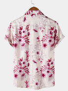 Men's Pink Floral Holiday Button Up Short Sleeve Shirt