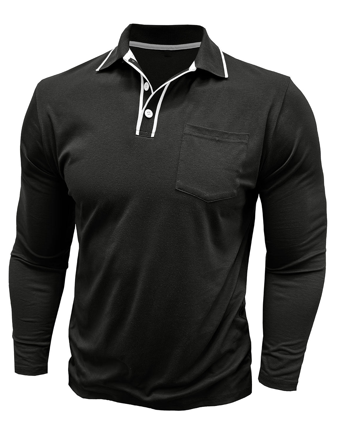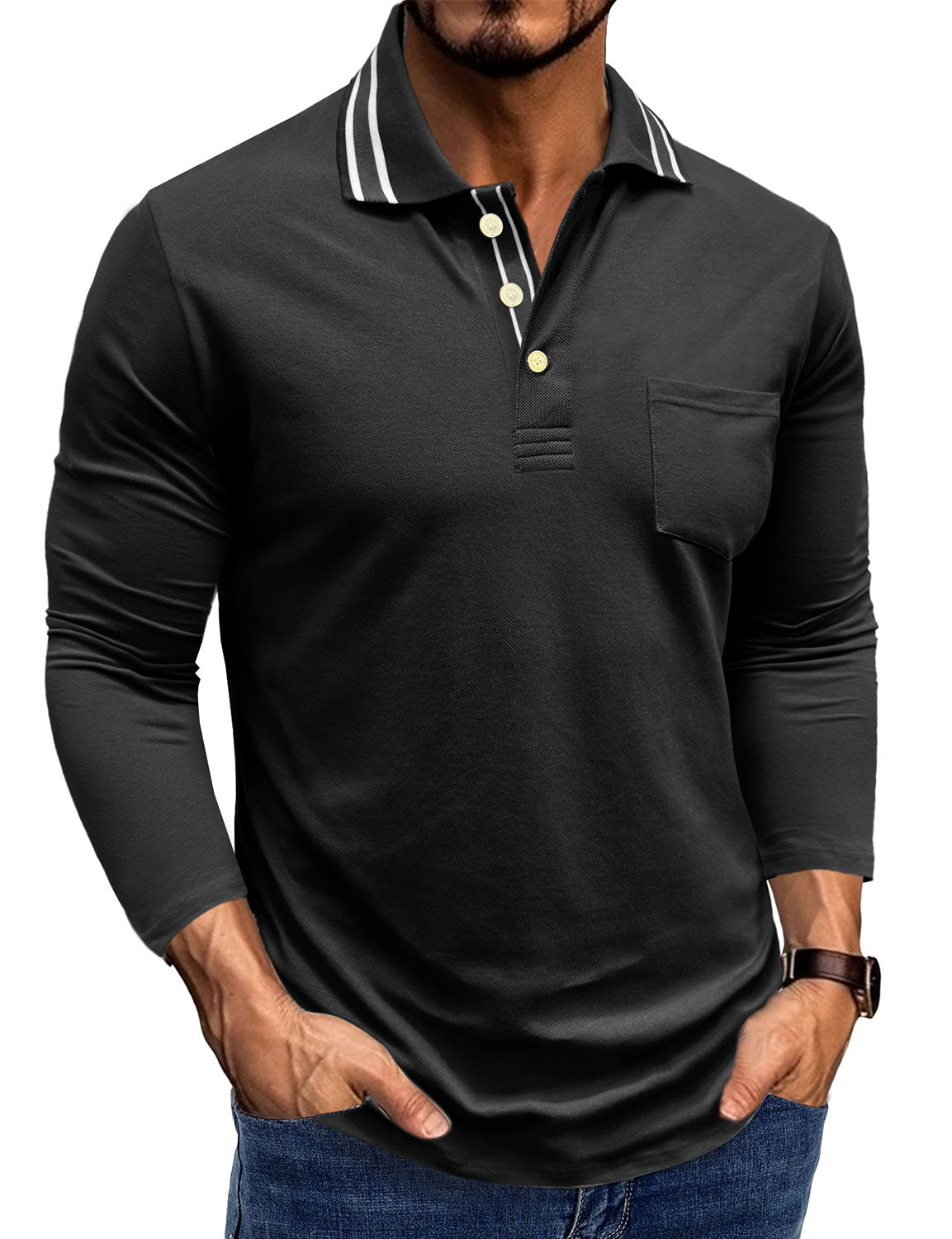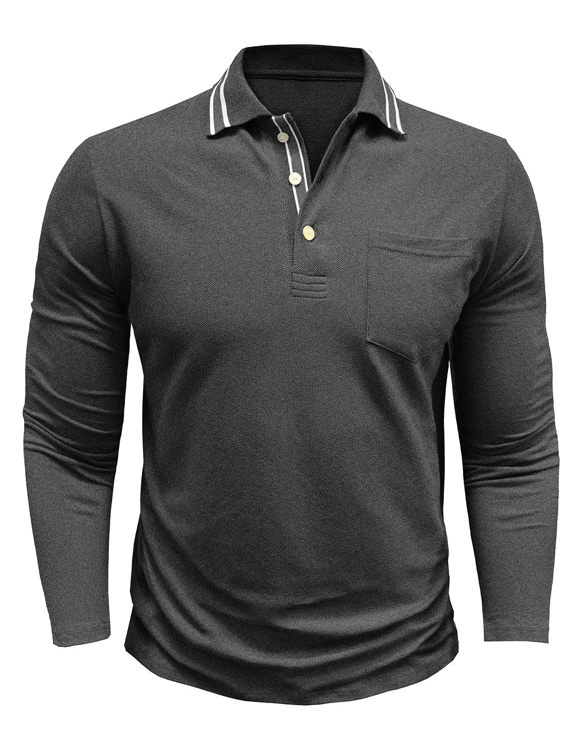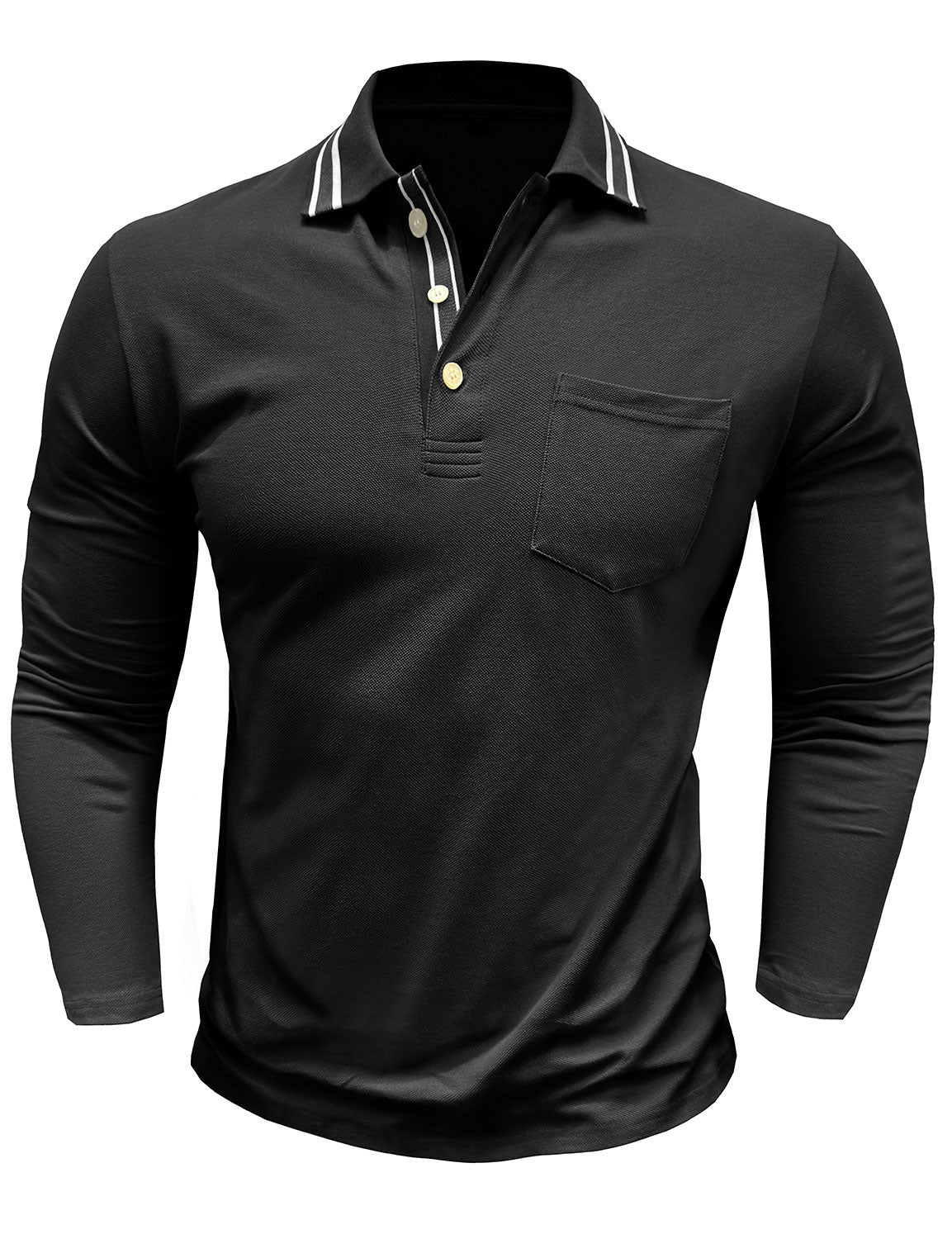 Men's Solid Color Pocket Polo Long Sleeve Shirt