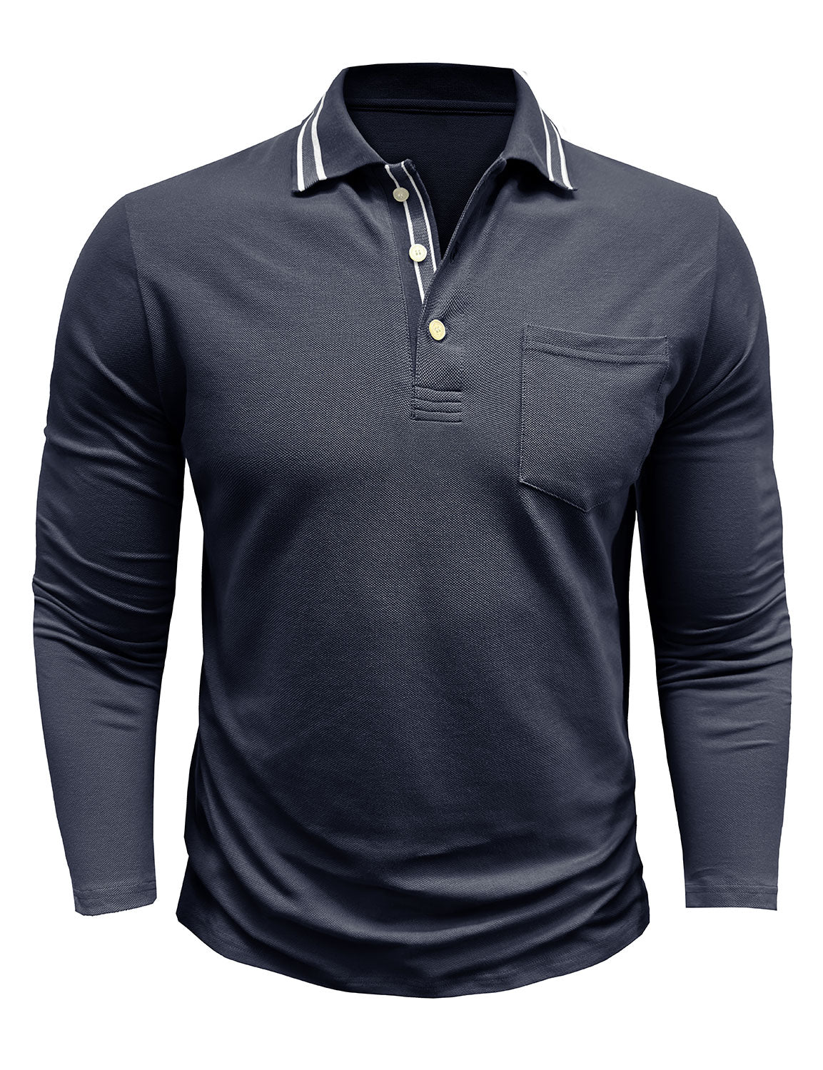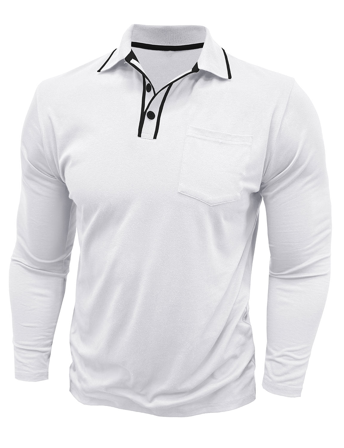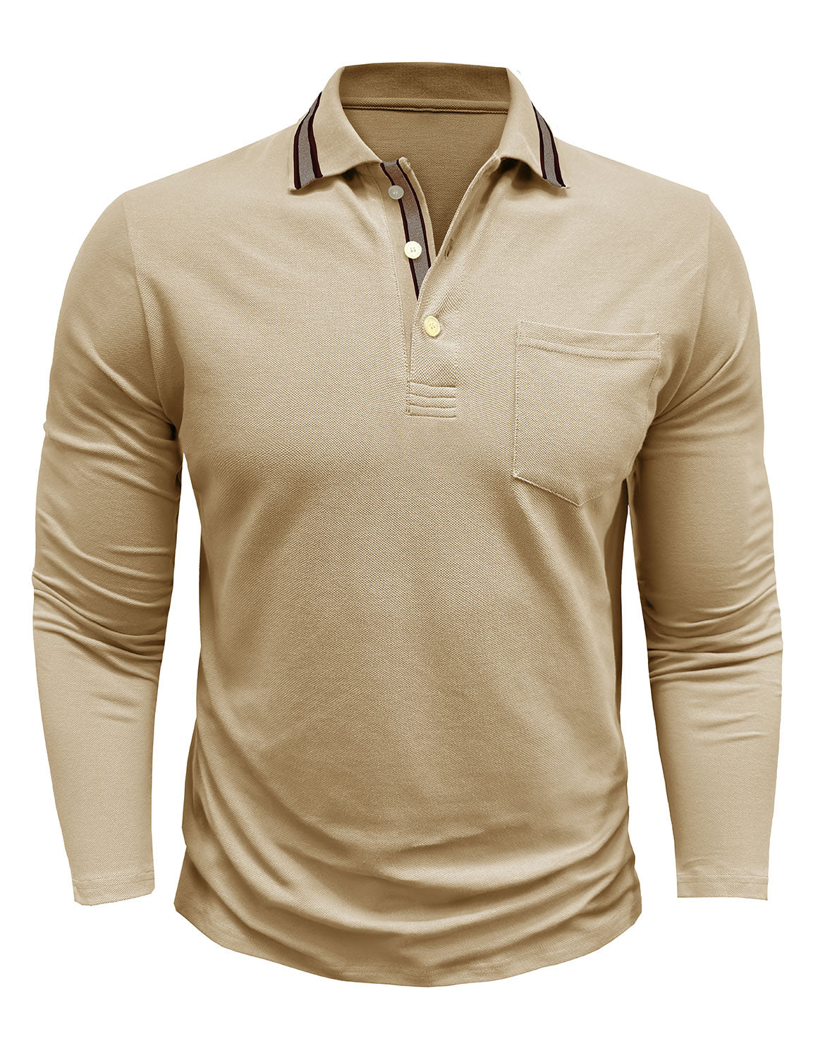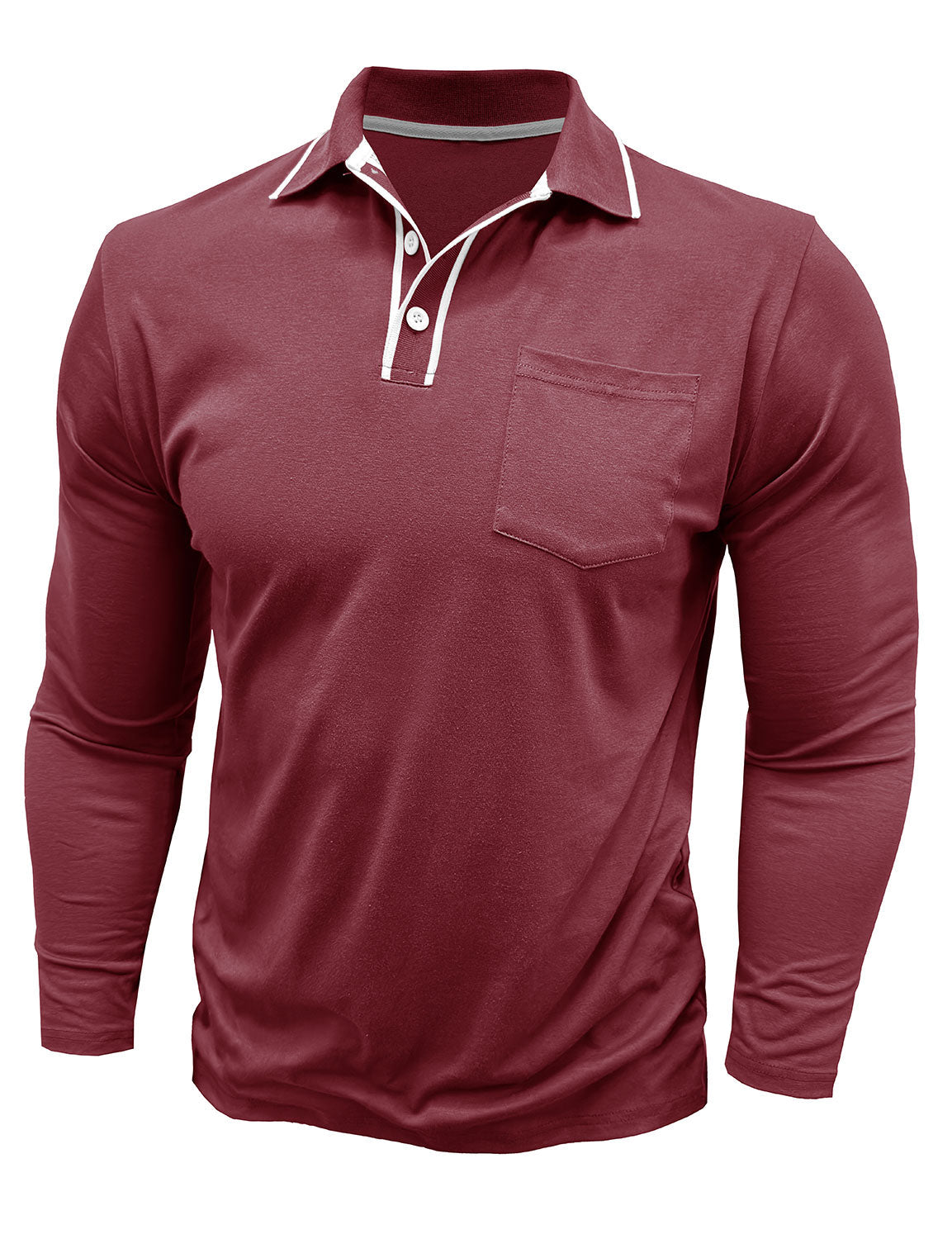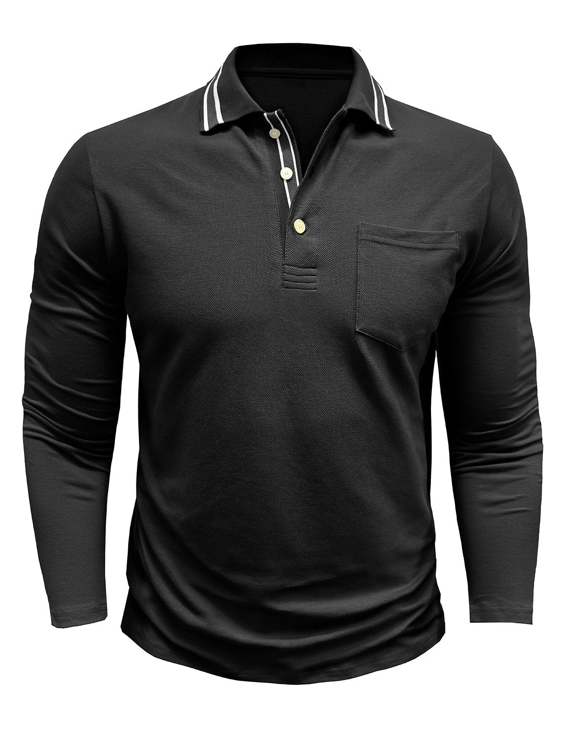Men's Solid Color Pocket Polo Long Sleeve Shirt