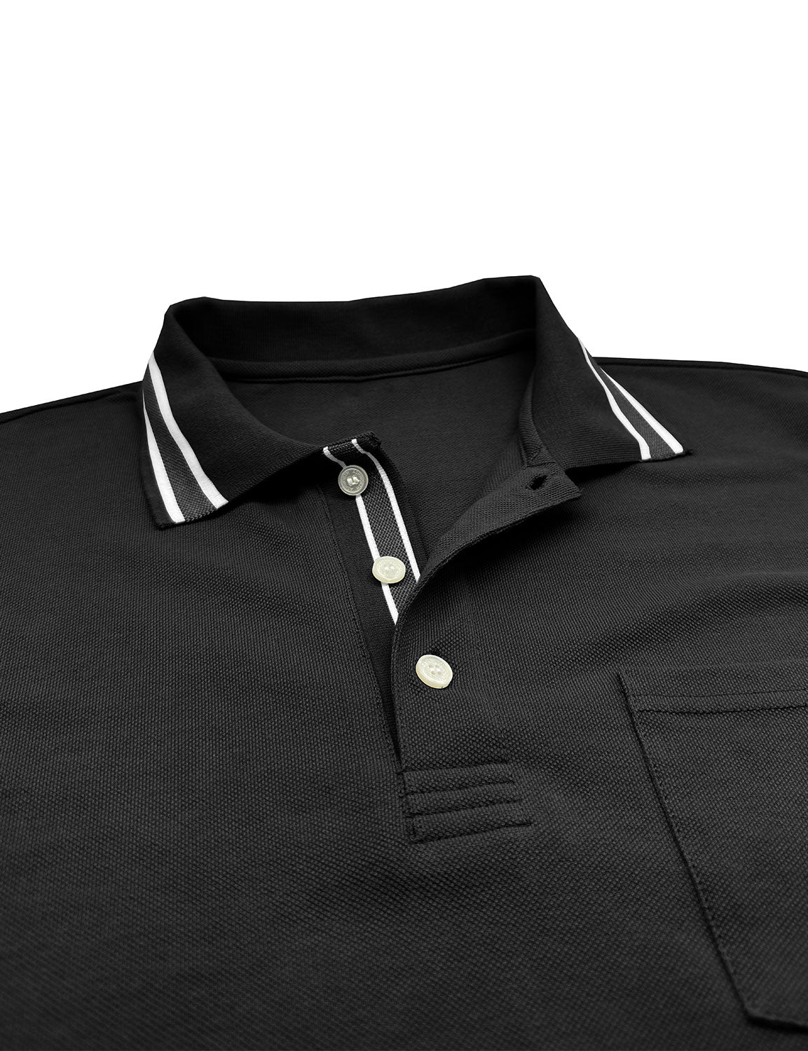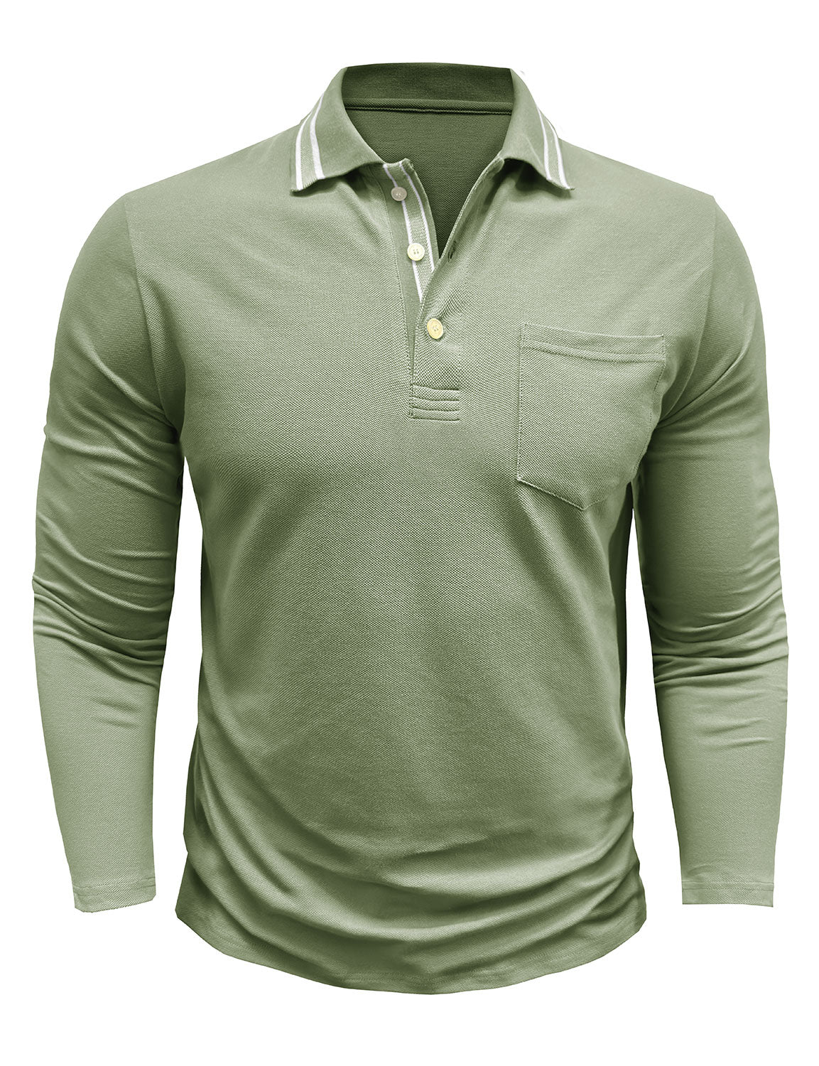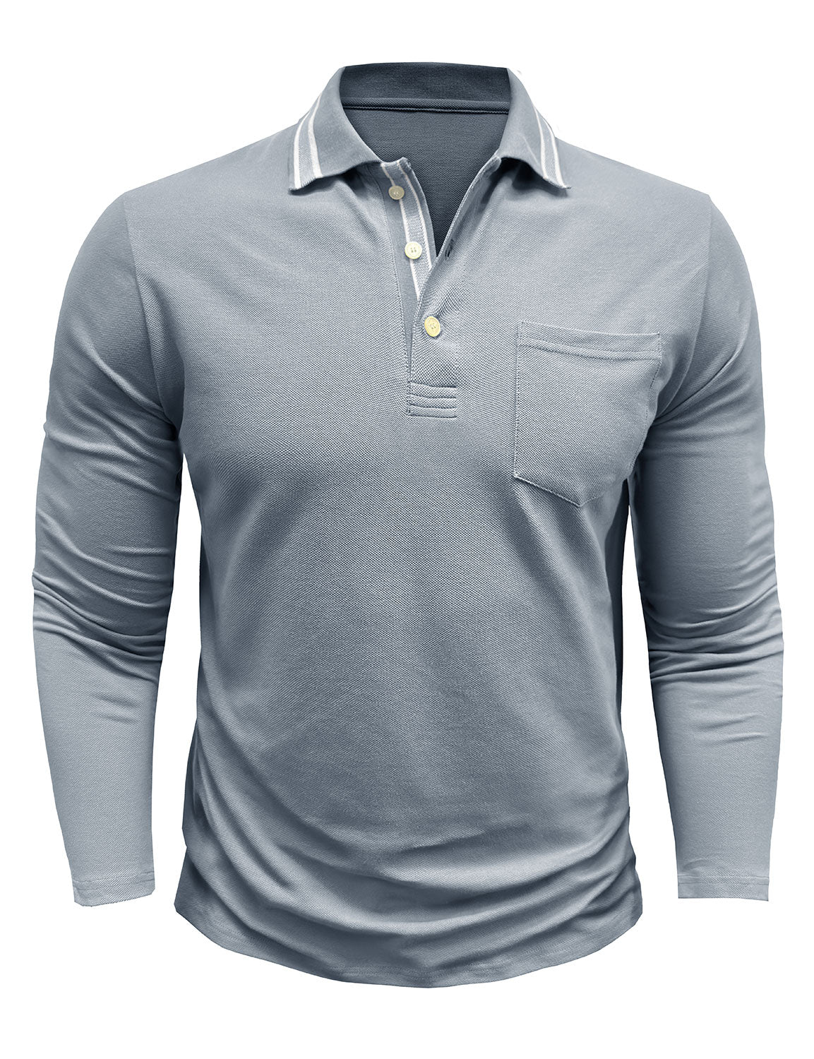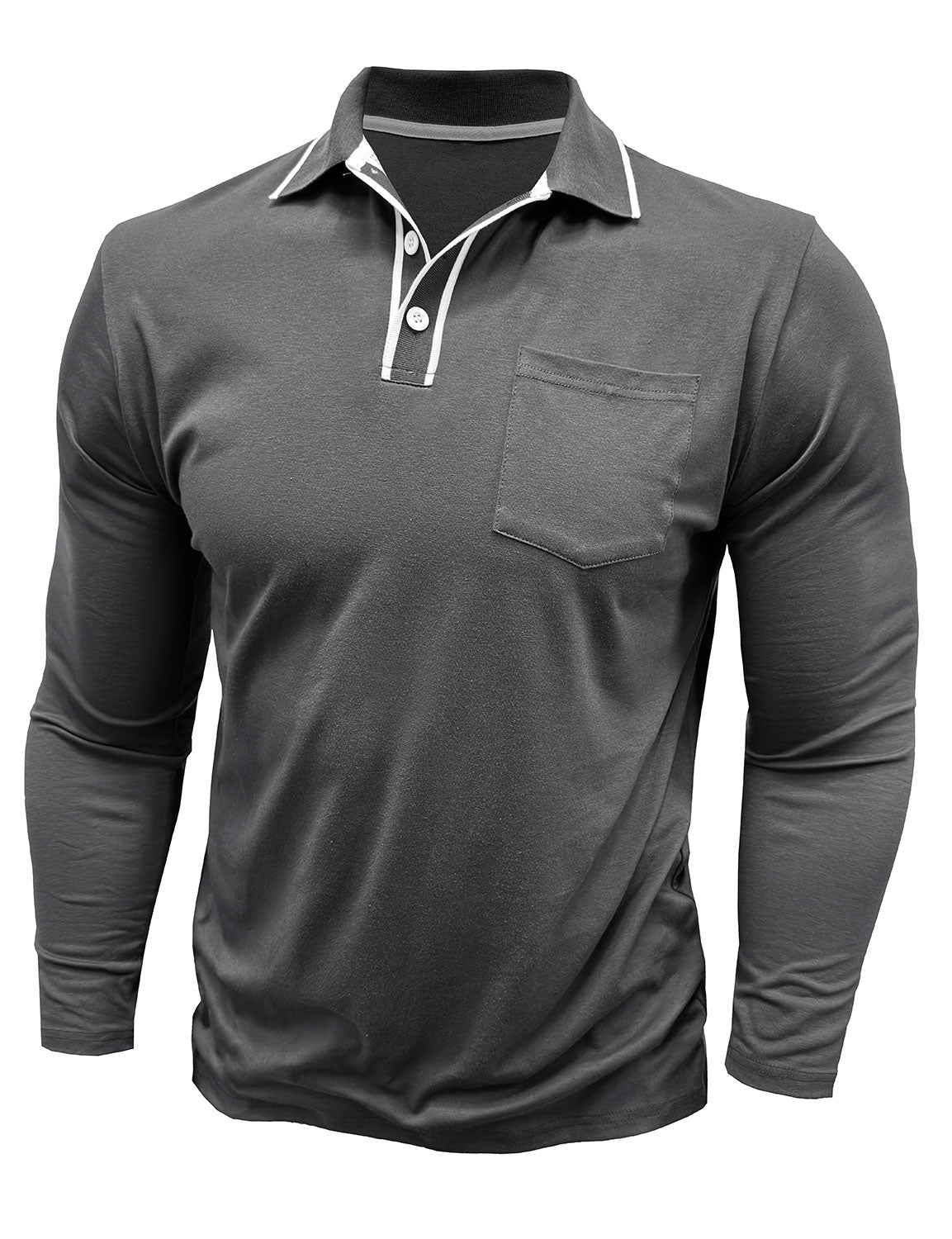 Men's Solid Color Pocket Polo Long Sleeve Shirt
