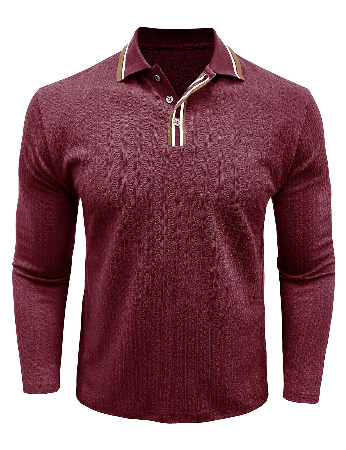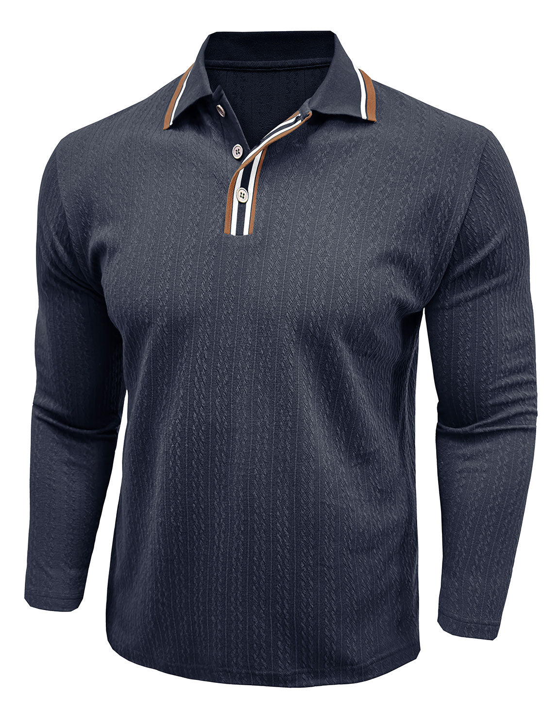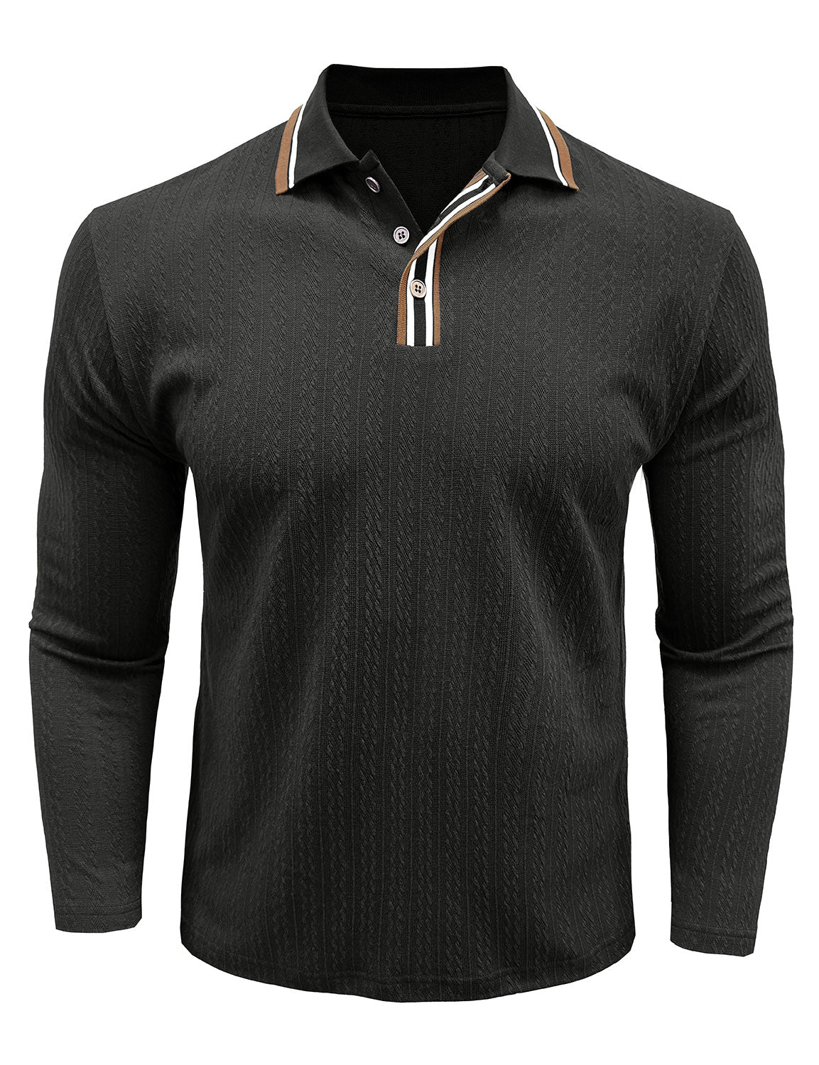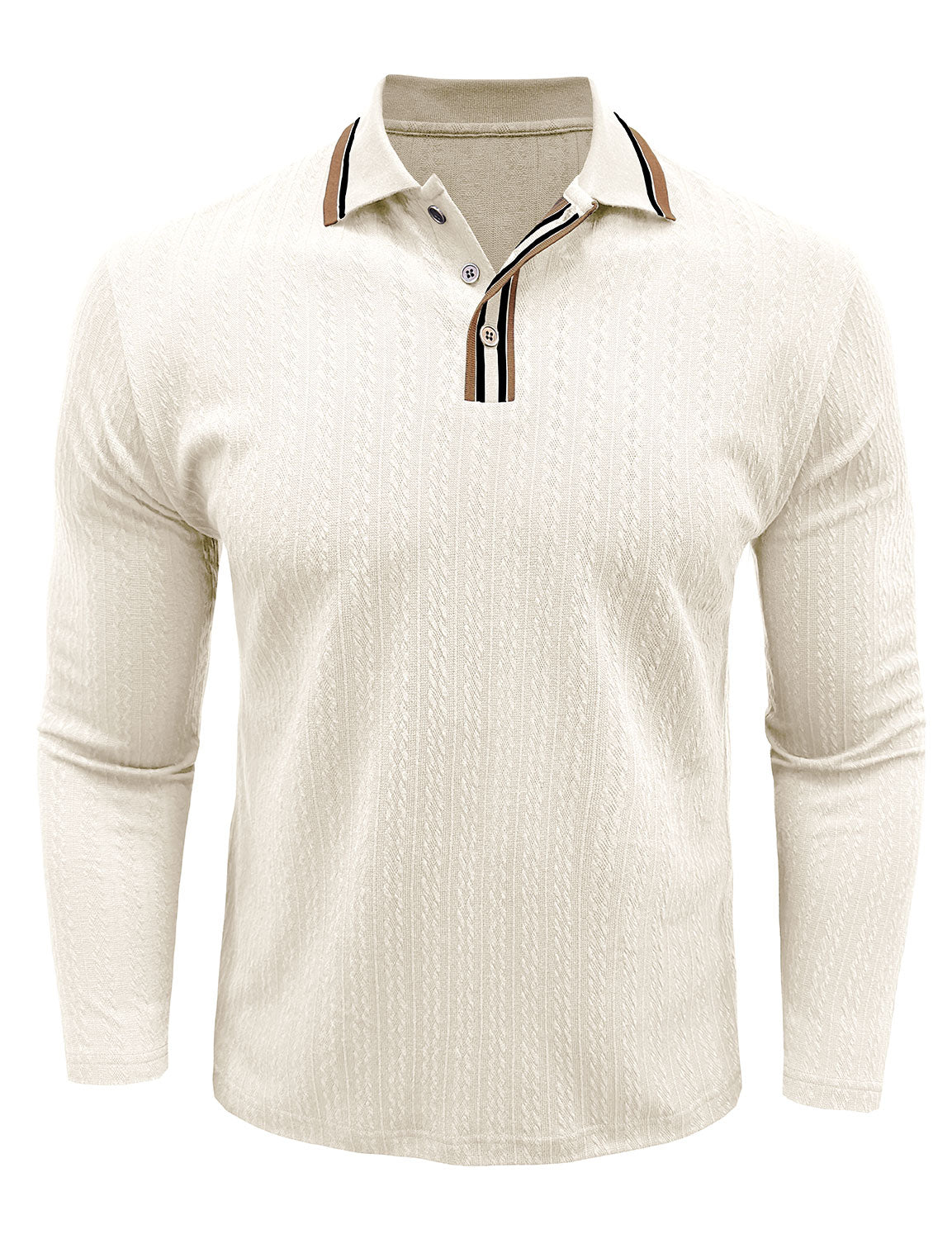 Men's Jacquard Casual Polo Long Sleeve Shirt