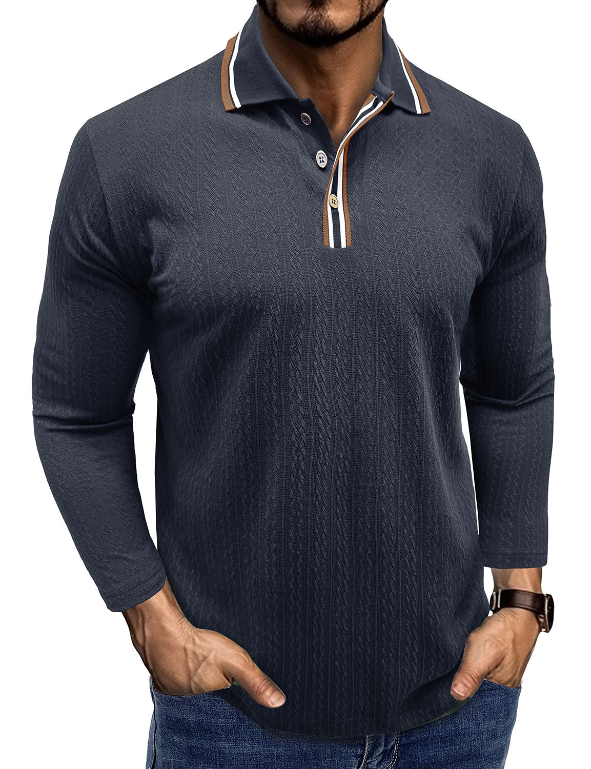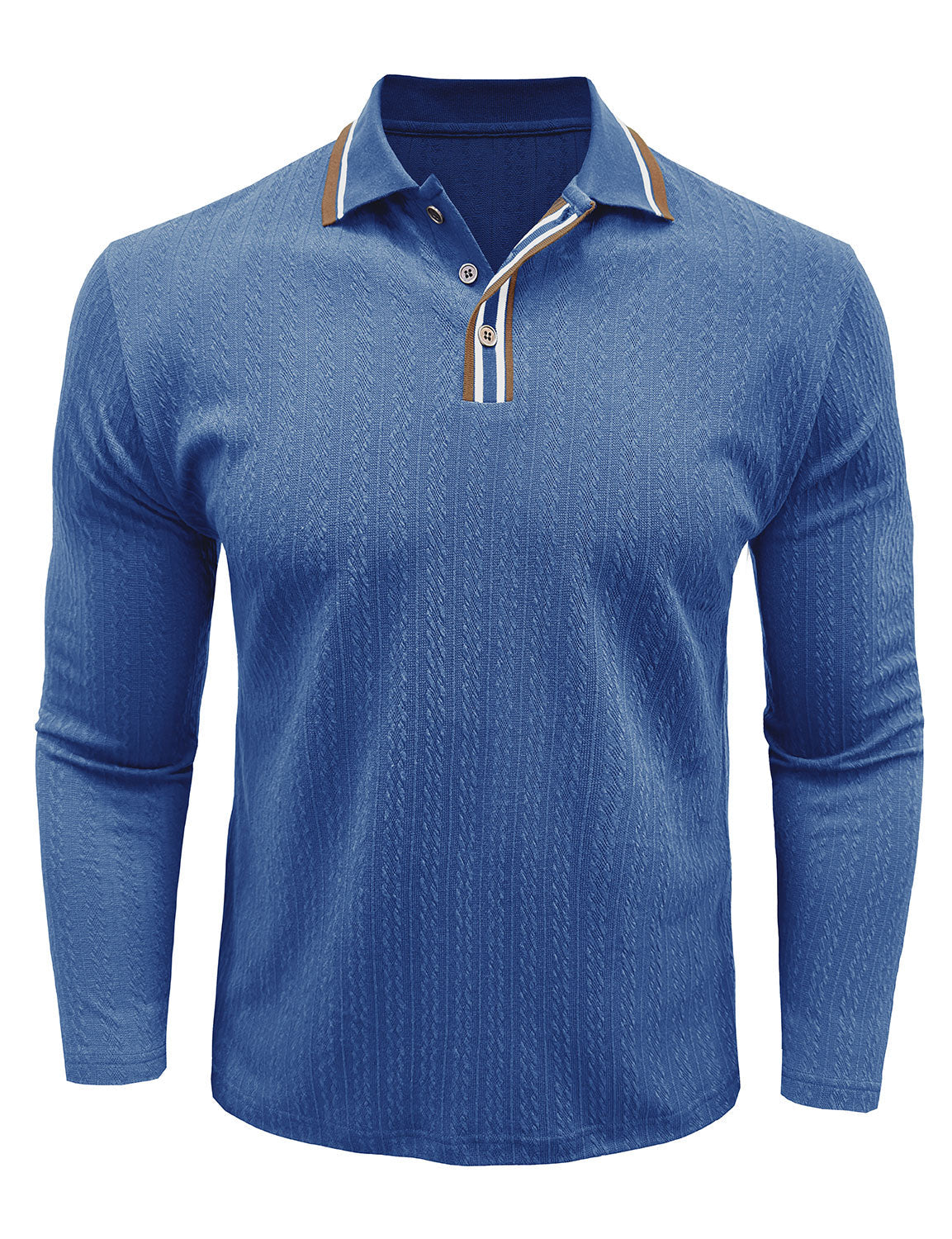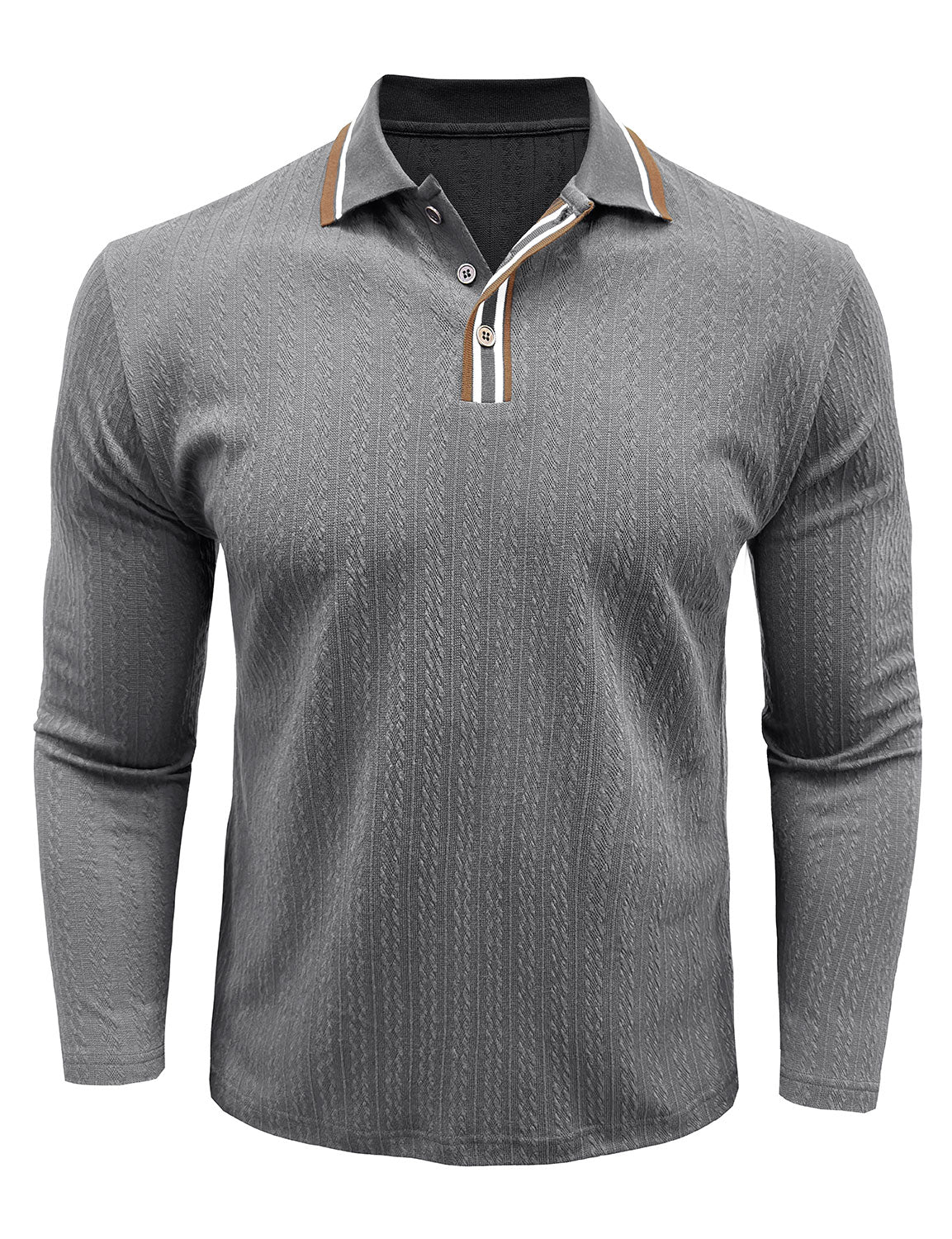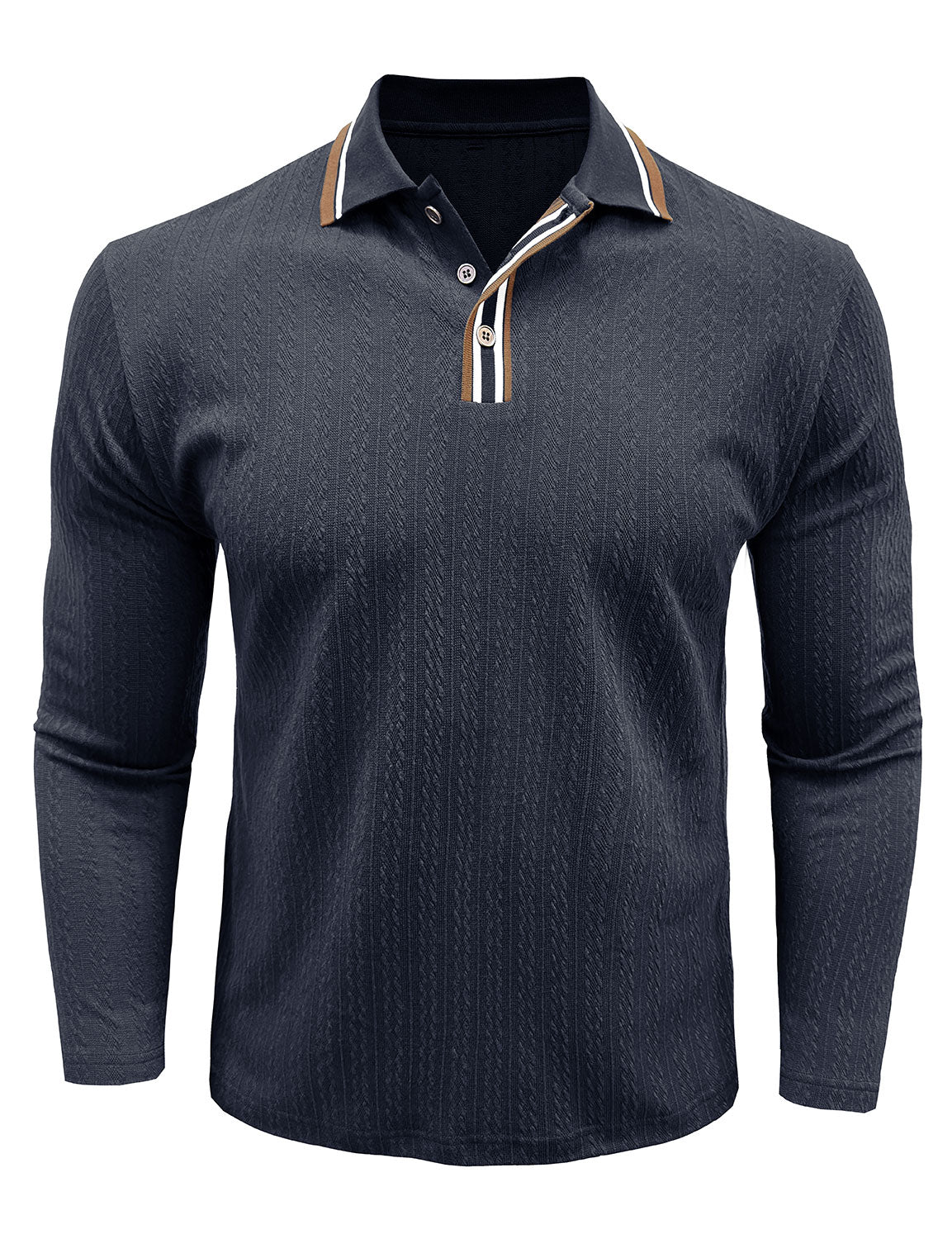 Men's Jacquard Casual Polo Long Sleeve Shirt