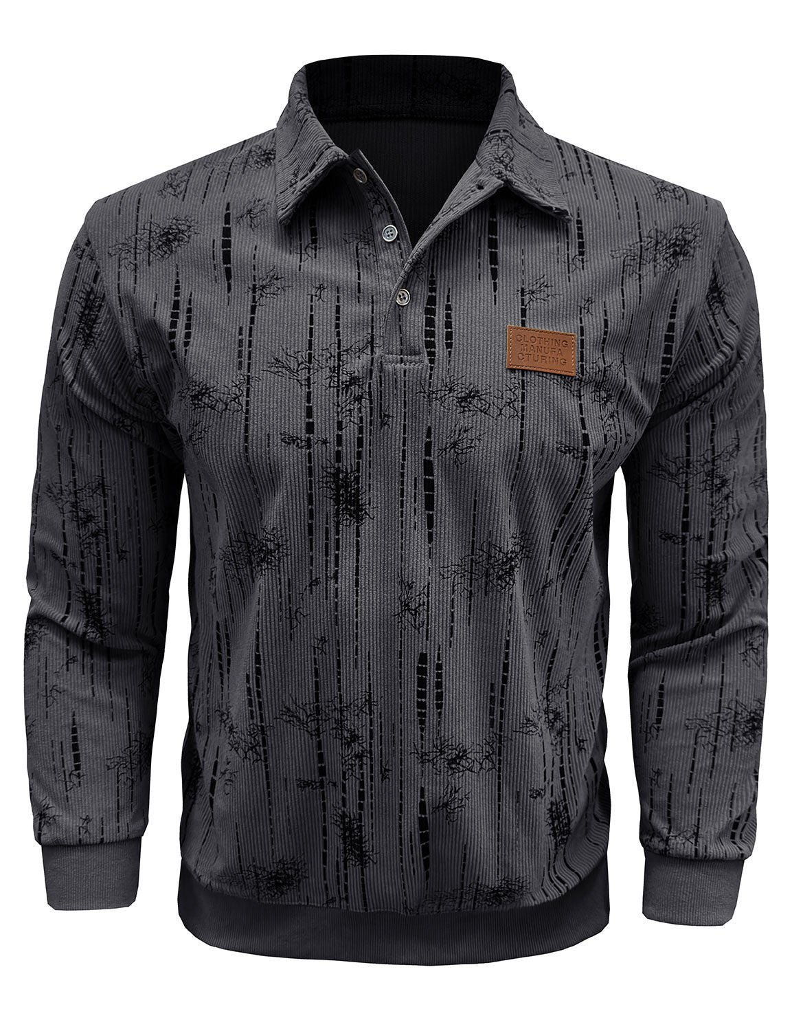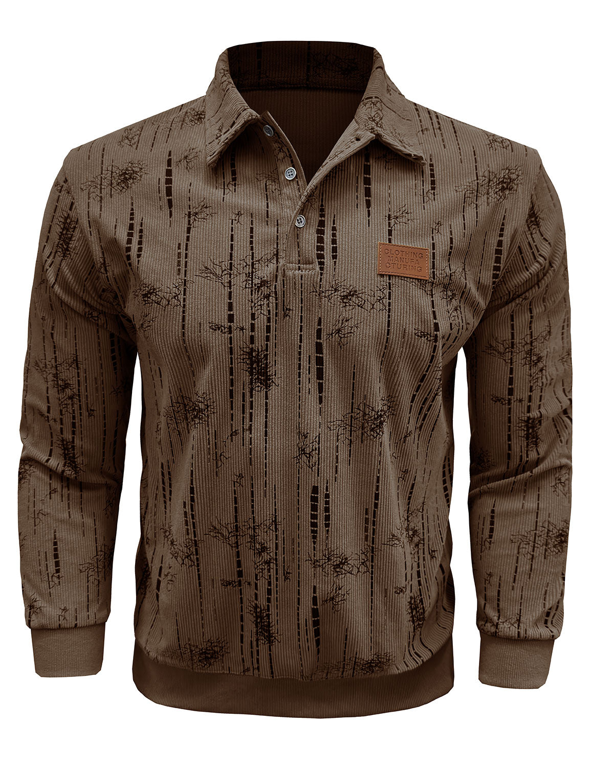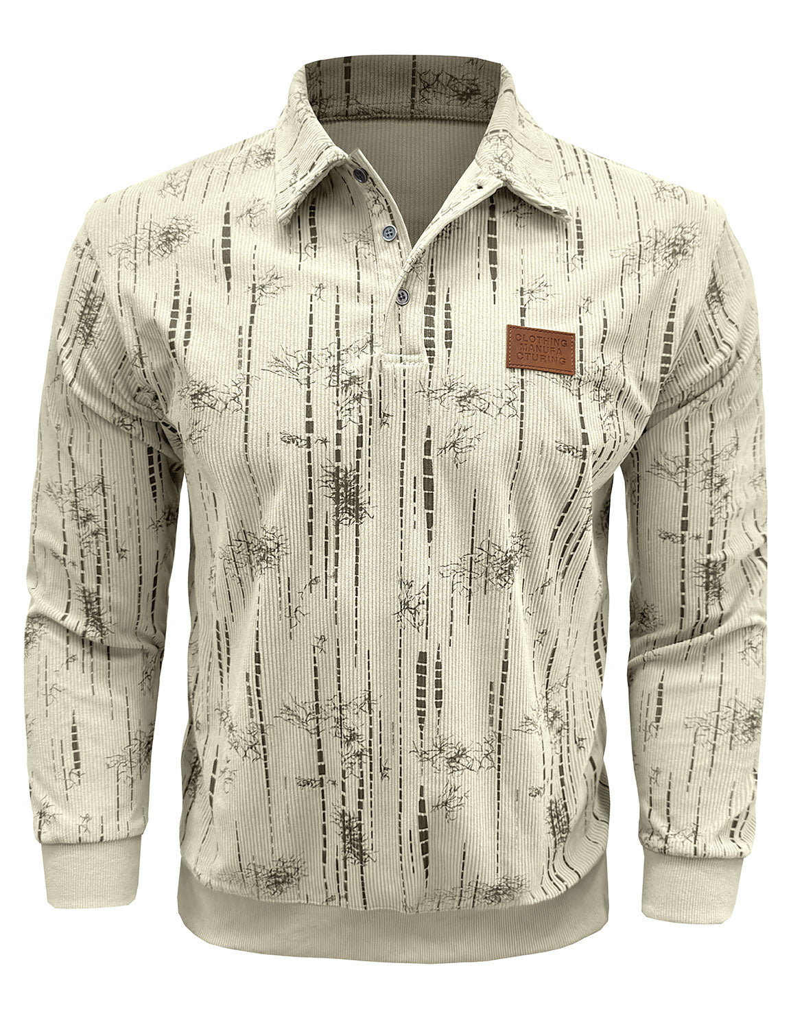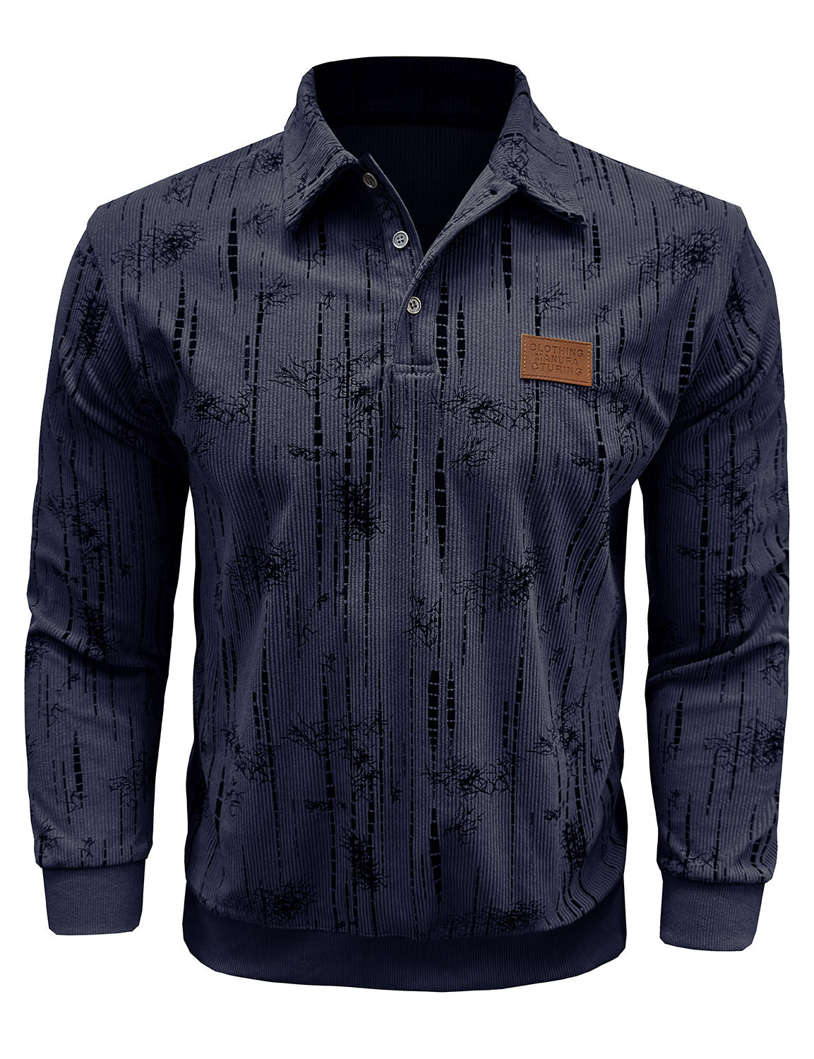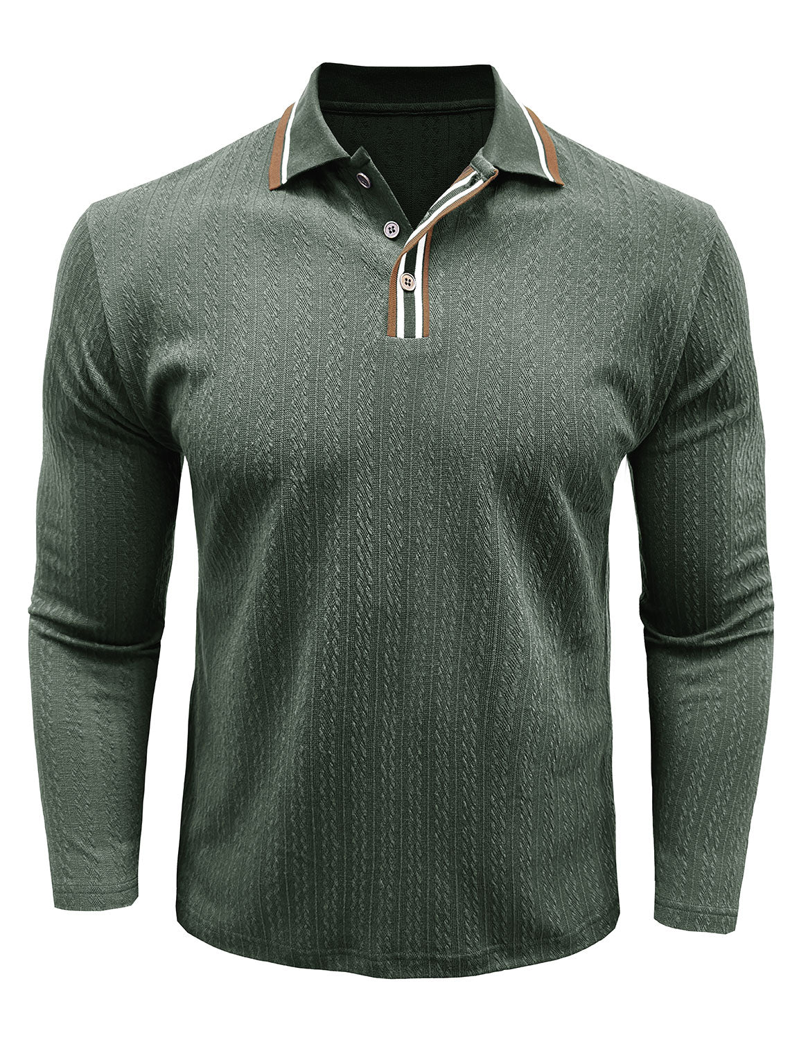 Men's Jacquard Casual Polo Long Sleeve Shirt