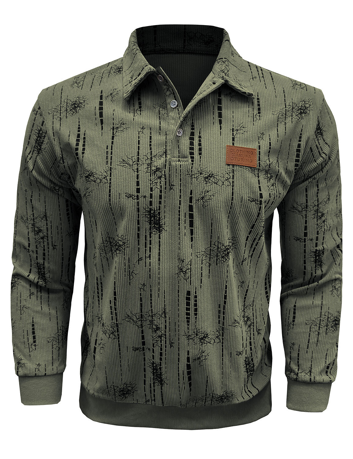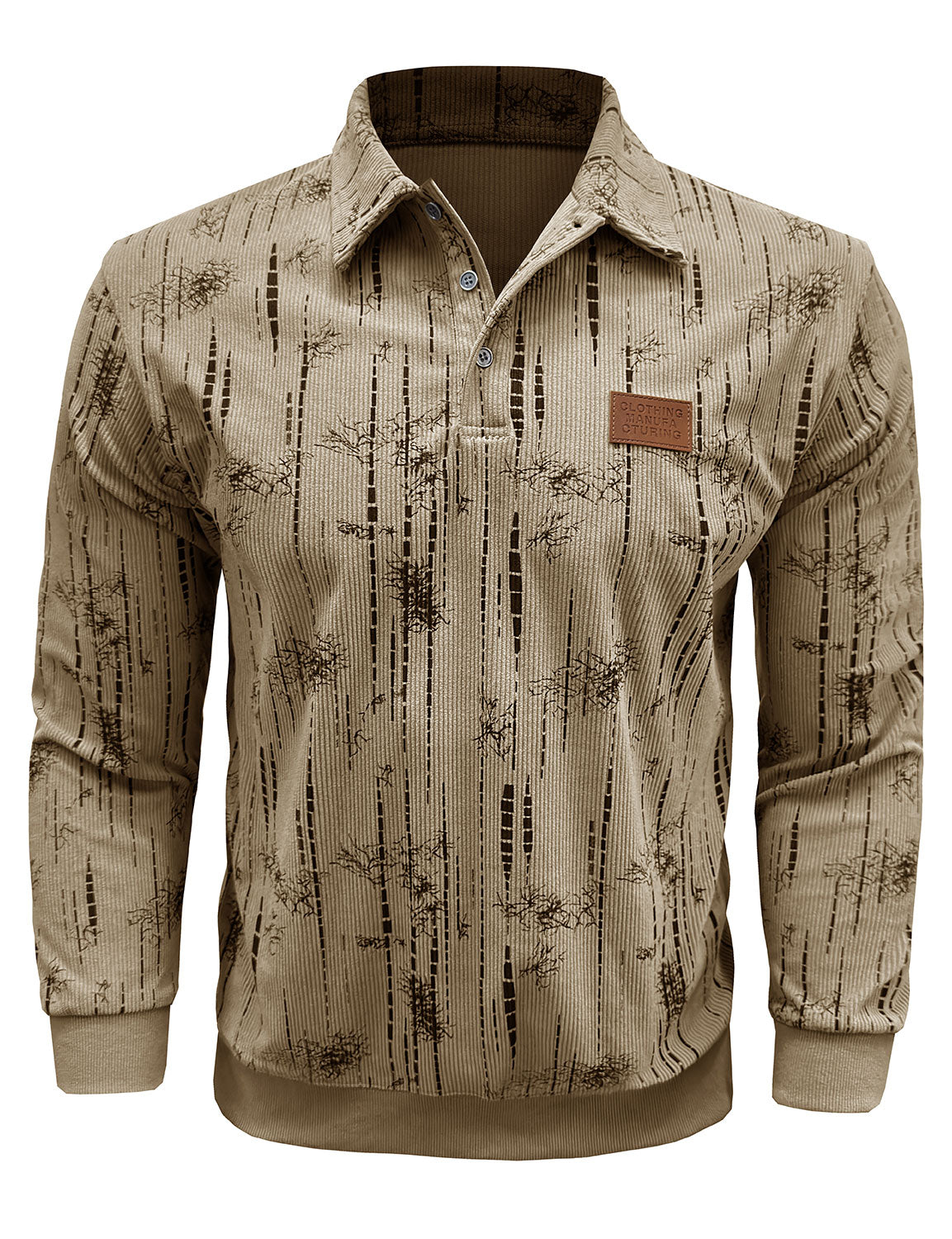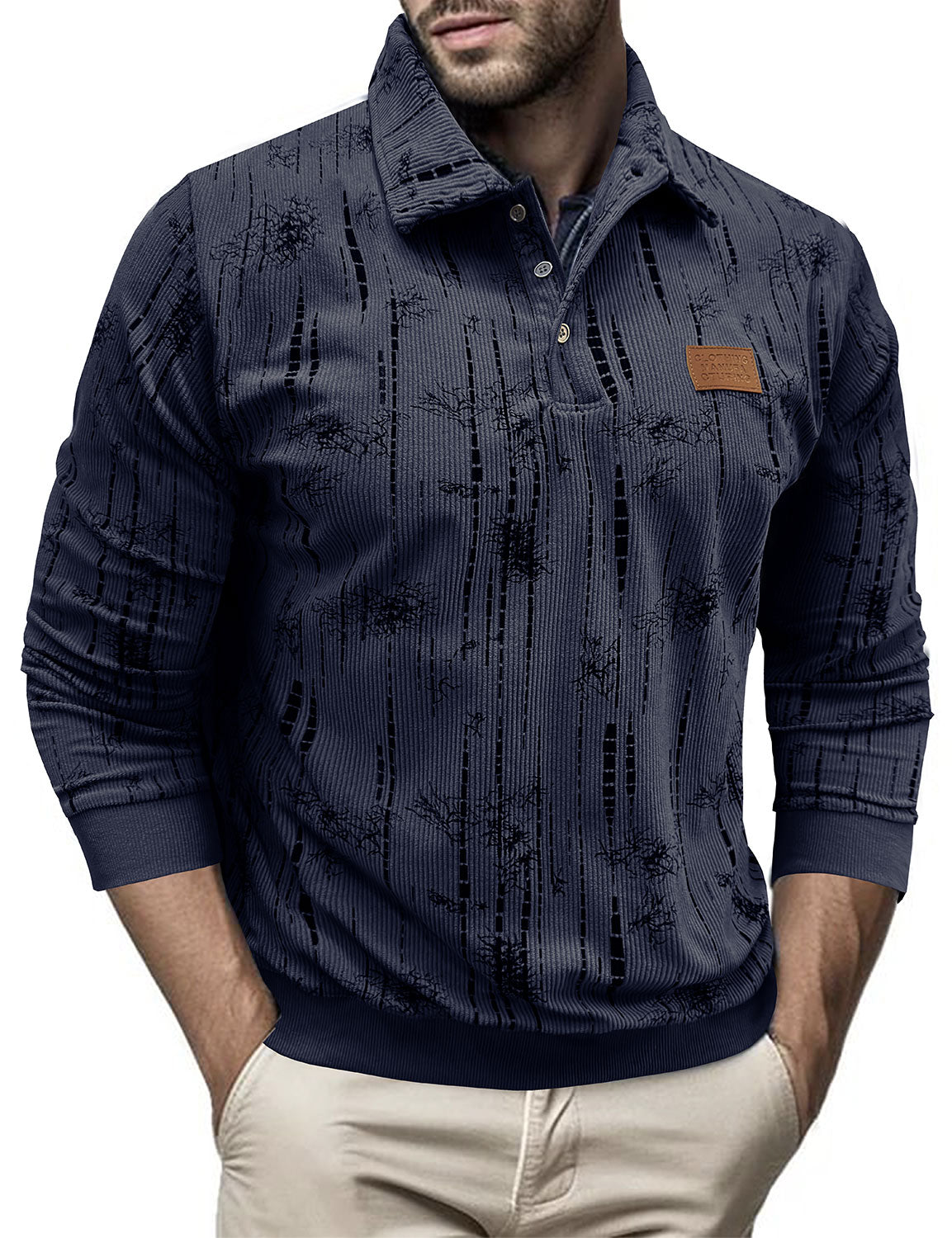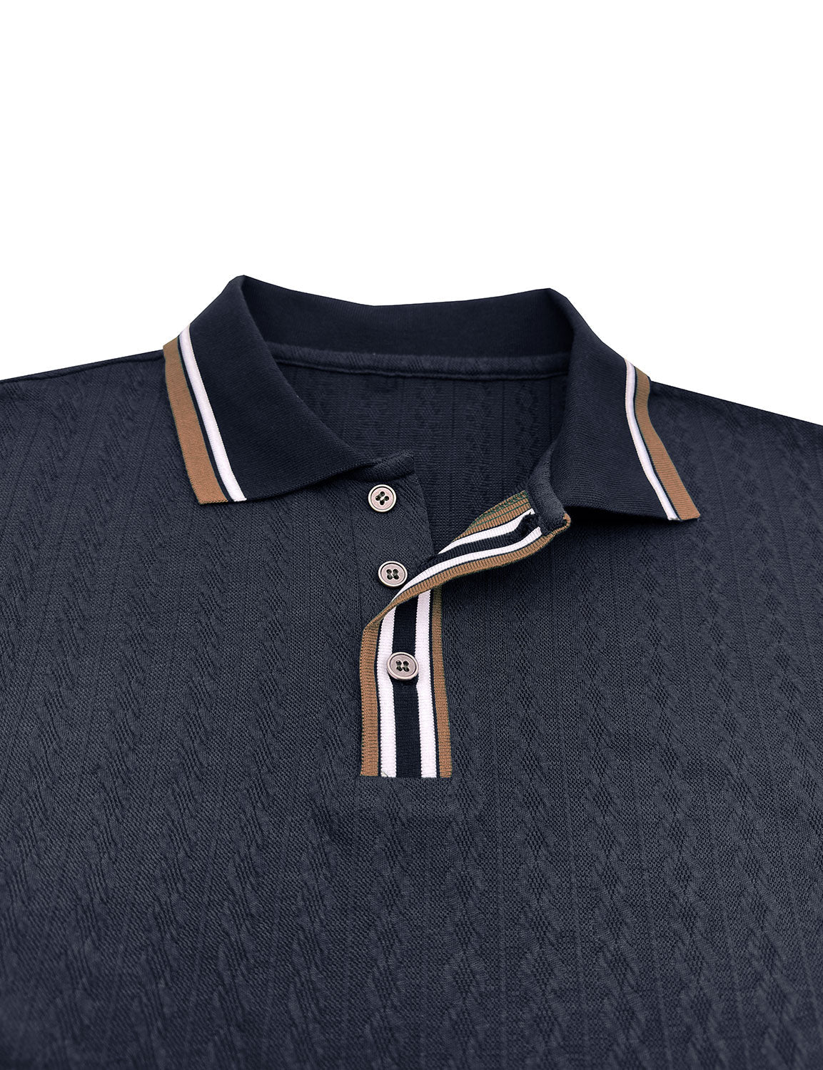 Men's Jacquard Casual Polo Long Sleeve Shirt