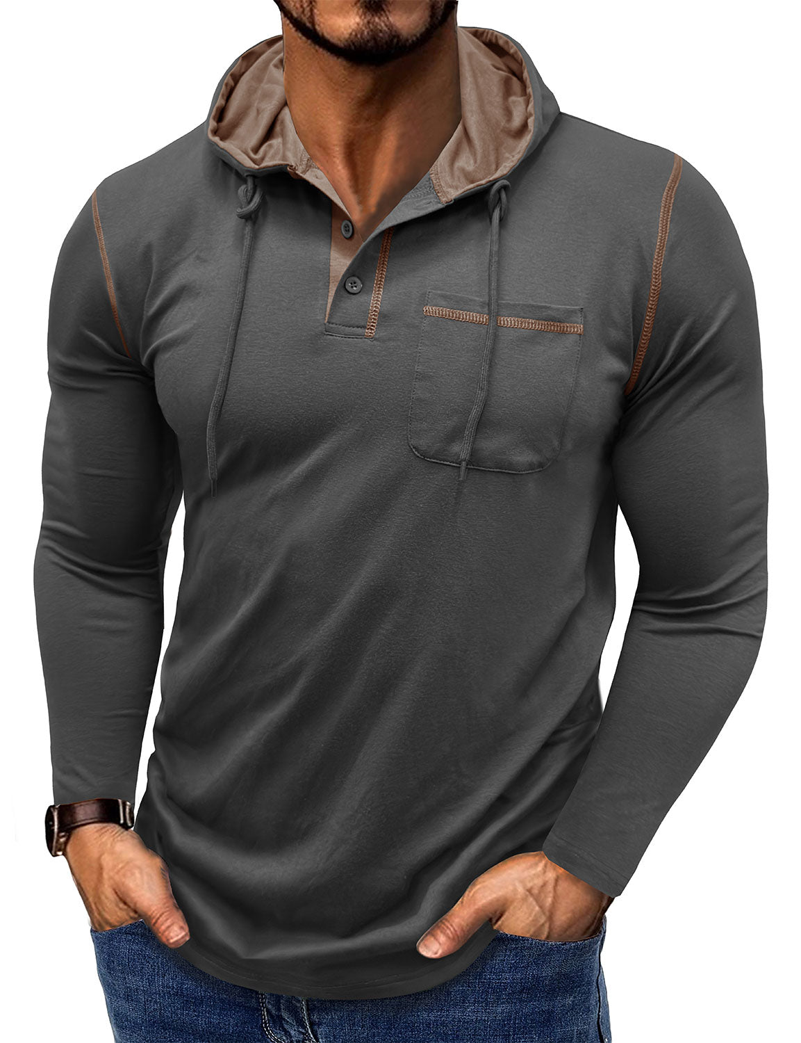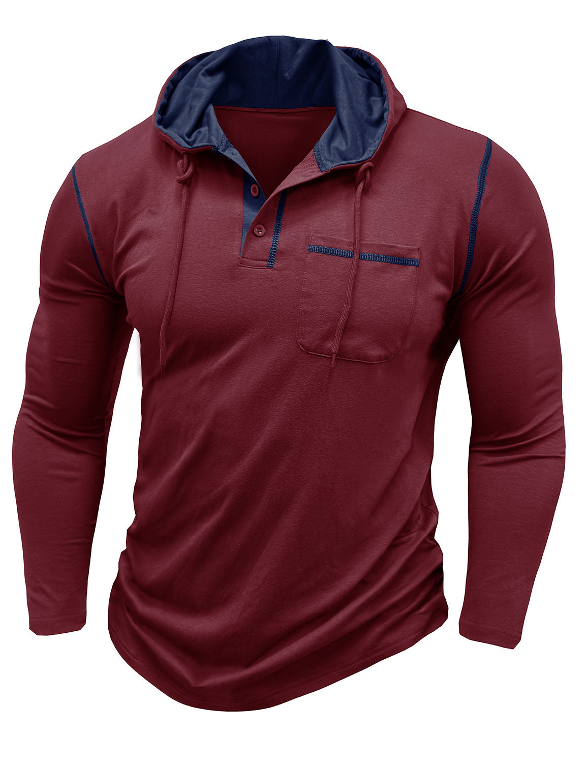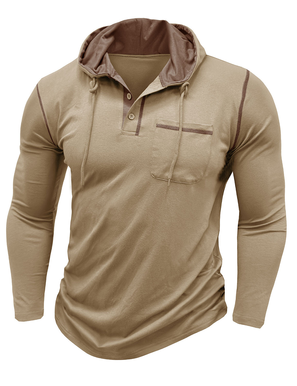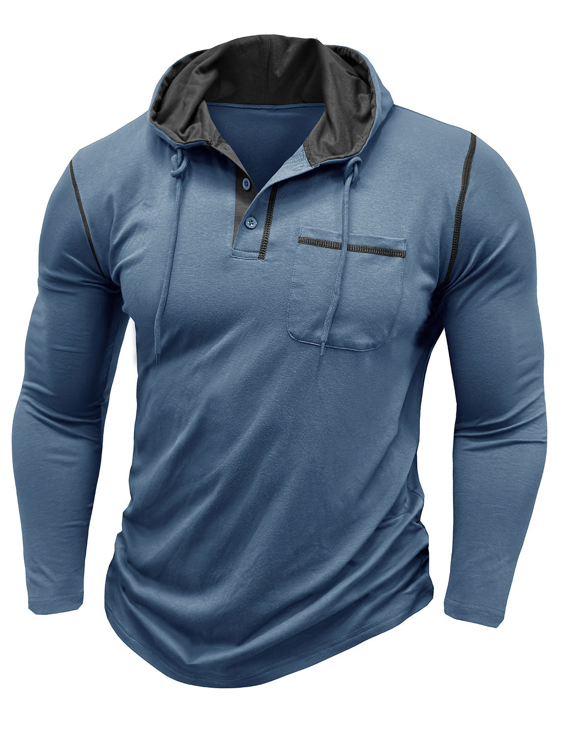 Men's Casual Solid Color Hooded Henley Long Sleeve Shirt