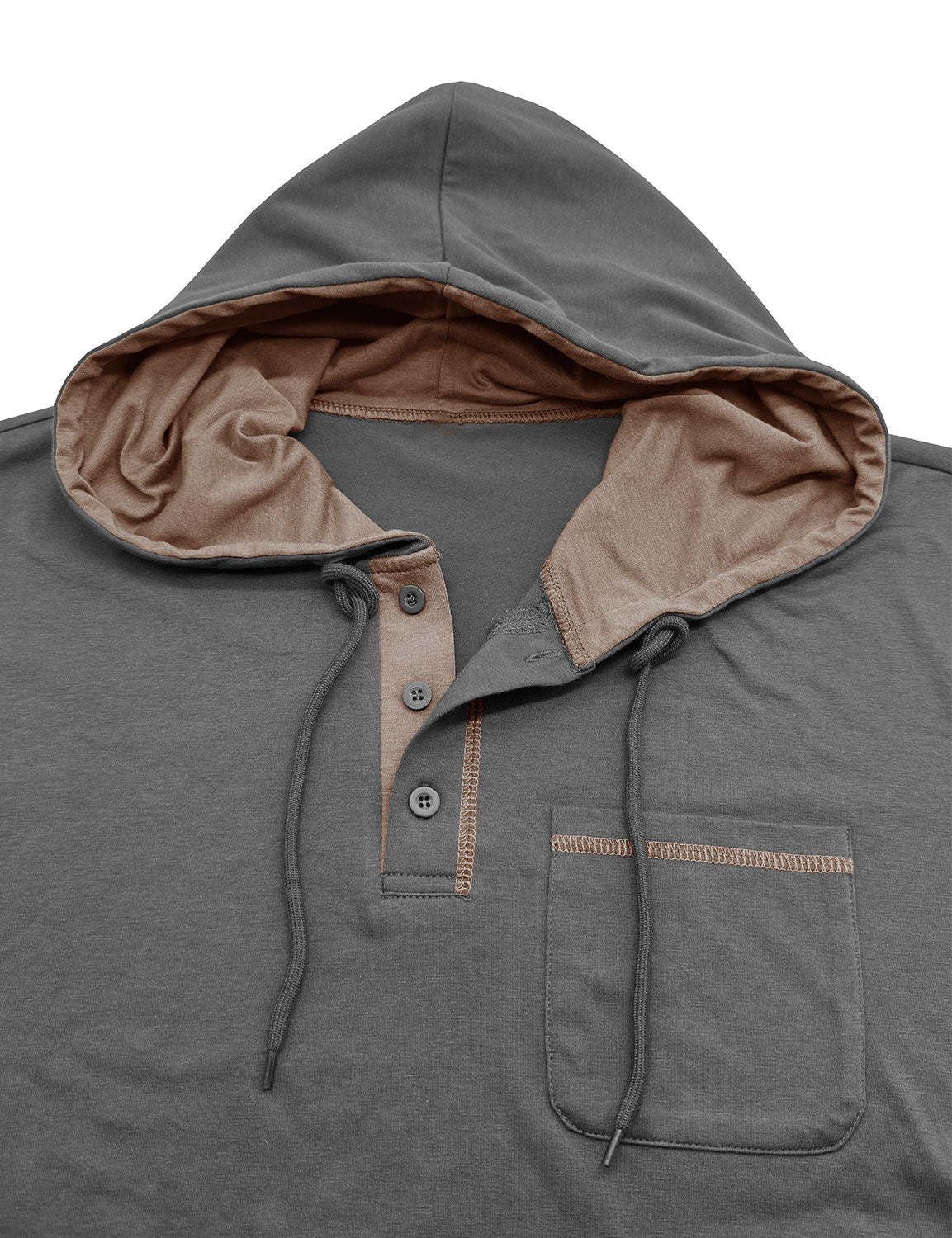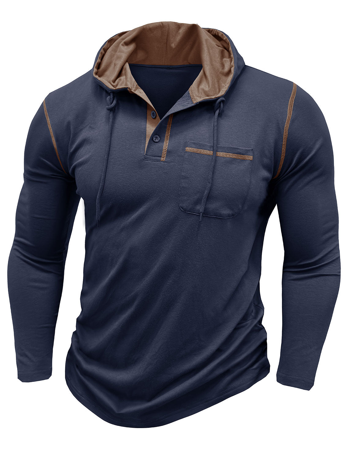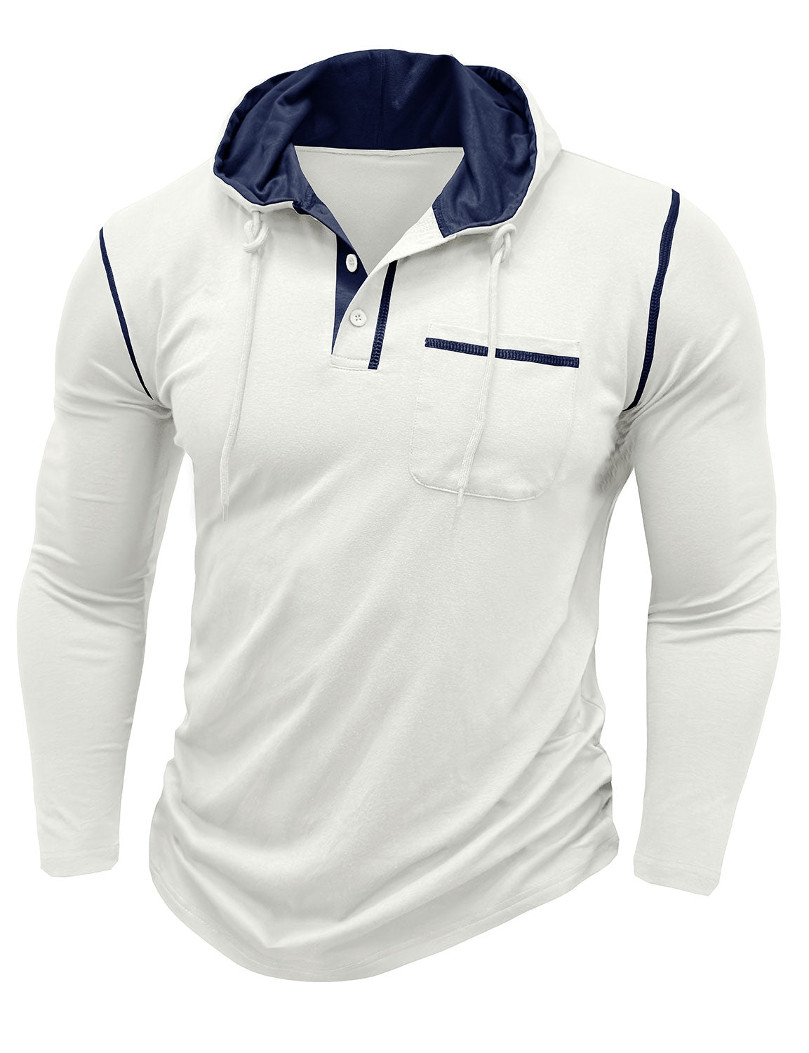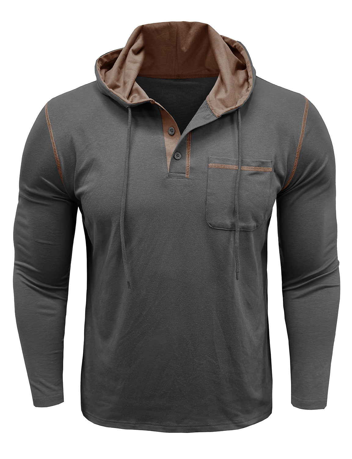Men's Casual Solid Color Hooded Henley Long Sleeve Shirt