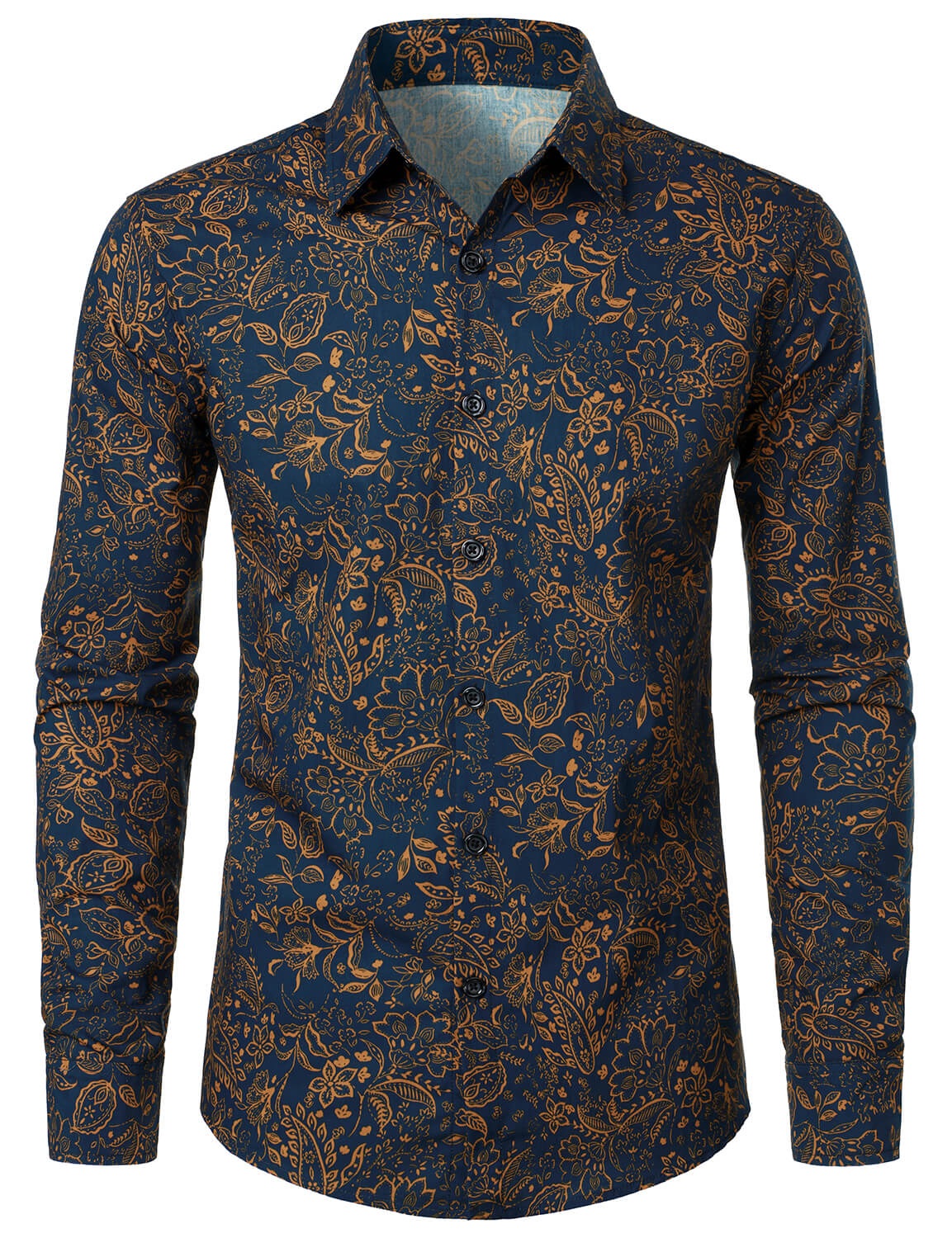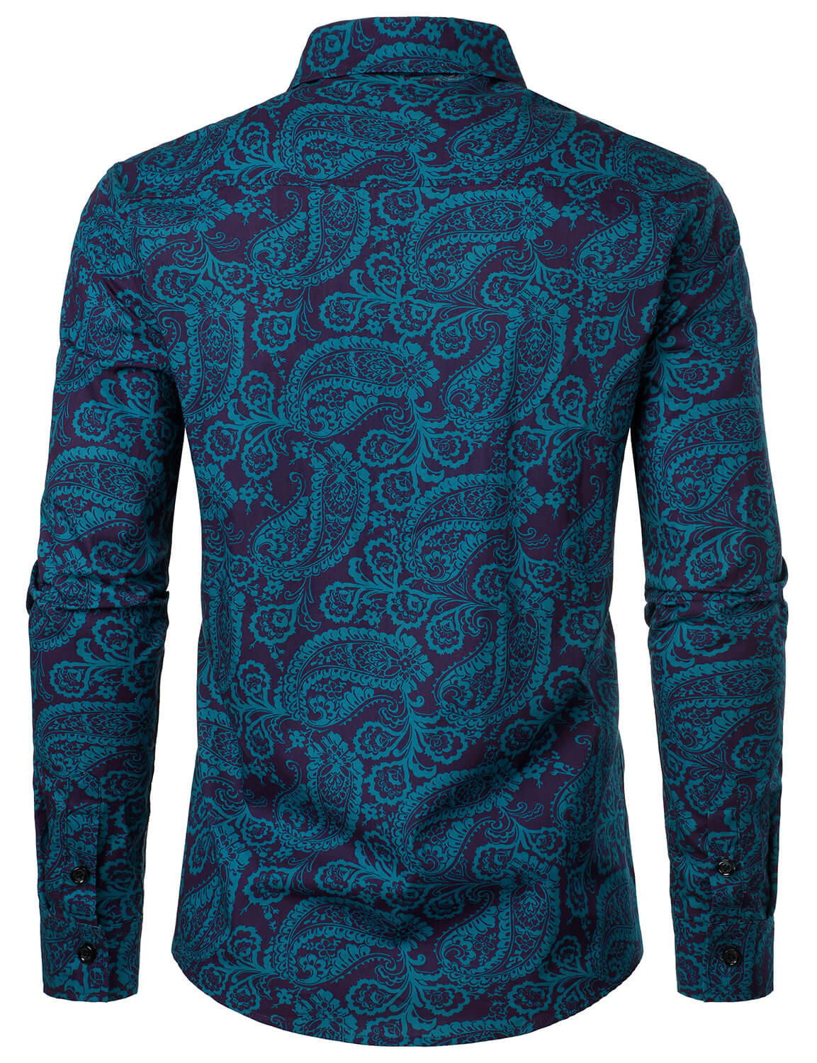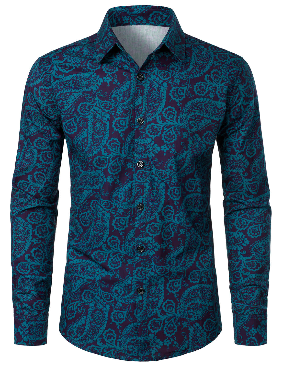 Men's Paisley Print Cotton Casual Button Up Long Sleeve Shirt