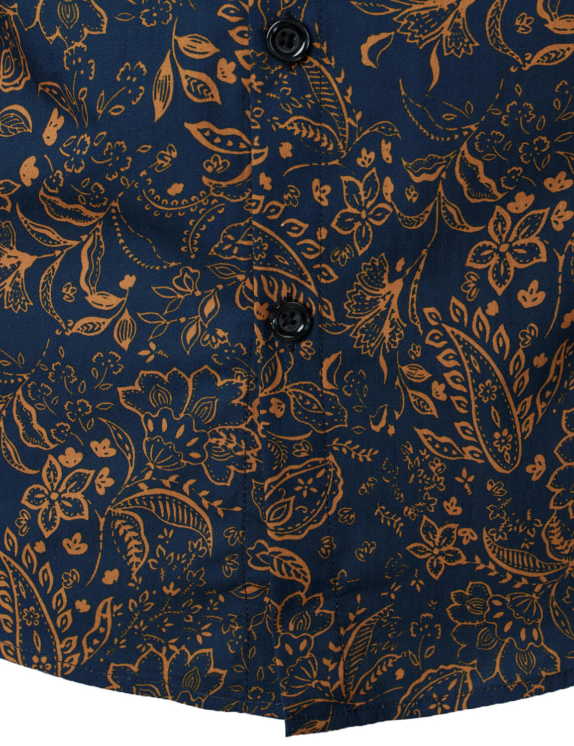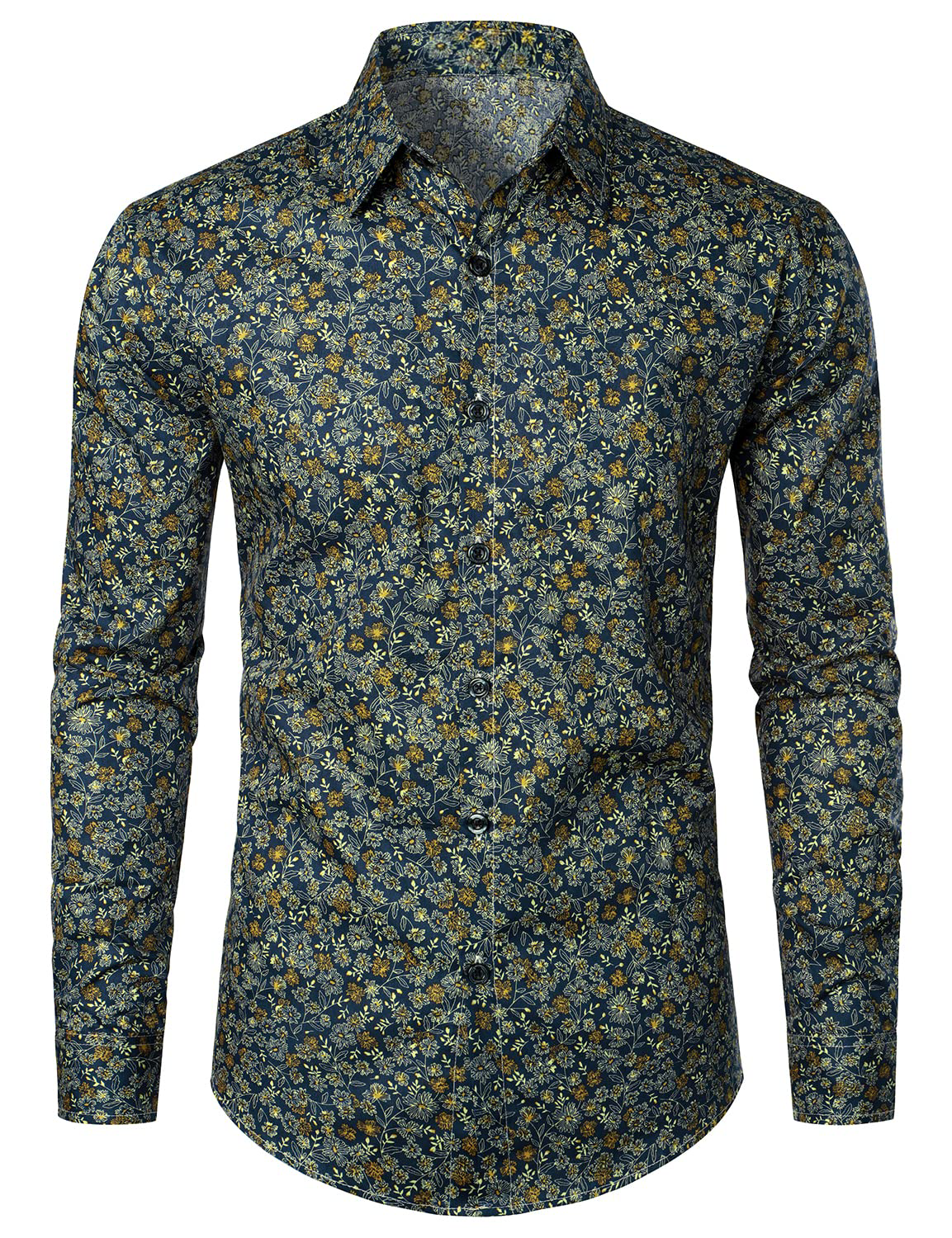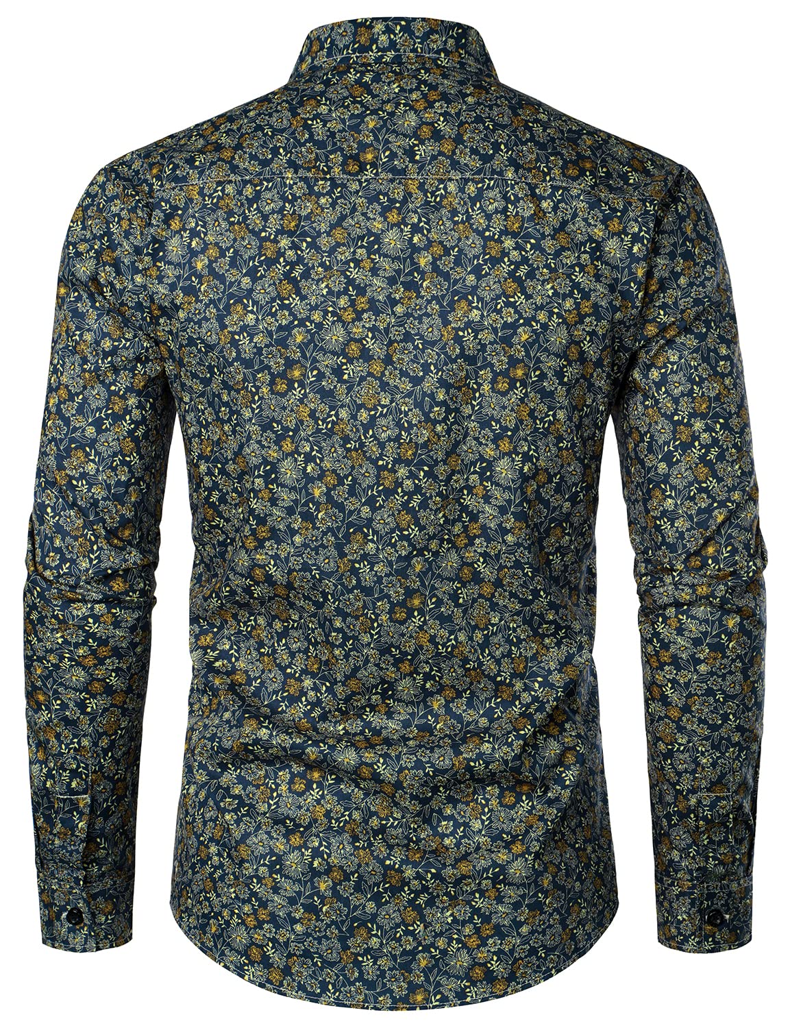 Men's Navy Blue Vintage Floral Print Cotton Breathable Flower Button Long Sleeve Dress Shirt