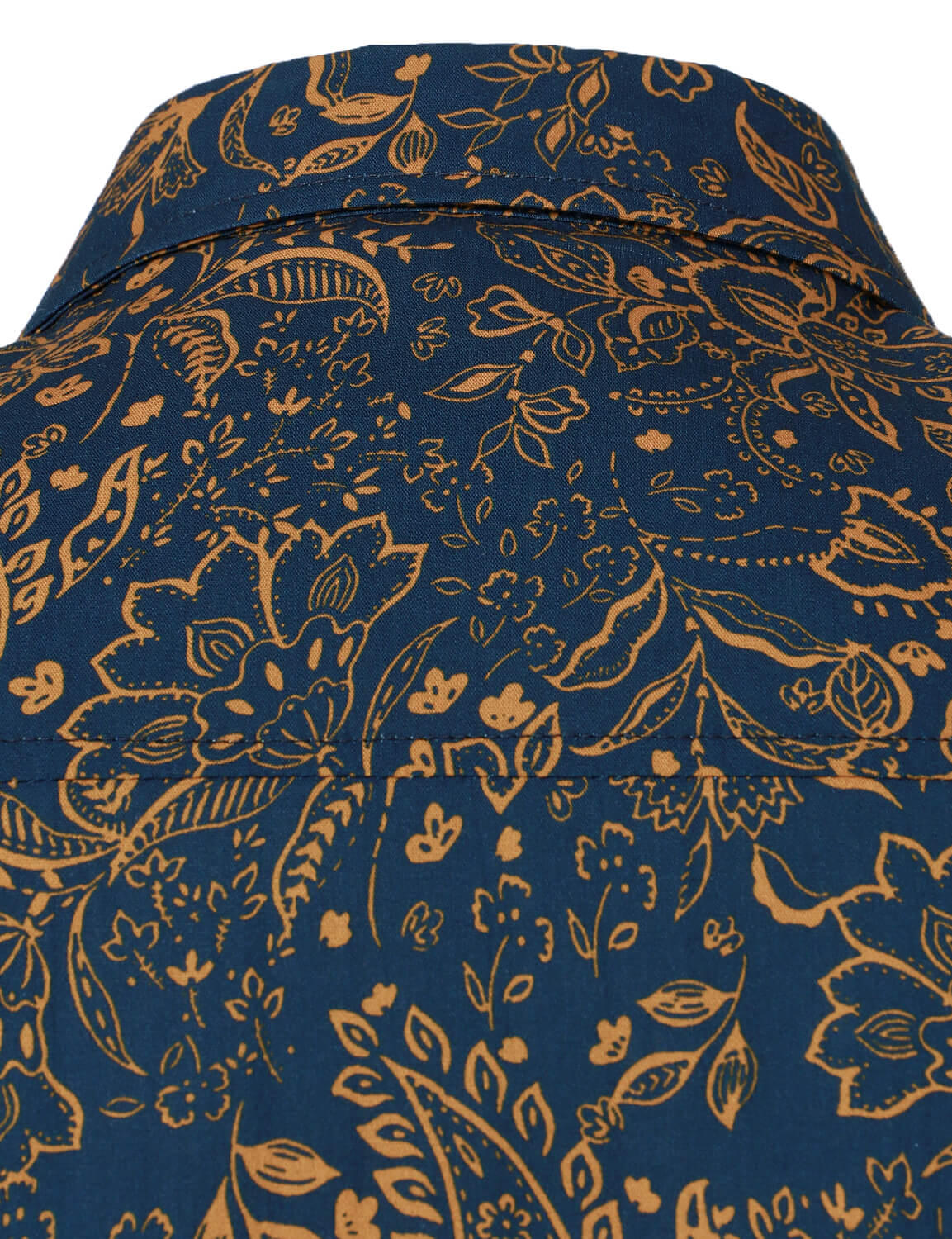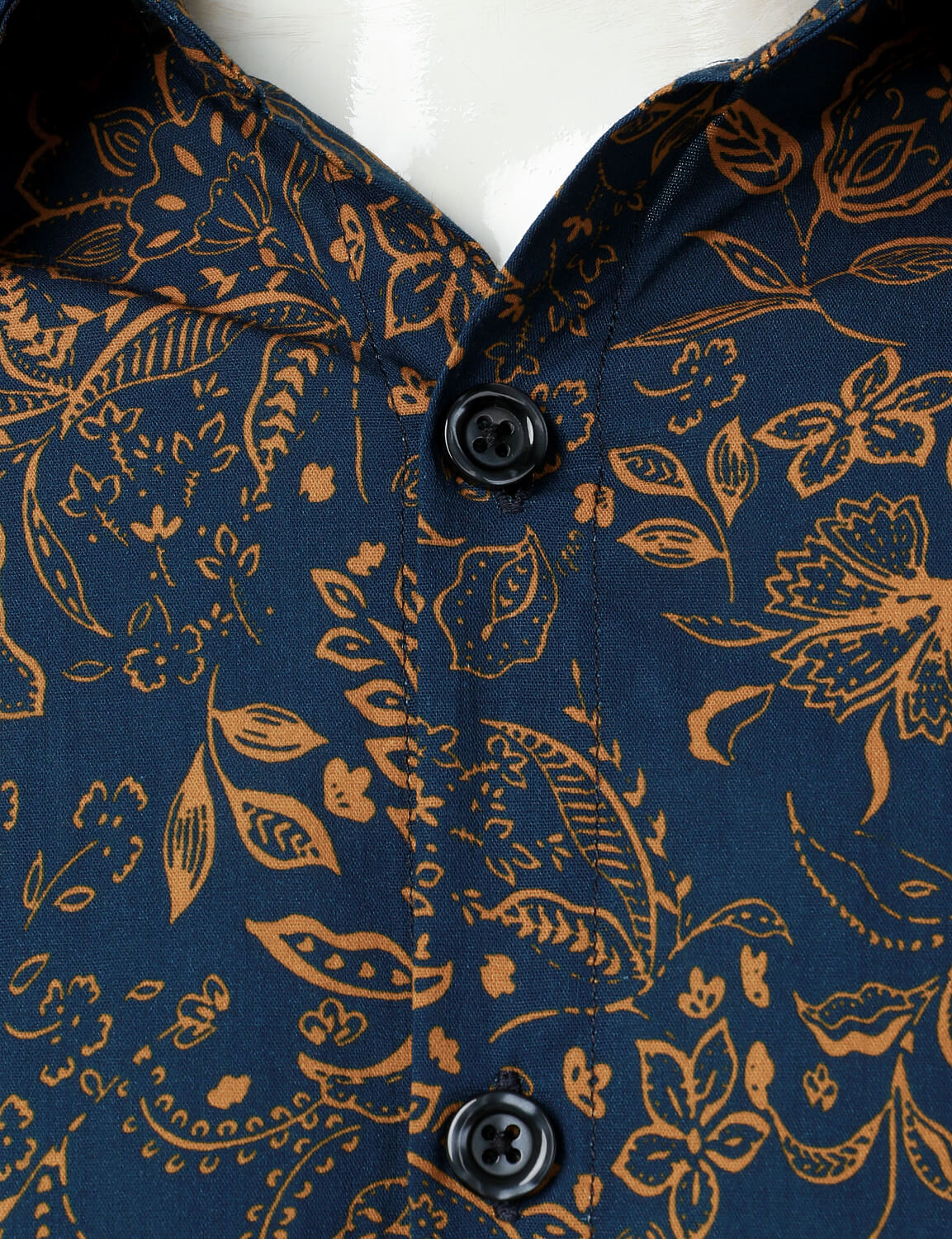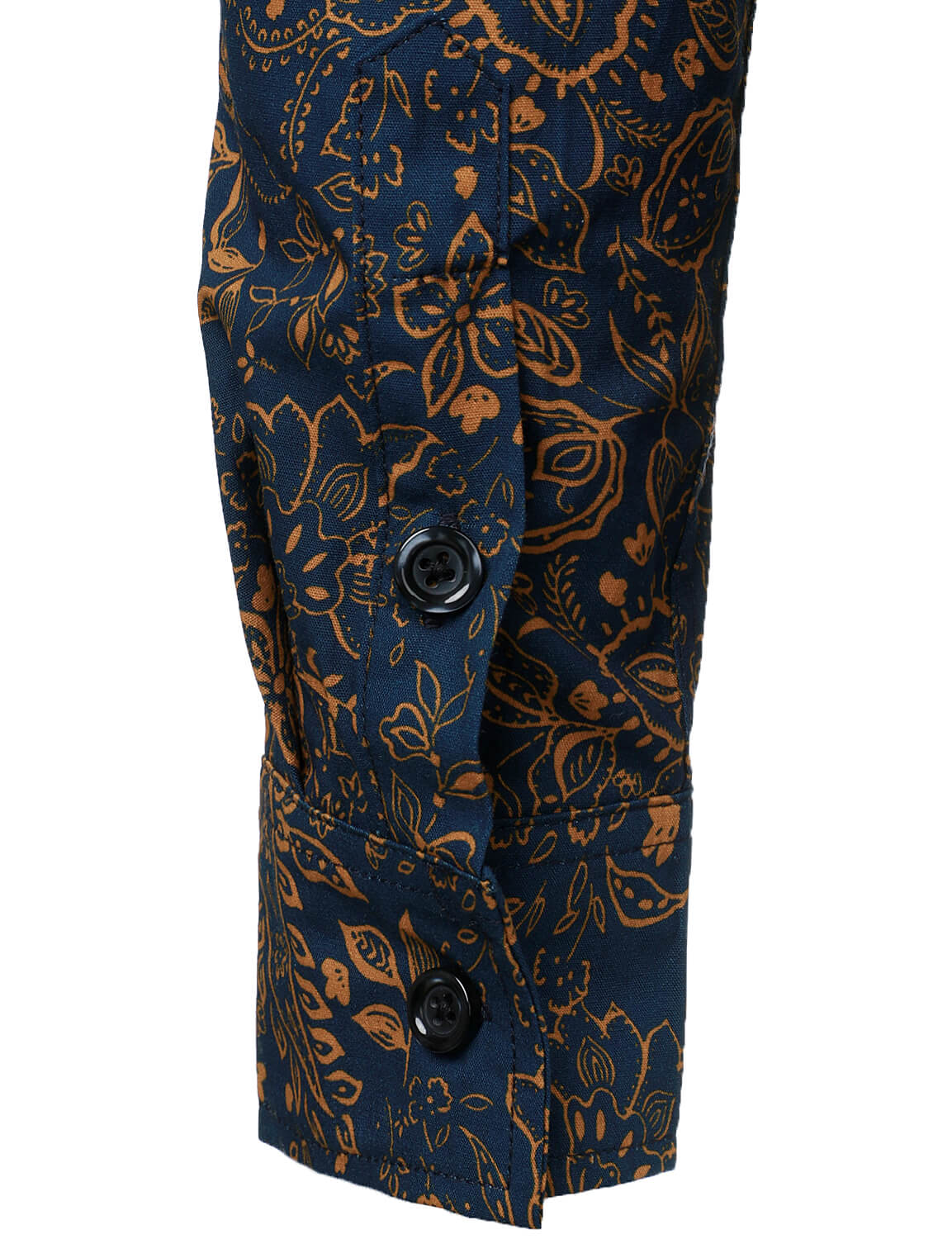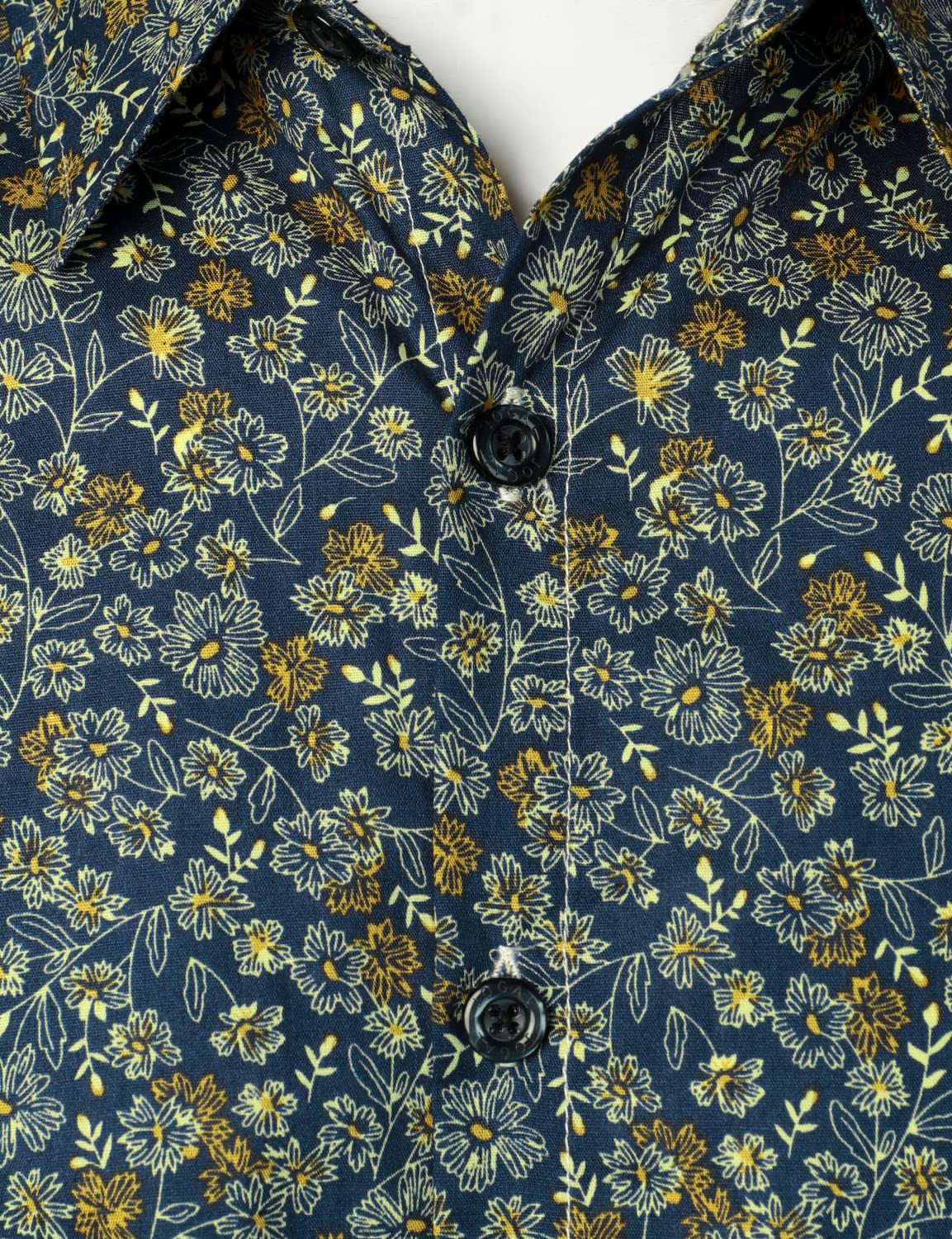 Men's Navy Blue Vintage Floral Print Cotton Breathable Flower Button Long Sleeve Dress Shirt