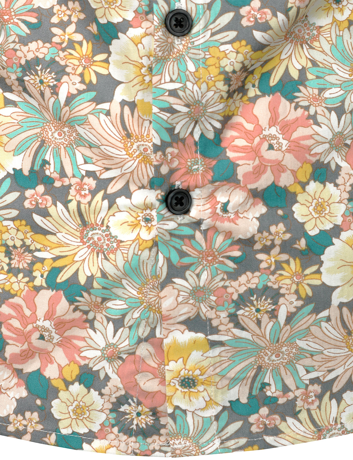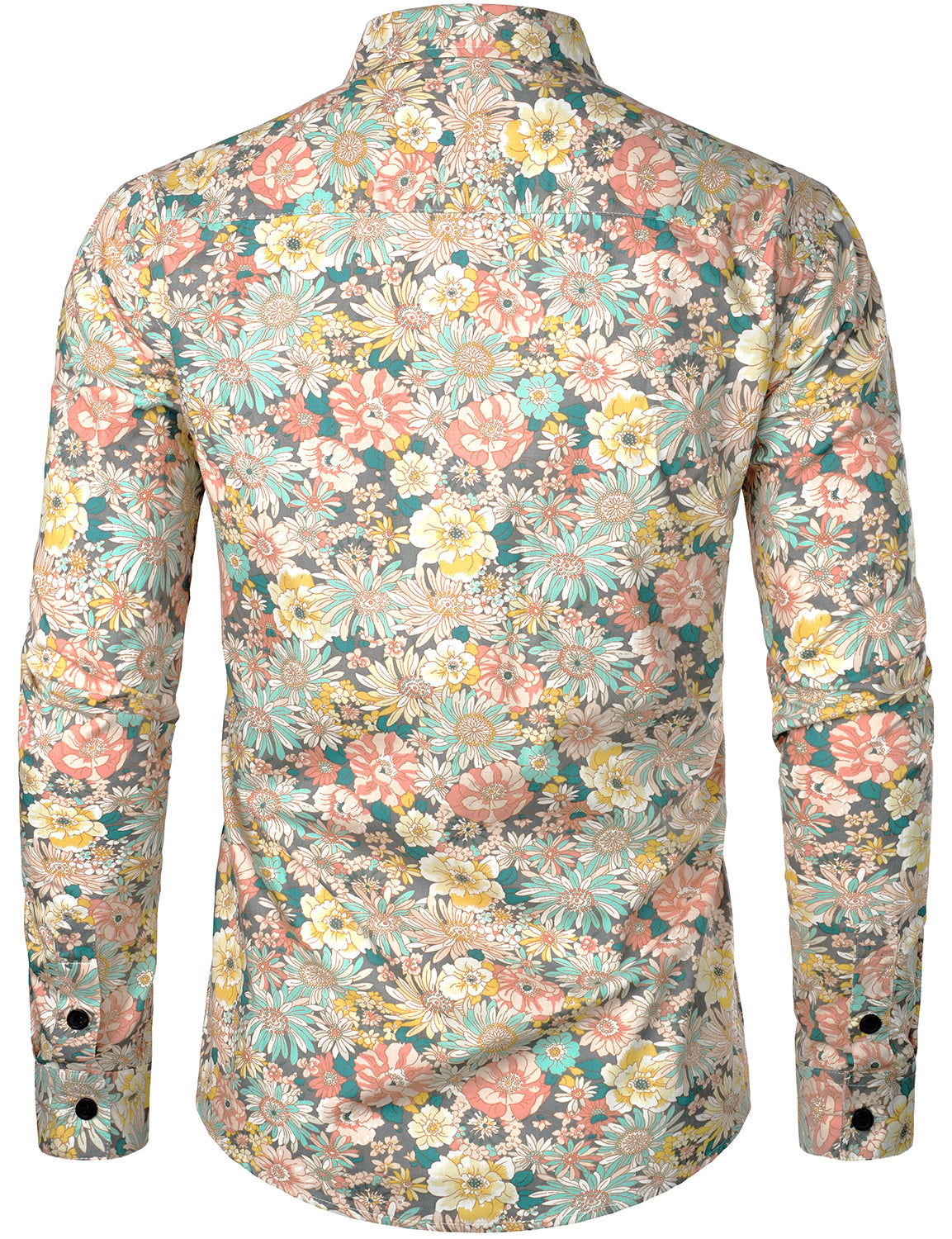 Men's Grey Cotton Floral Print Long Sleeve Shirt