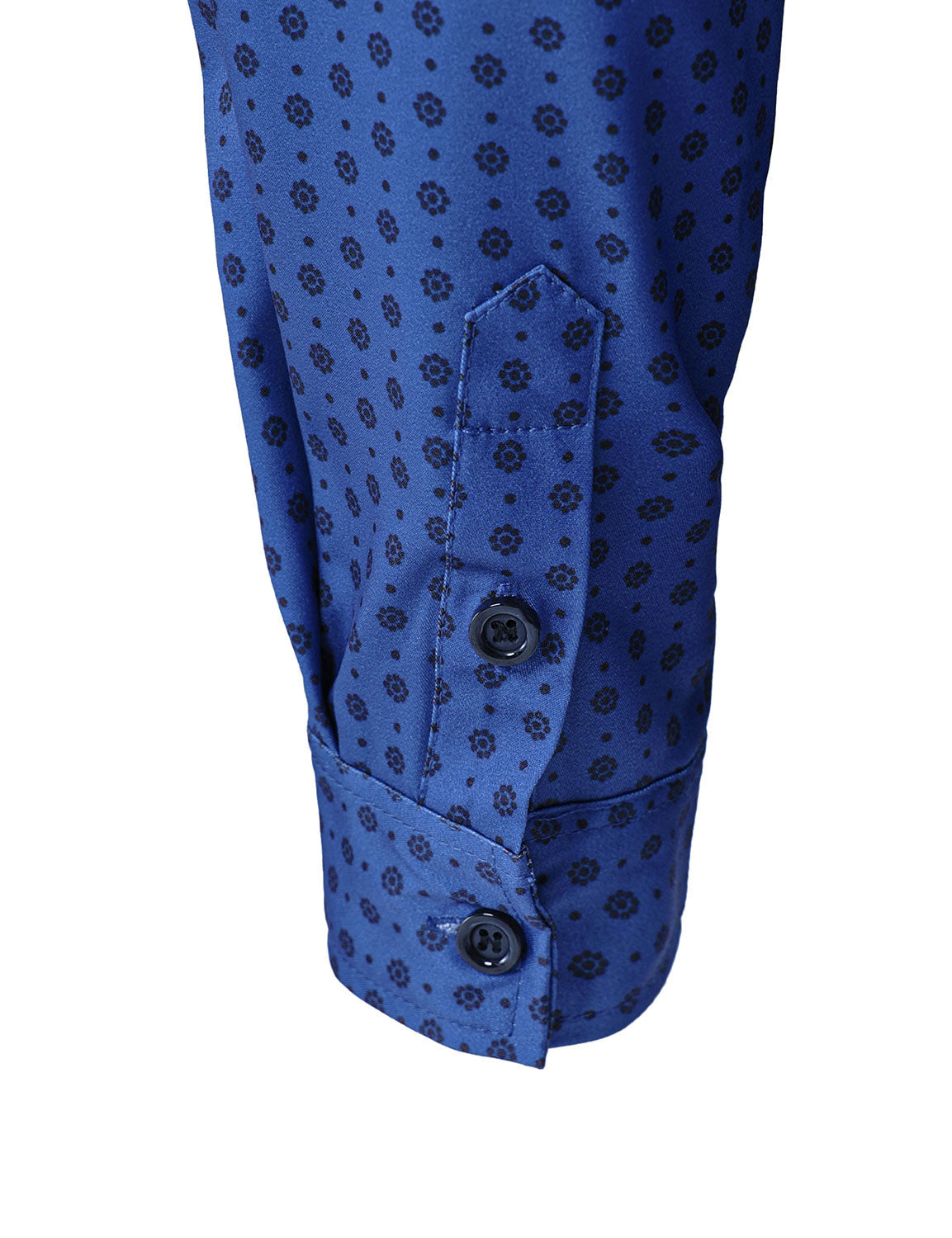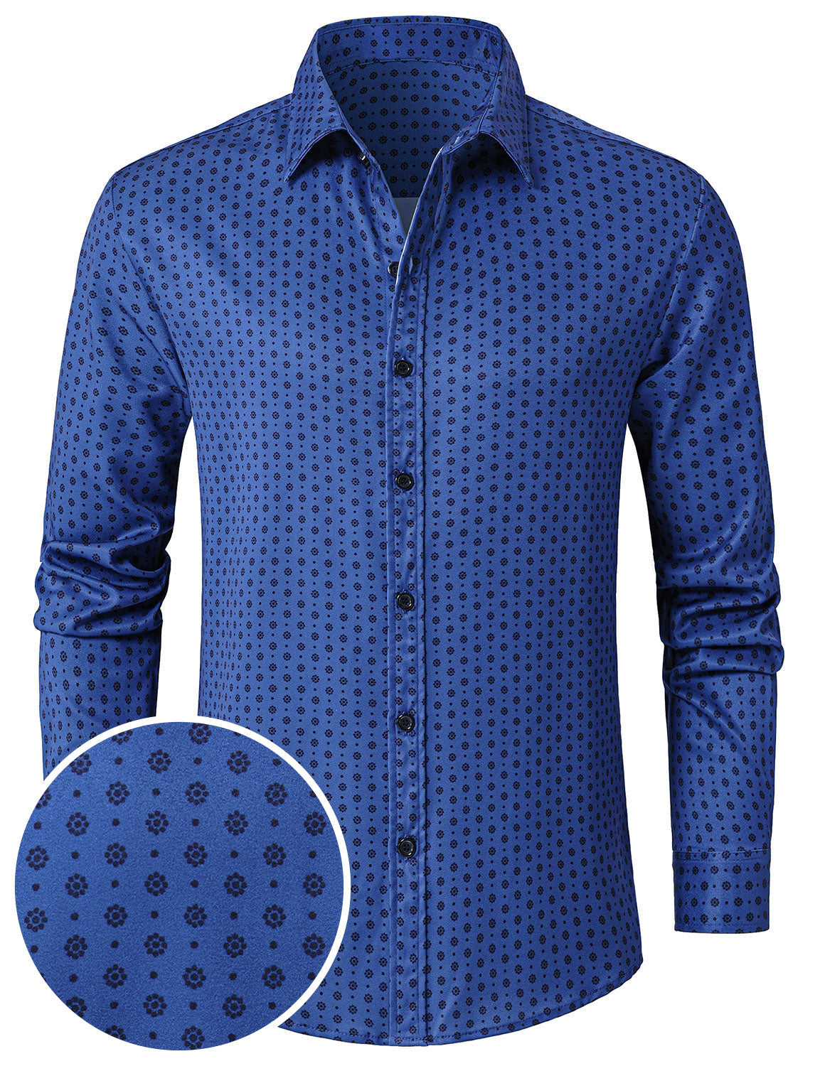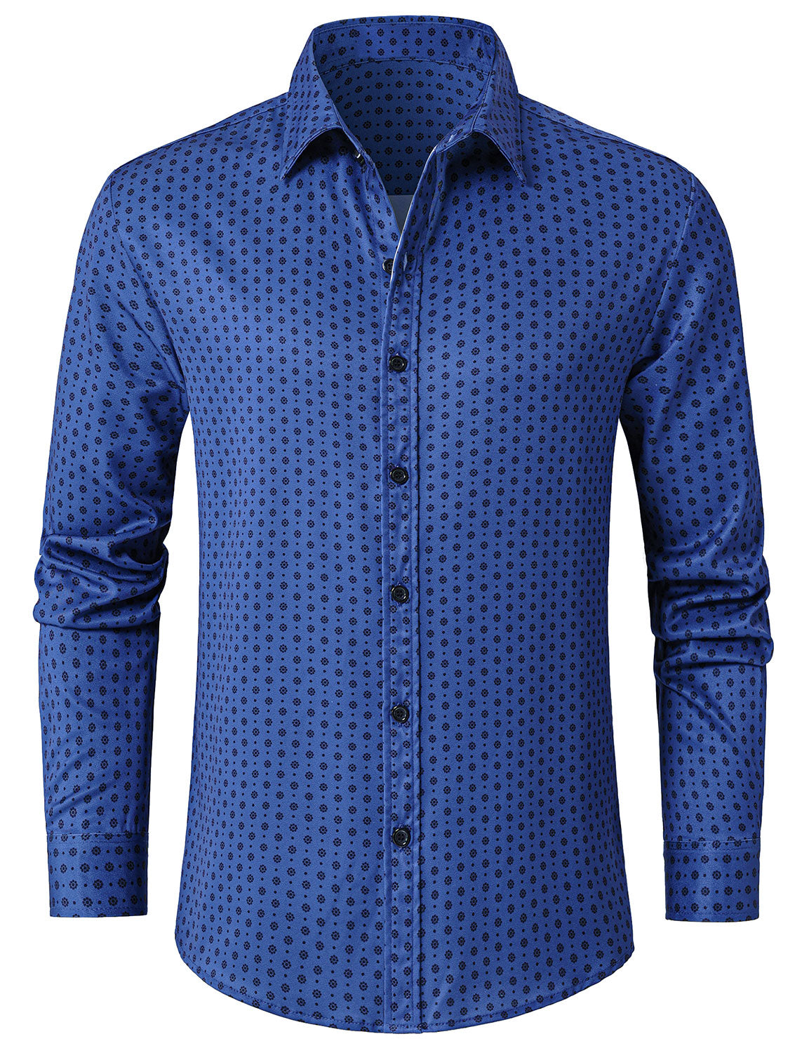 Men's Blue Retro Geometric Print Long Sleeve Shirt