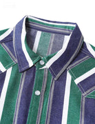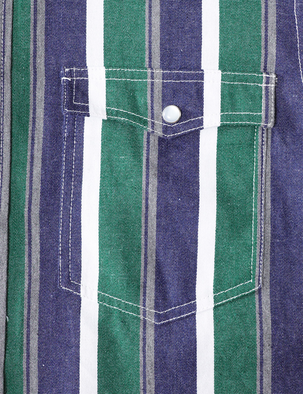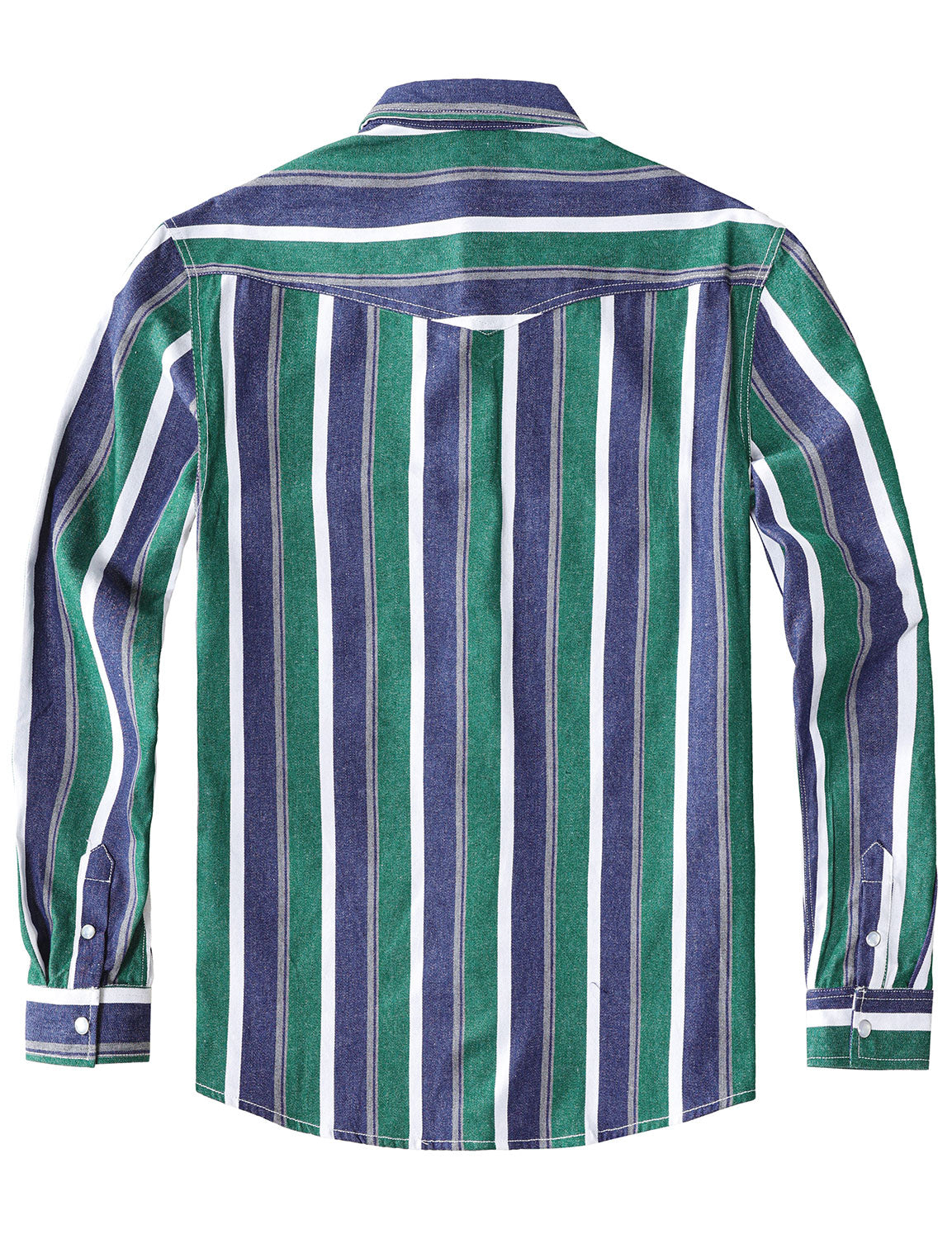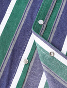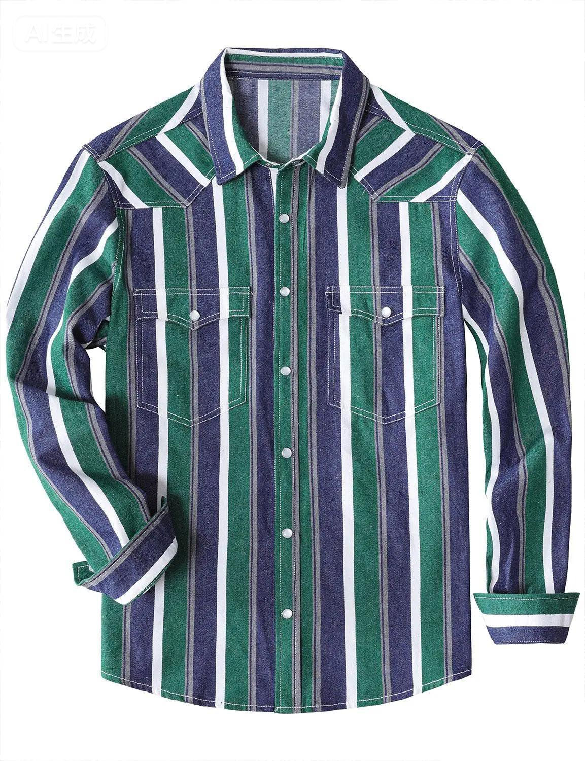 Men's Green Striped Western Pearl Snap Long Sleeve Denim Shirt