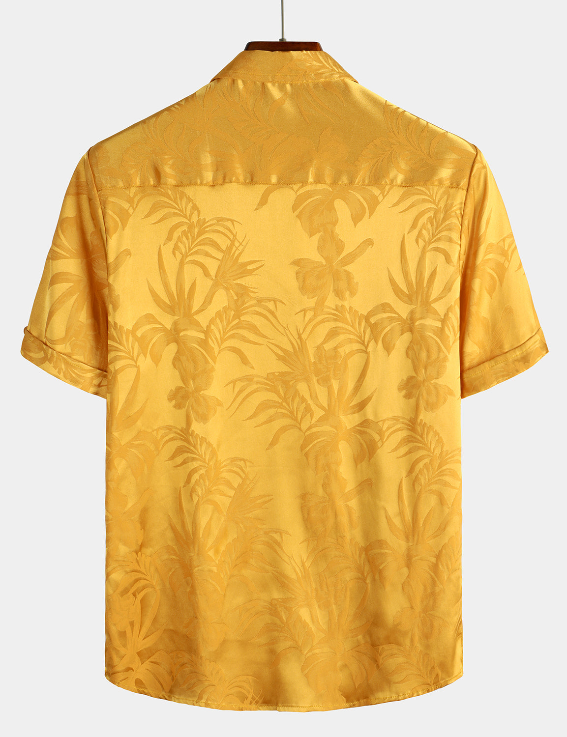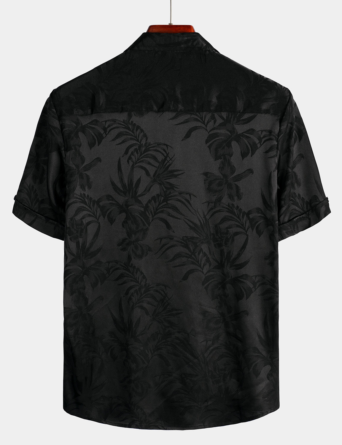 Men's Summer Jacquard Casual Button Up Pocket Floral Short Sleeve Beach Shirt