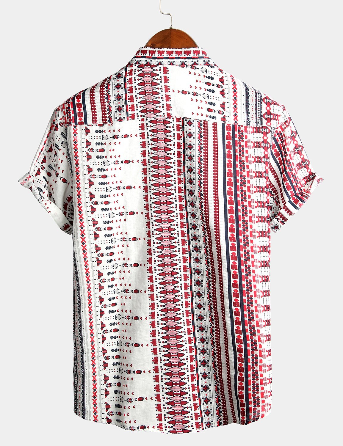 Men's Paisley Vintage Cotton Retro 70s Button Up Shirt