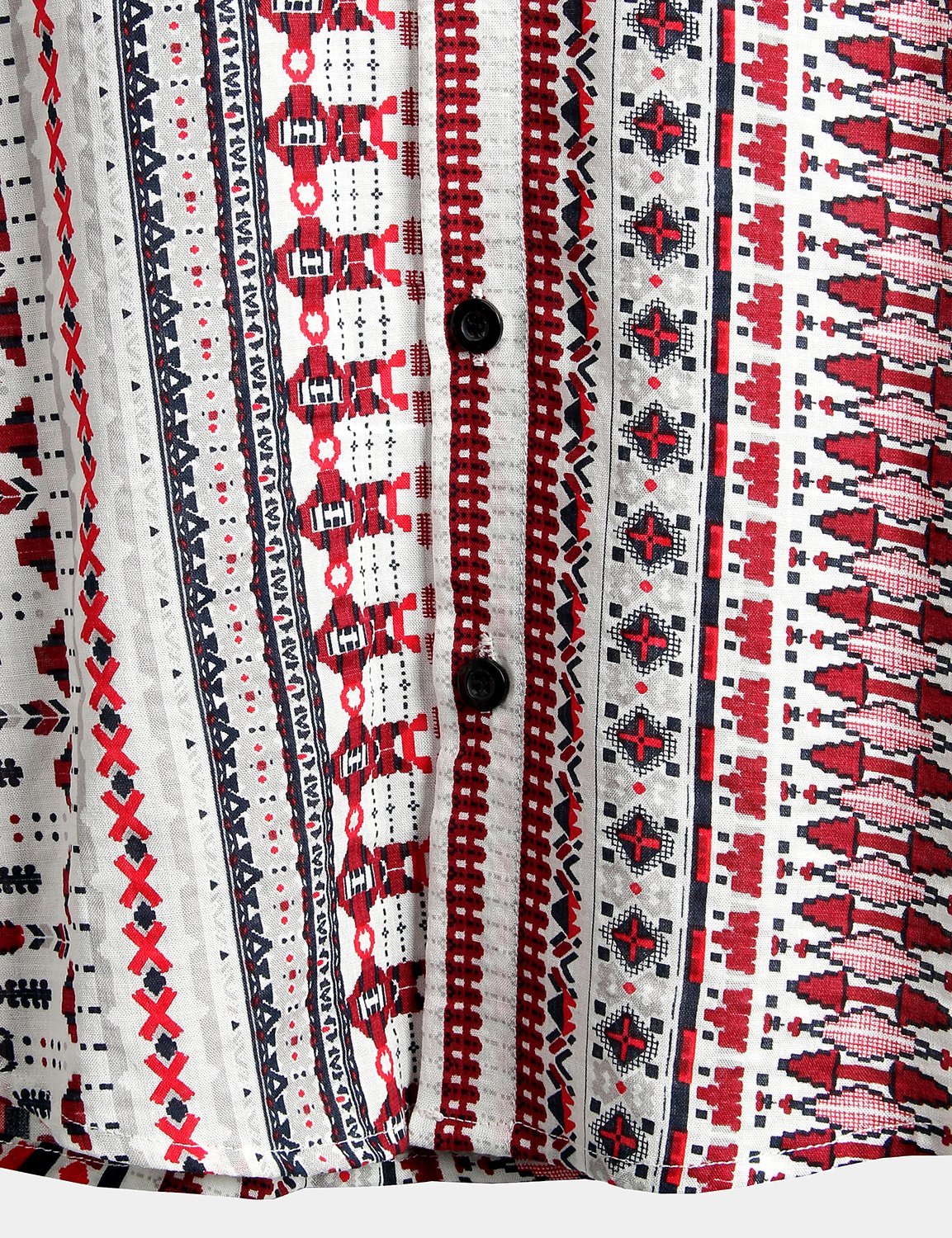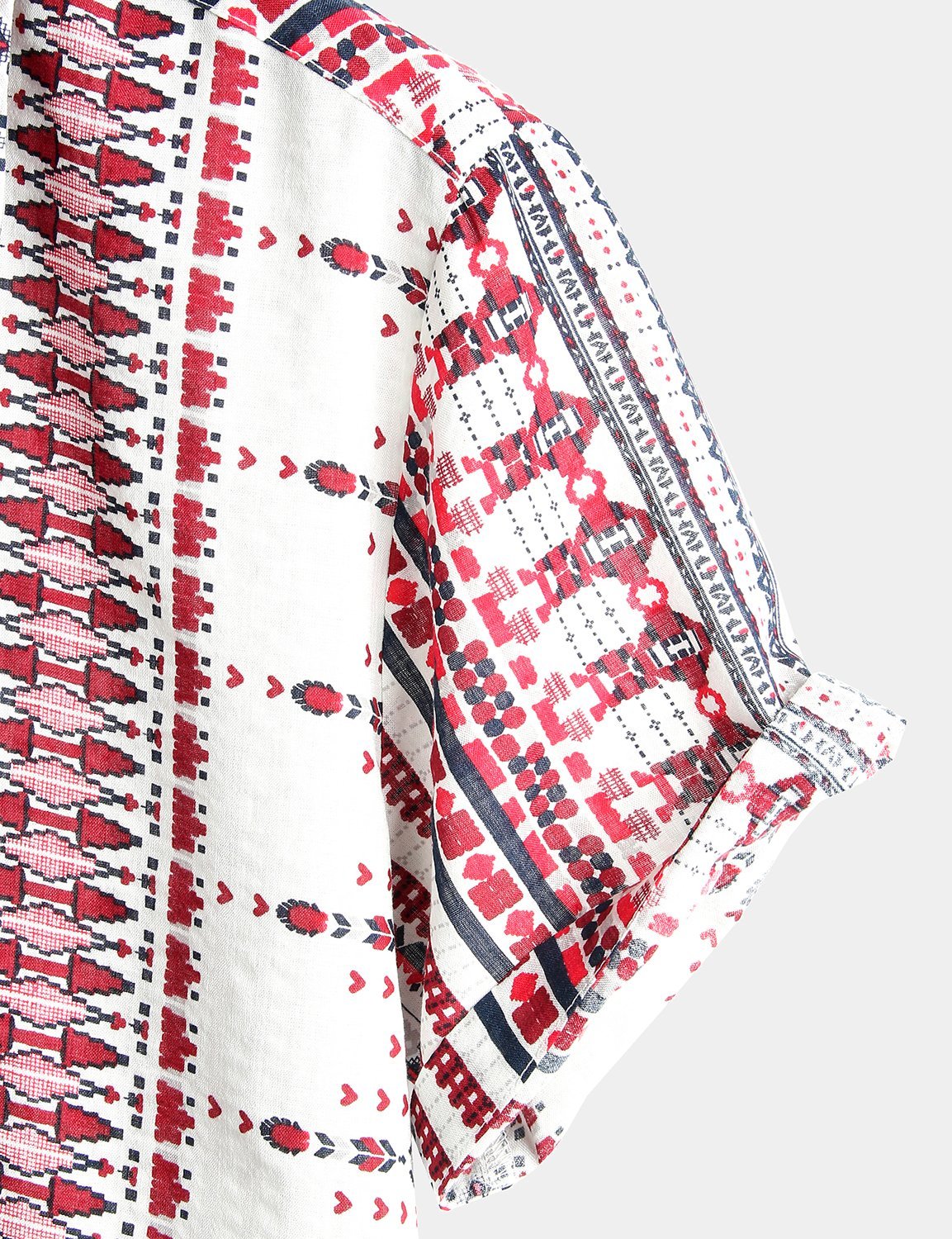 Men's Patchwork Printed Short Sleeve Cotton Shirt
