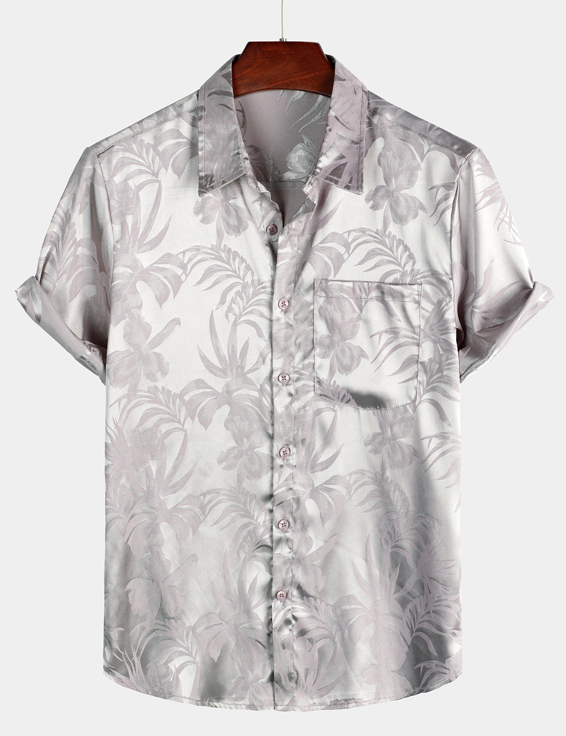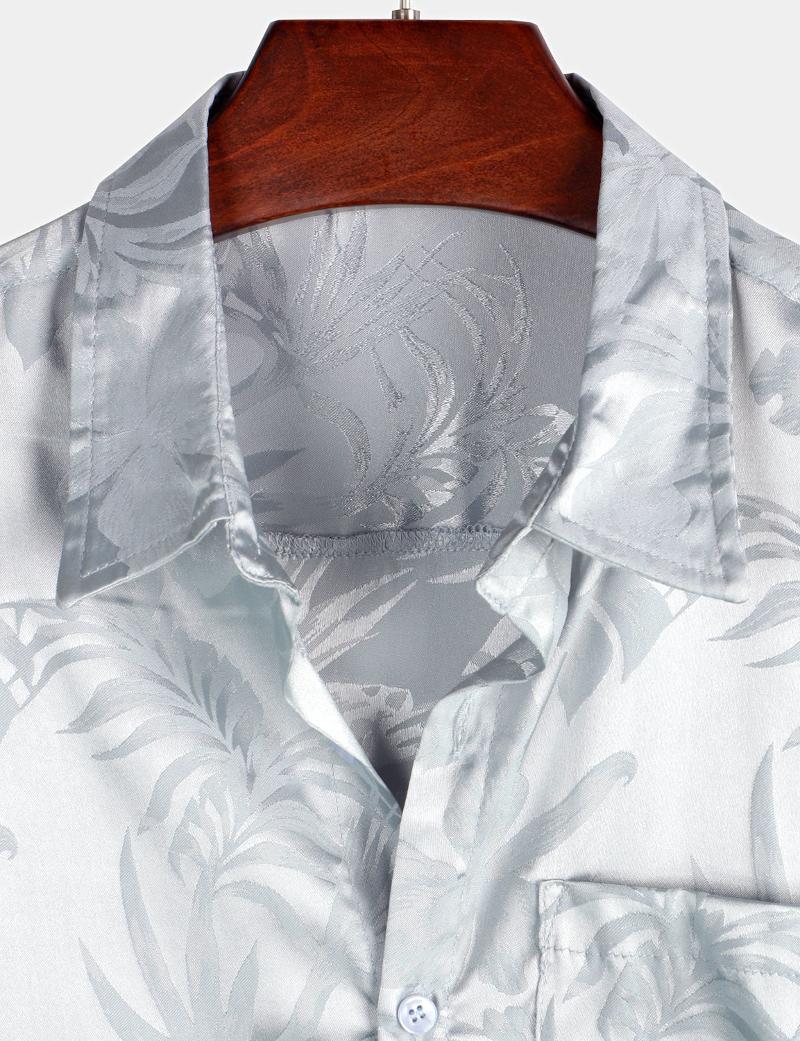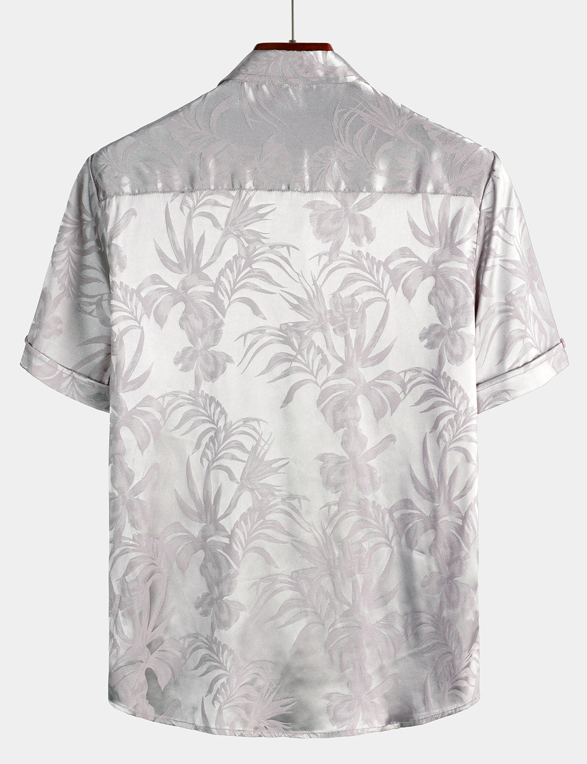 Men's Jacquard Flowers Button Up Pocket Floral Summer Cool Short Sleeve Tops Beach Vacation Shirt