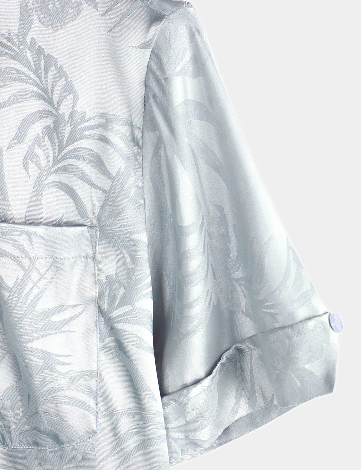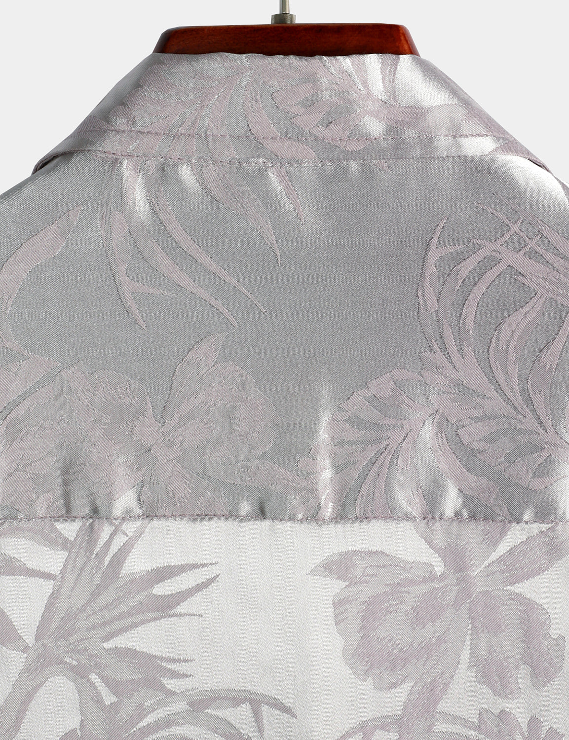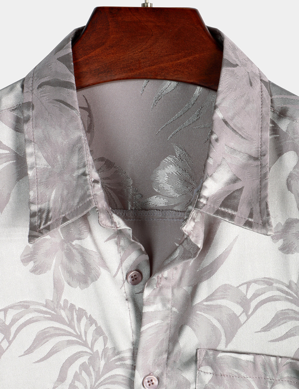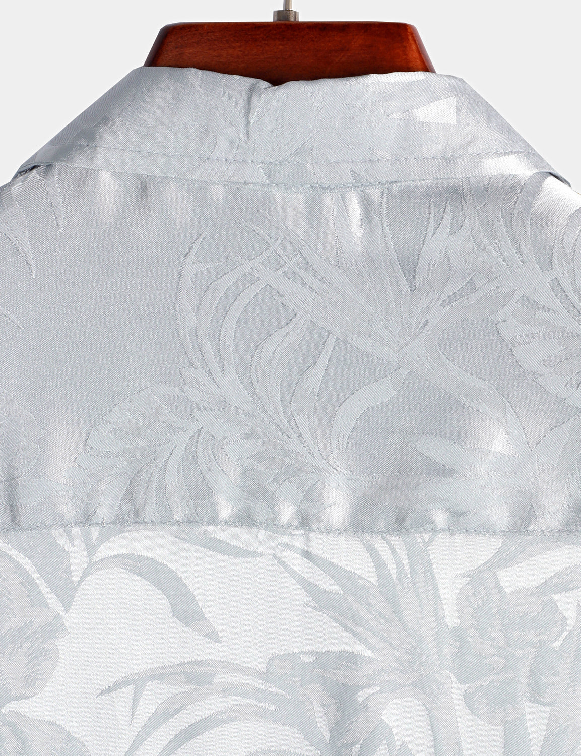 Men's Jacquard Flowers Button Up Pocket Floral Summer Cool Short Sleeve Tops Beach Vacation Shirt