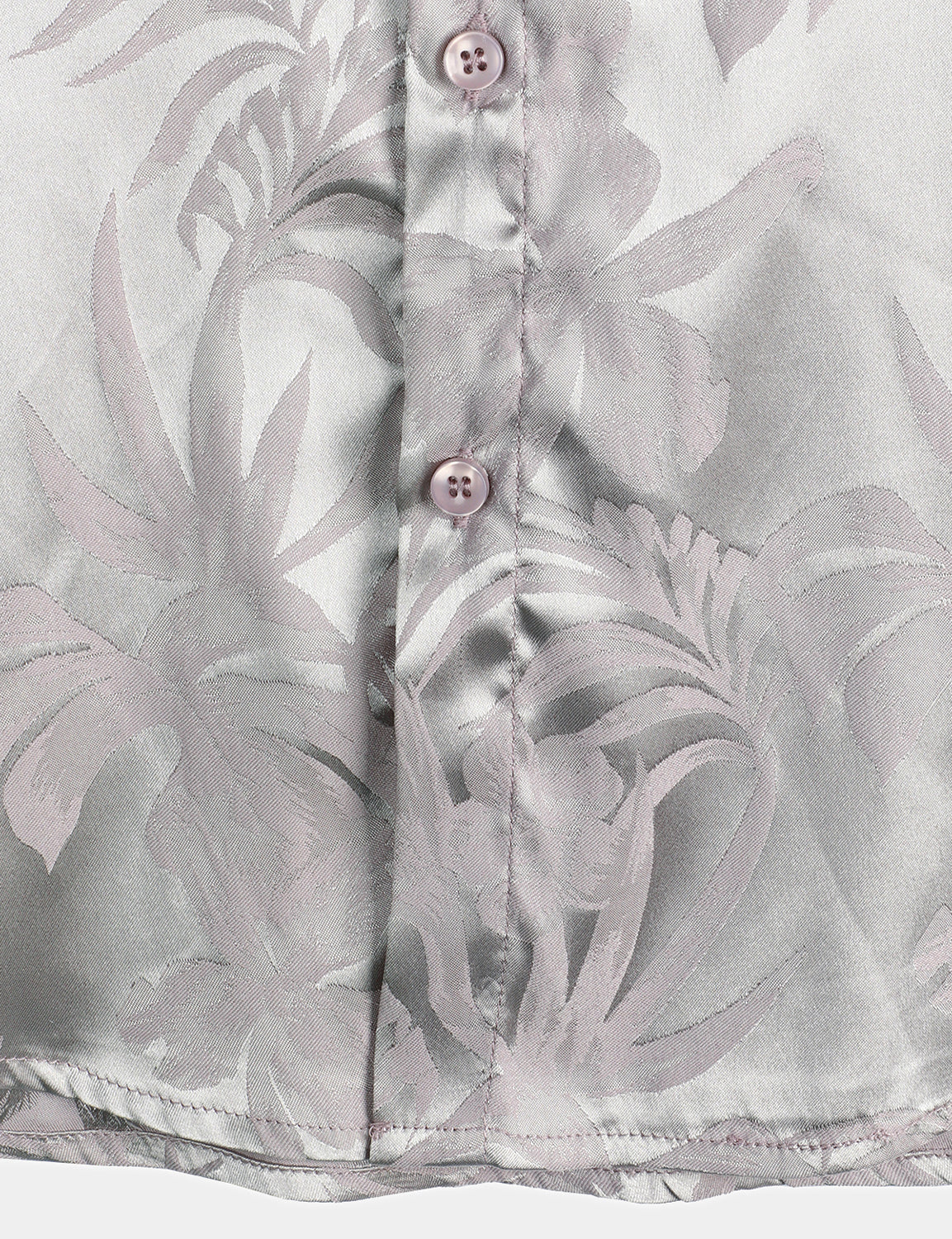 Men's Grey Cotton Floral Print Long Sleeve Shirt