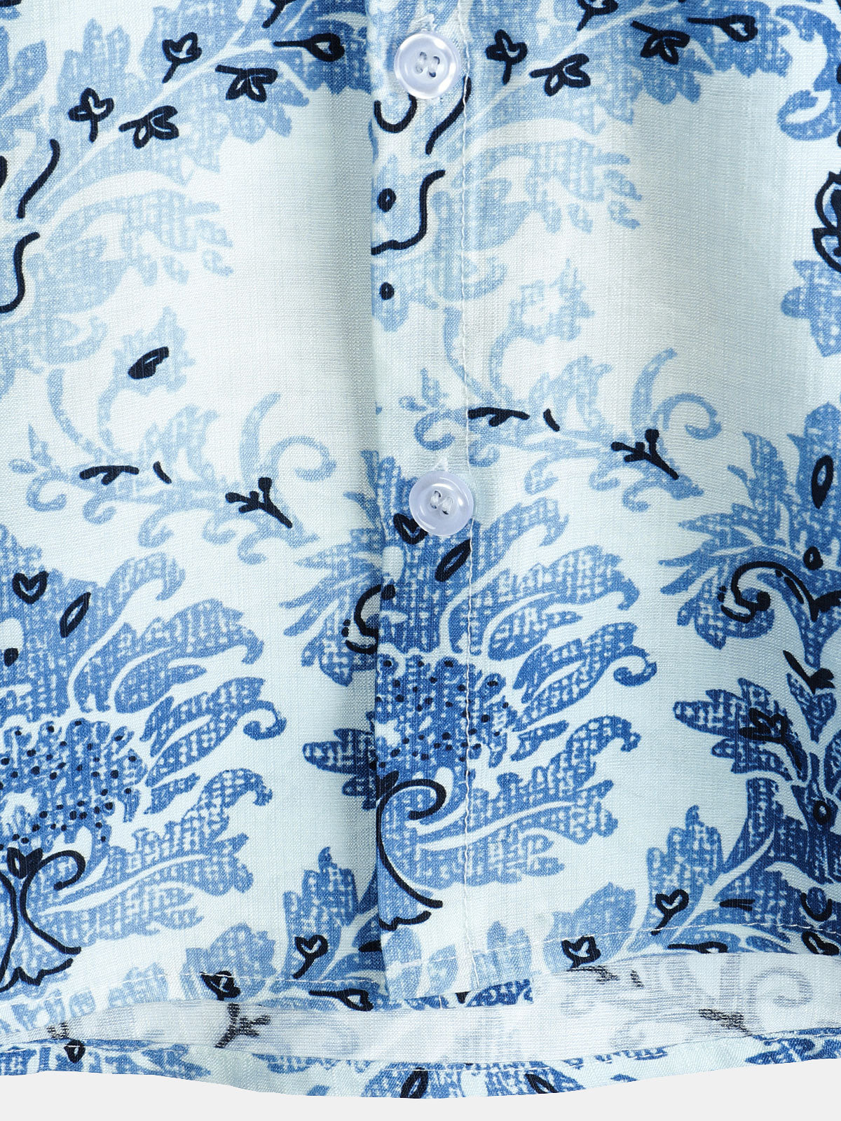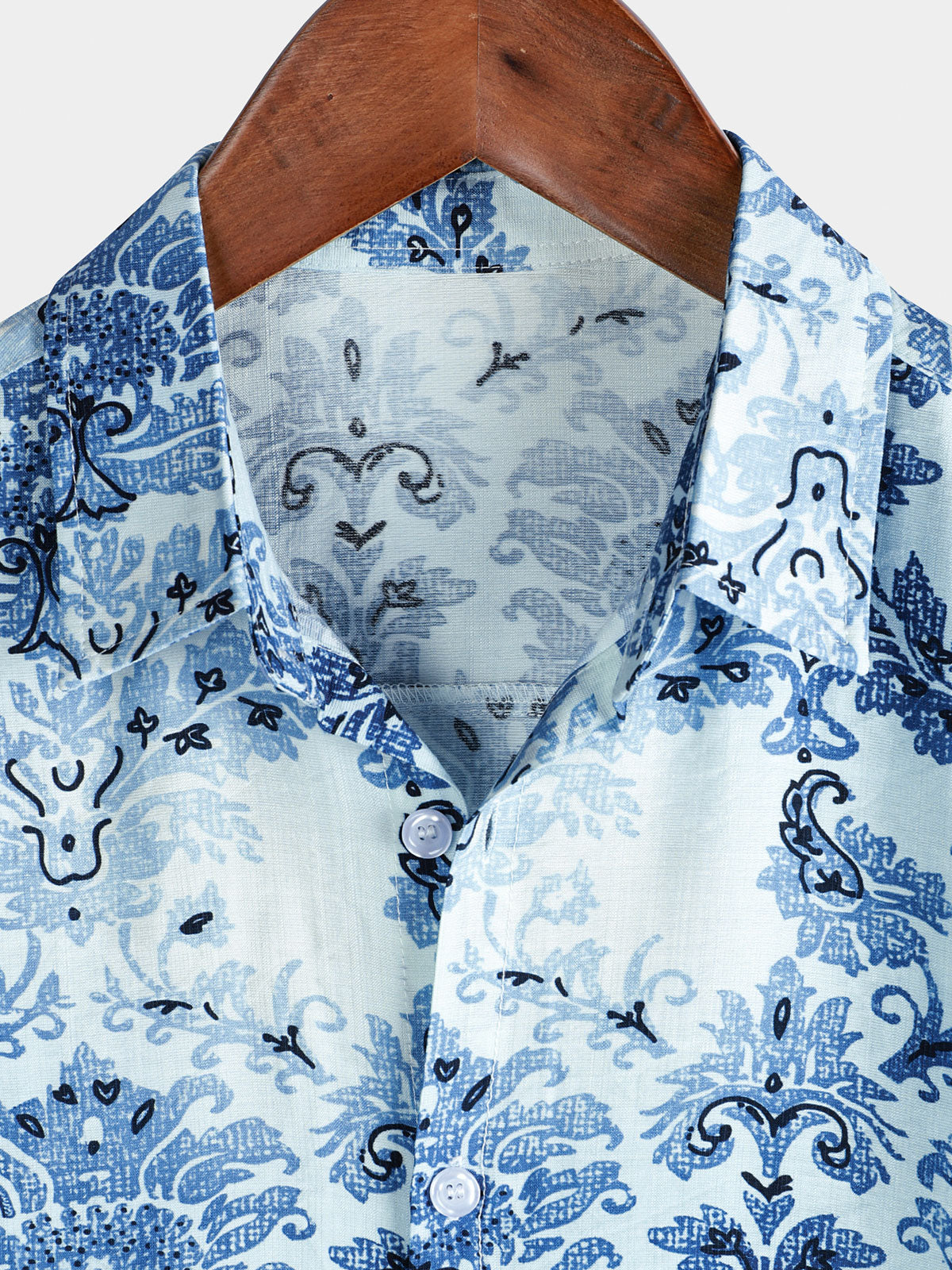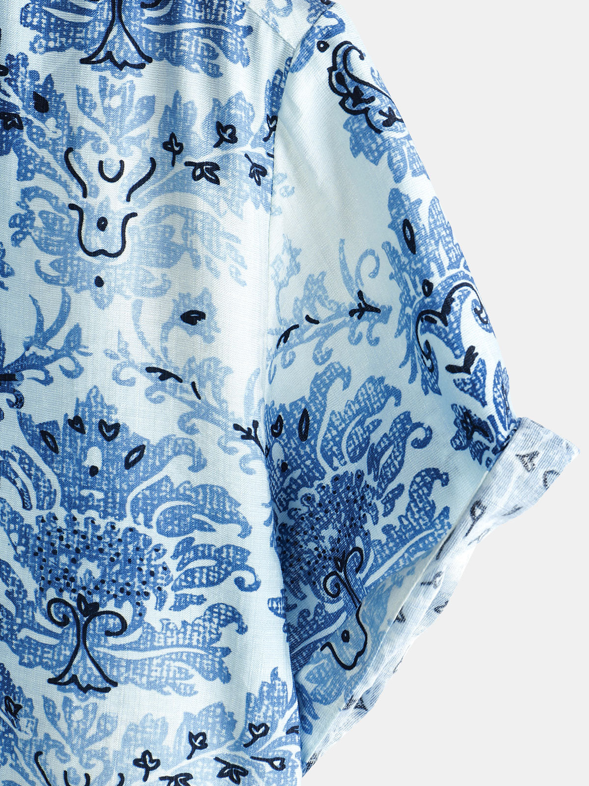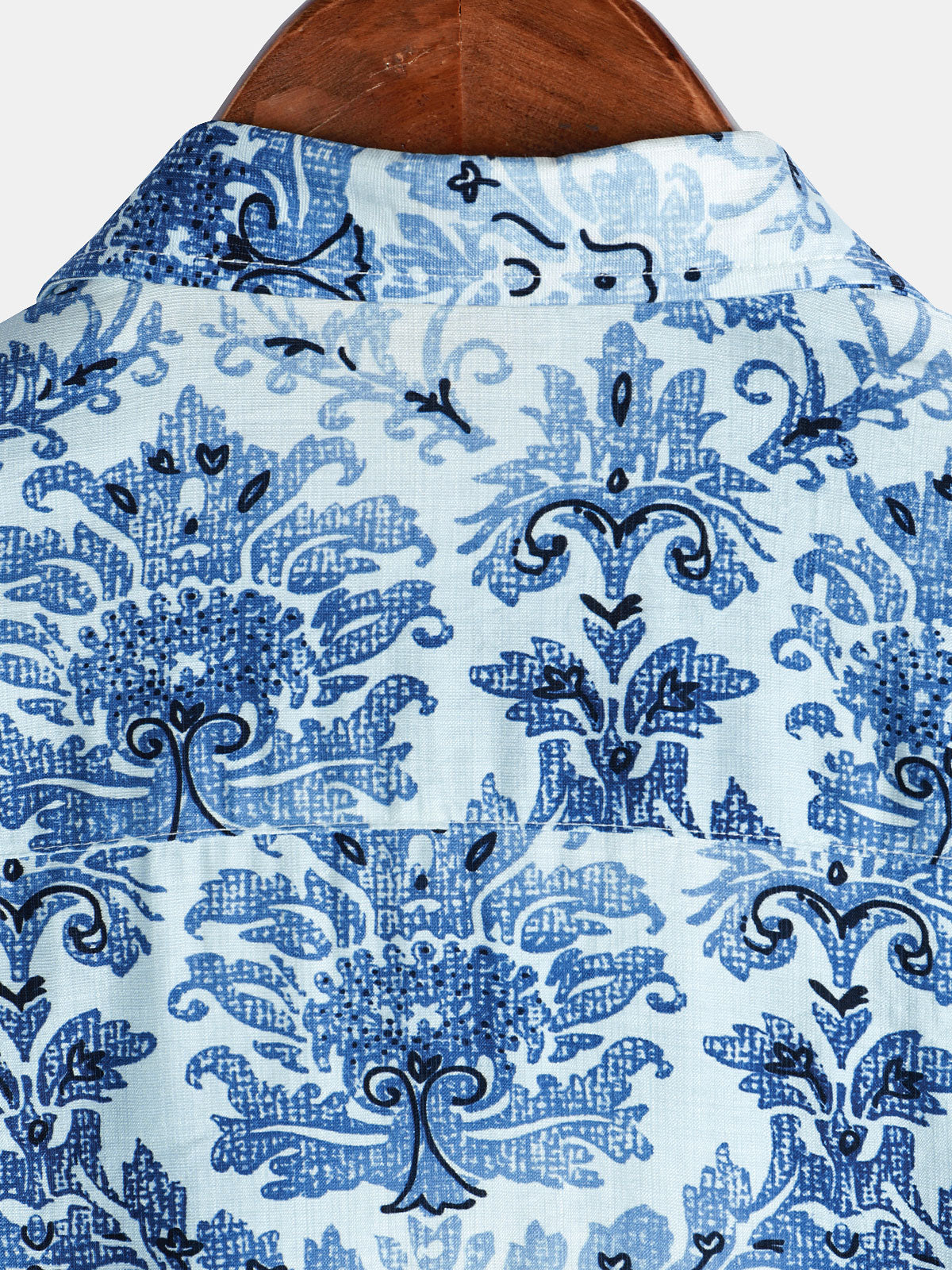Men's Blue Floral Print Hawaiian Short Sleeve Shirt