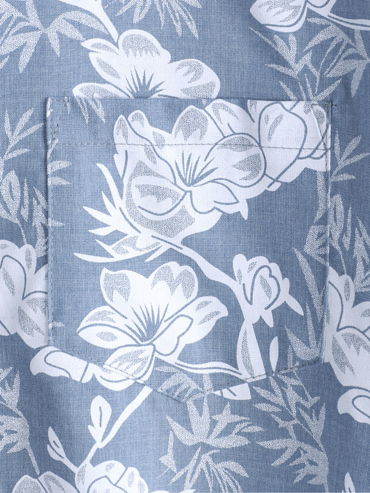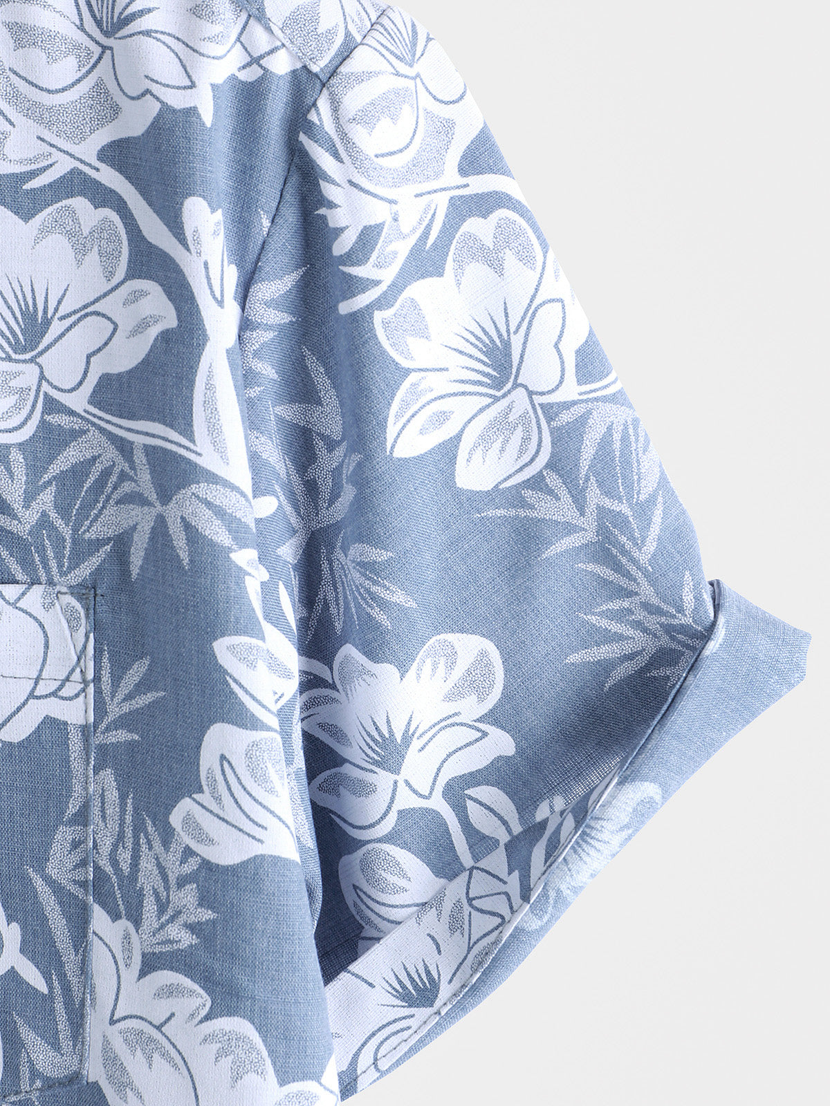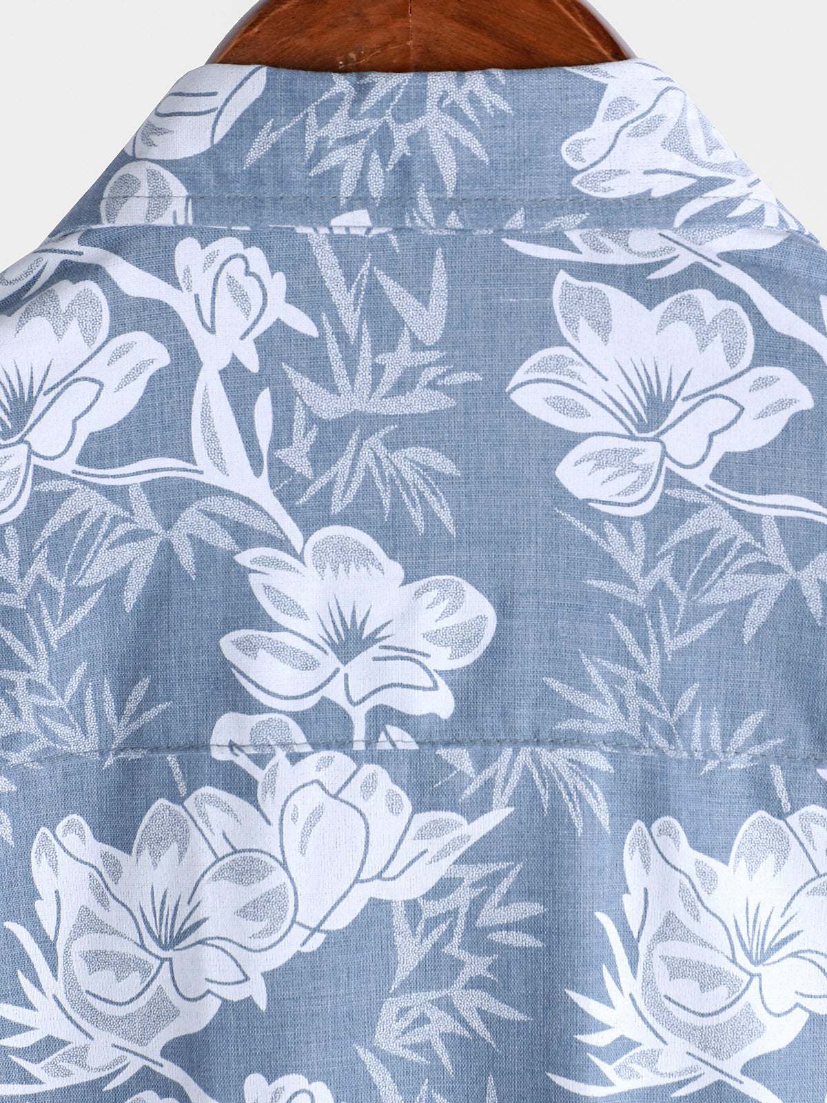Men's Blue Floral Short Sleeve Cotton Summer Button Up Shirt