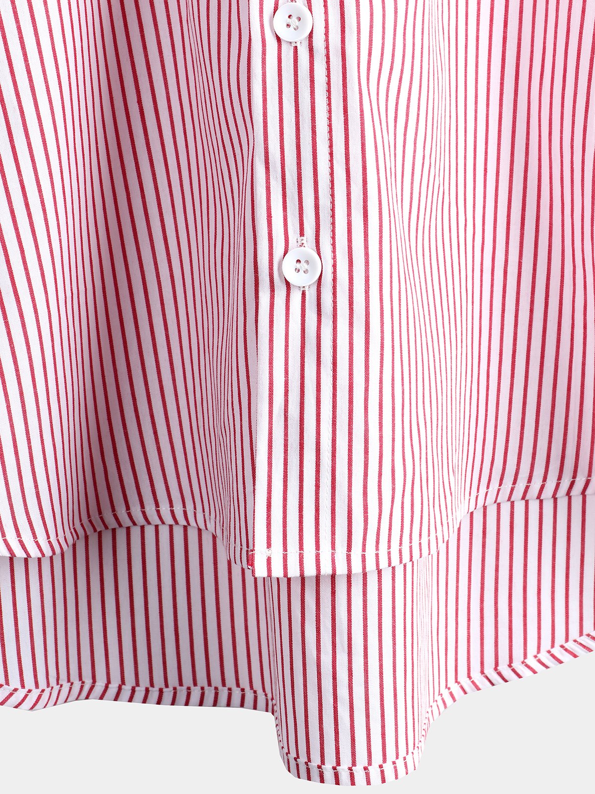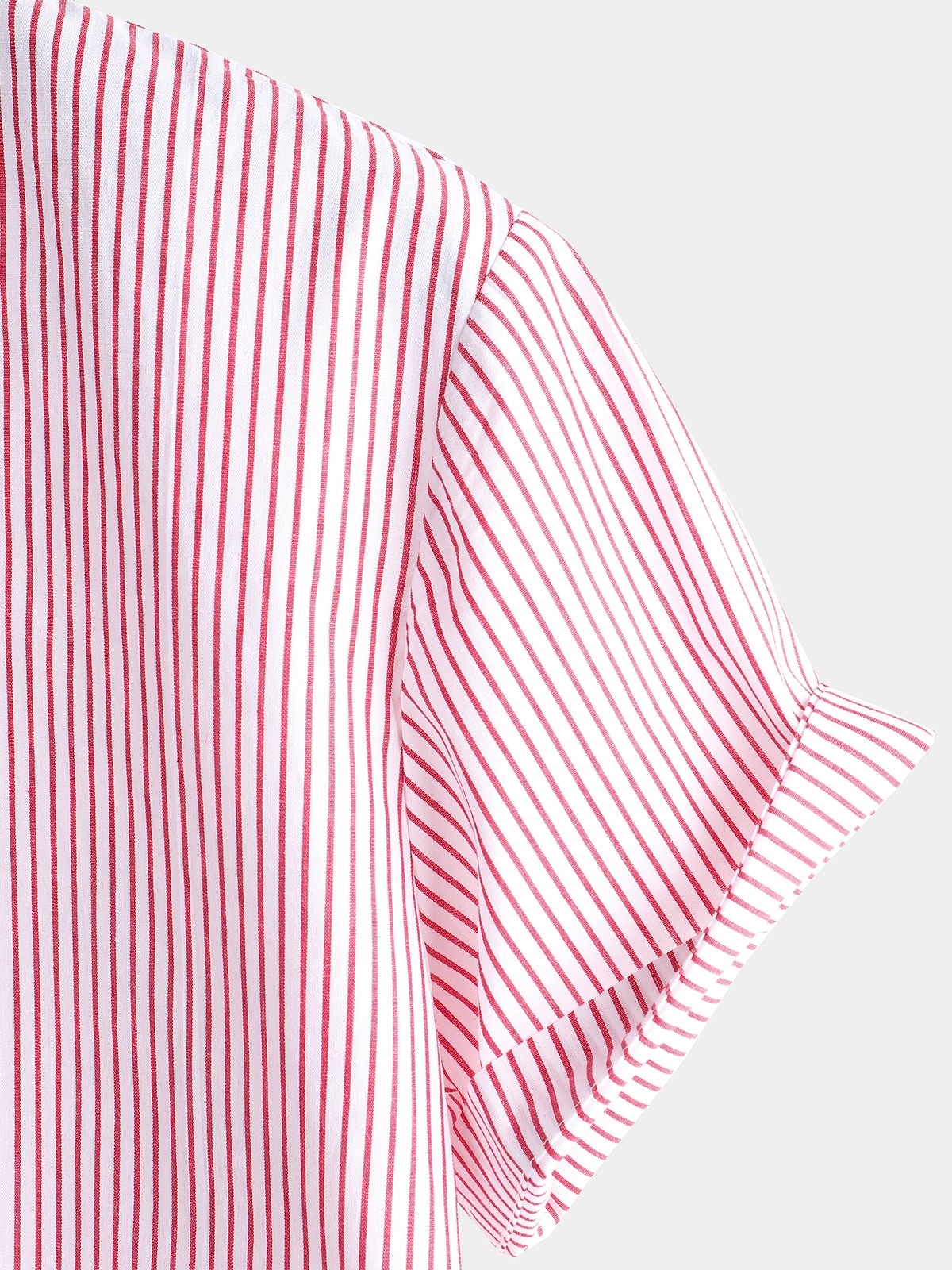 Men's Breathable Stand Collar Short Sleeve Striped Shirts