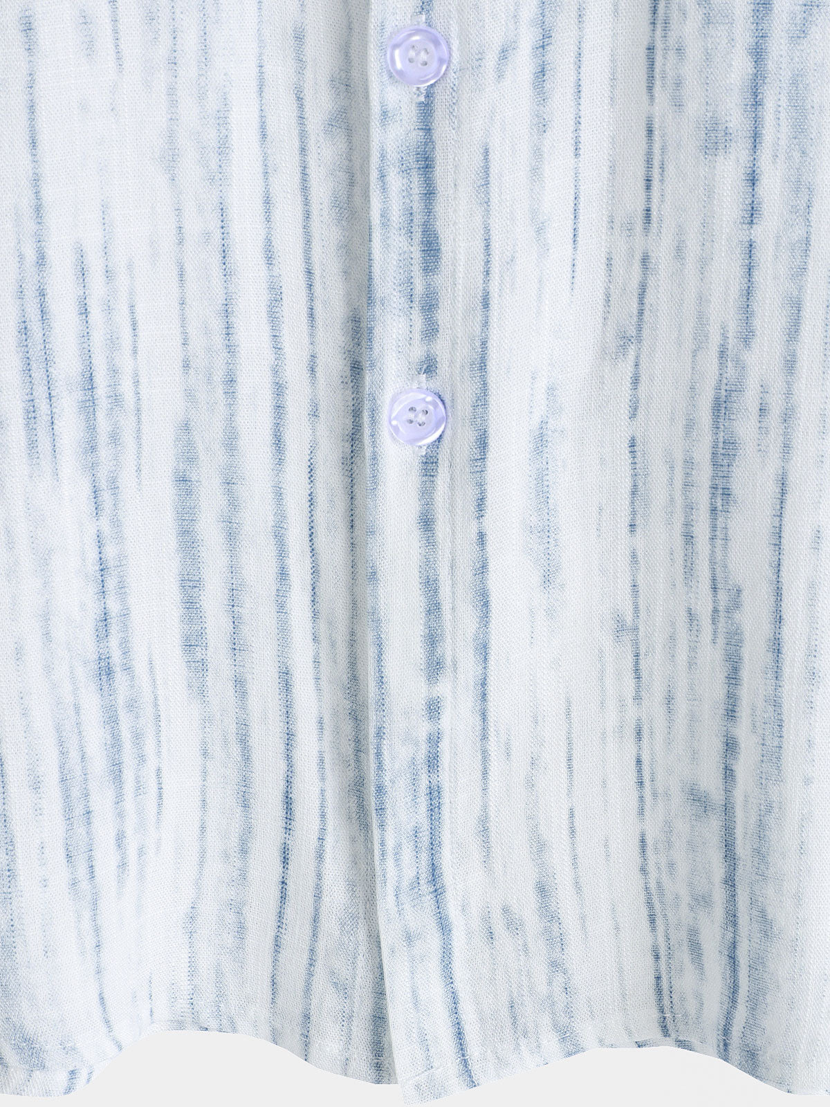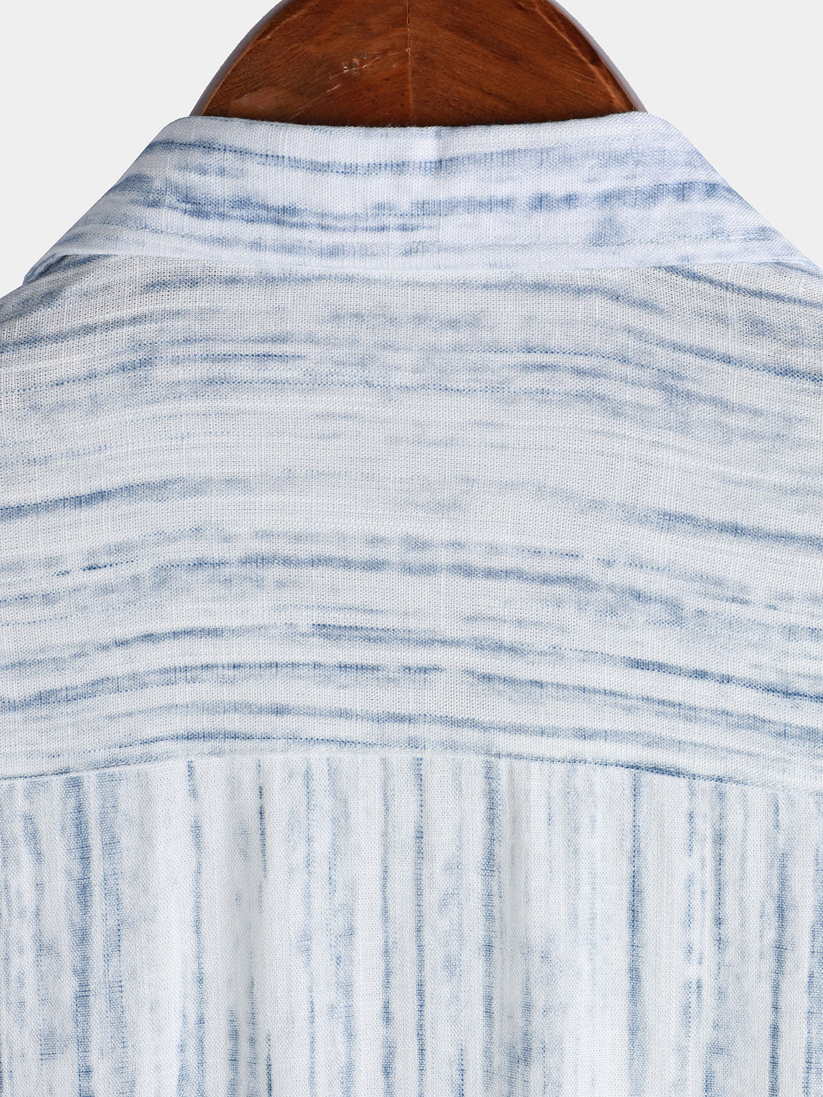 Men's Breathable Short Sleeve Pocket White Striped Shirt