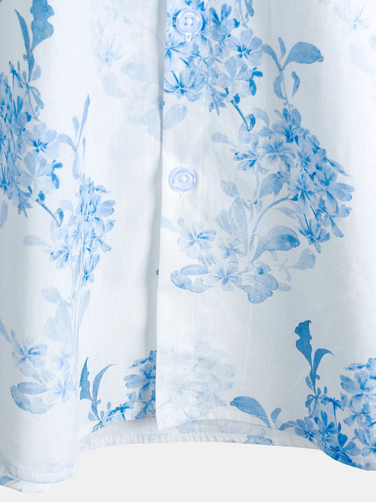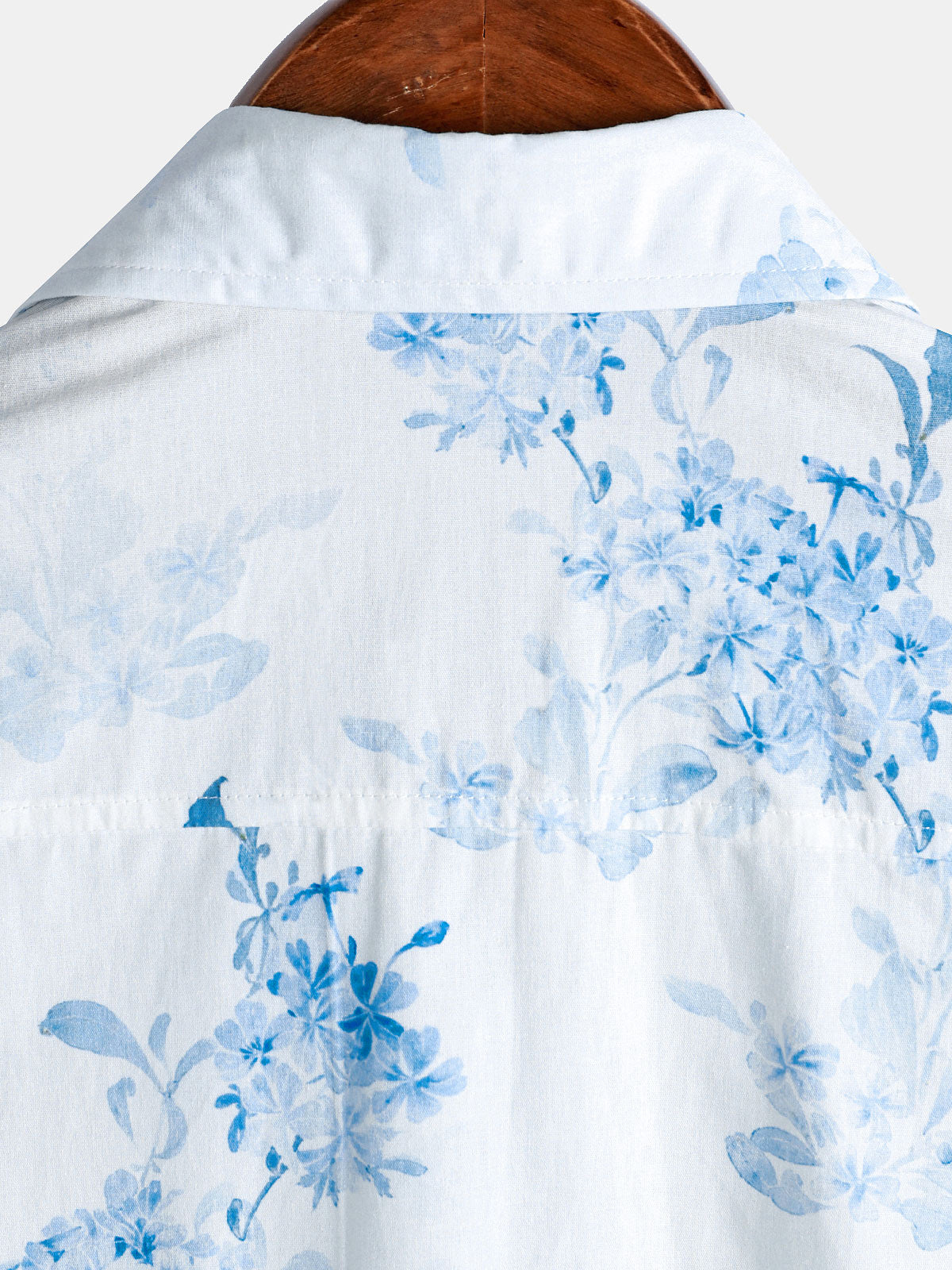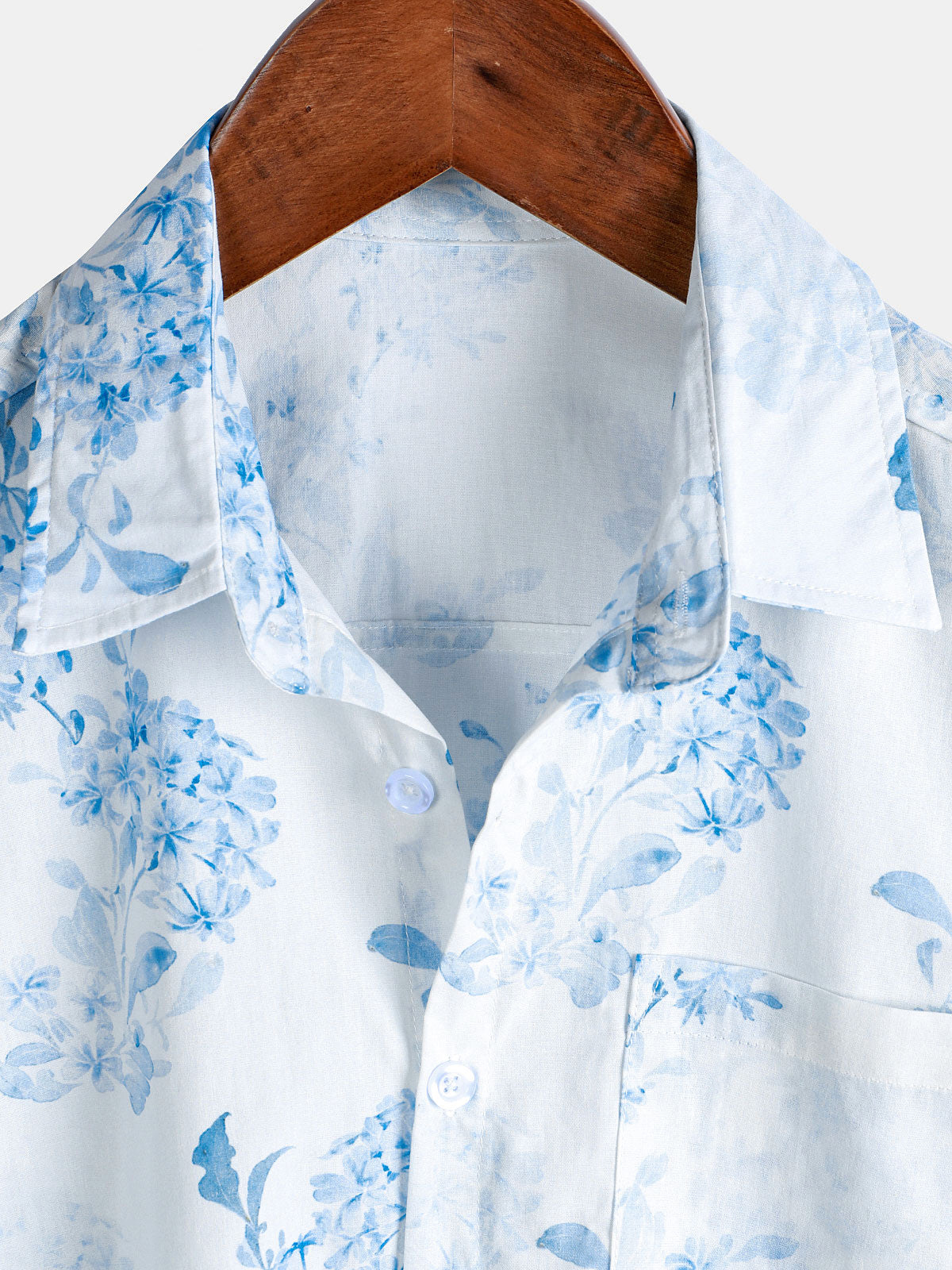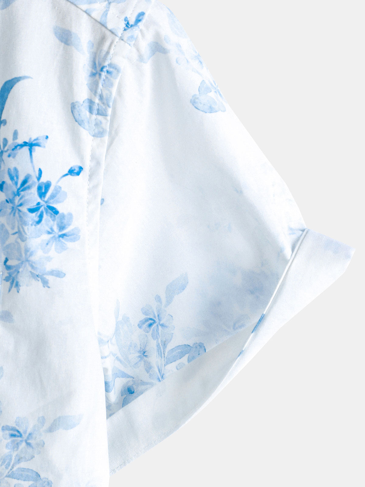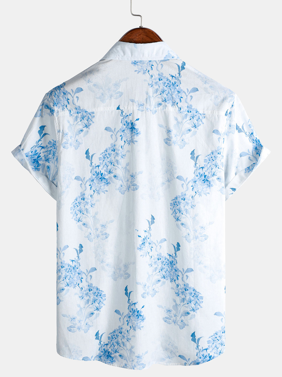 Men's Casual Floral Print Holiday Short Sleeve Button Up Hawaiian Shirt