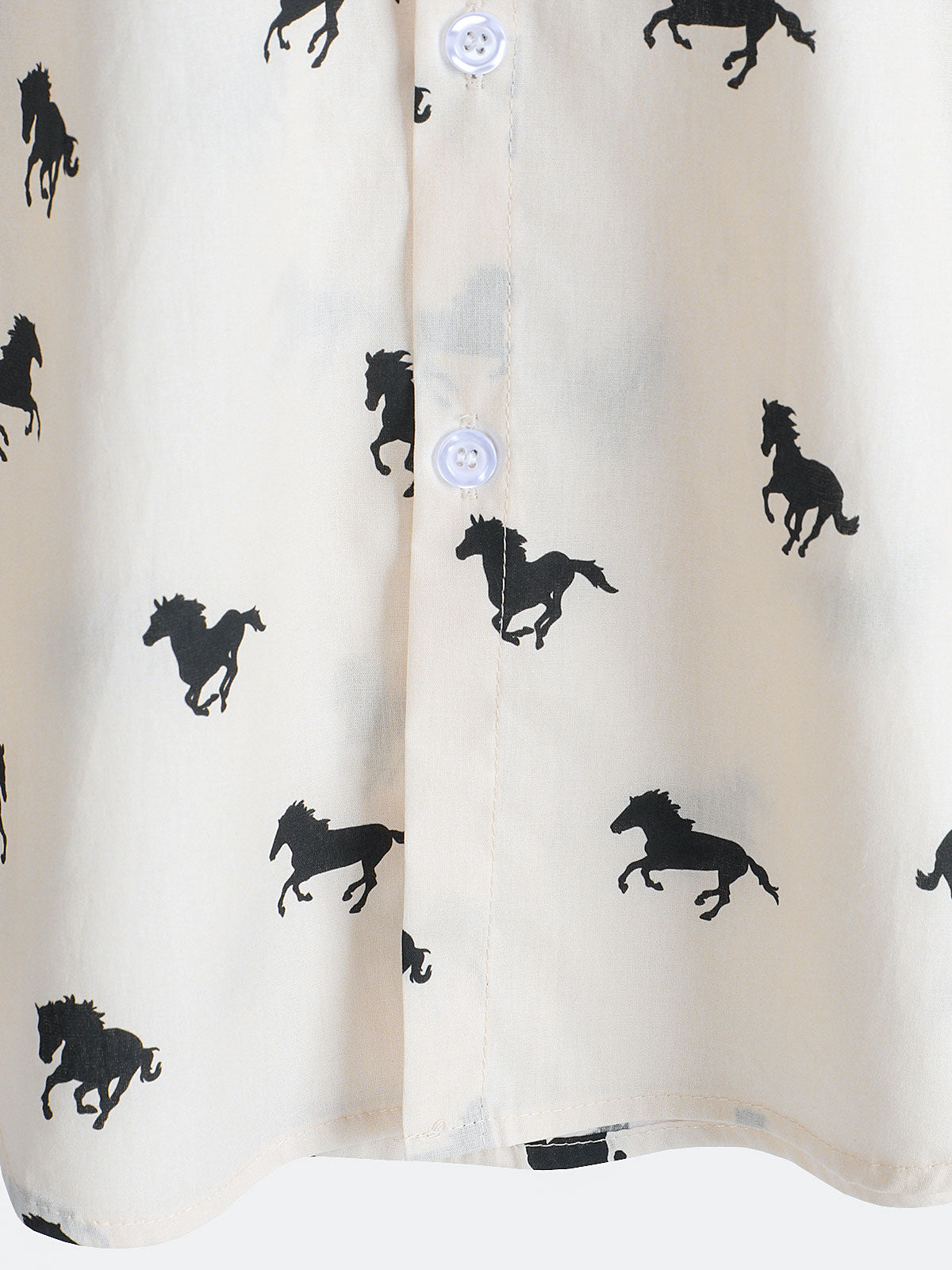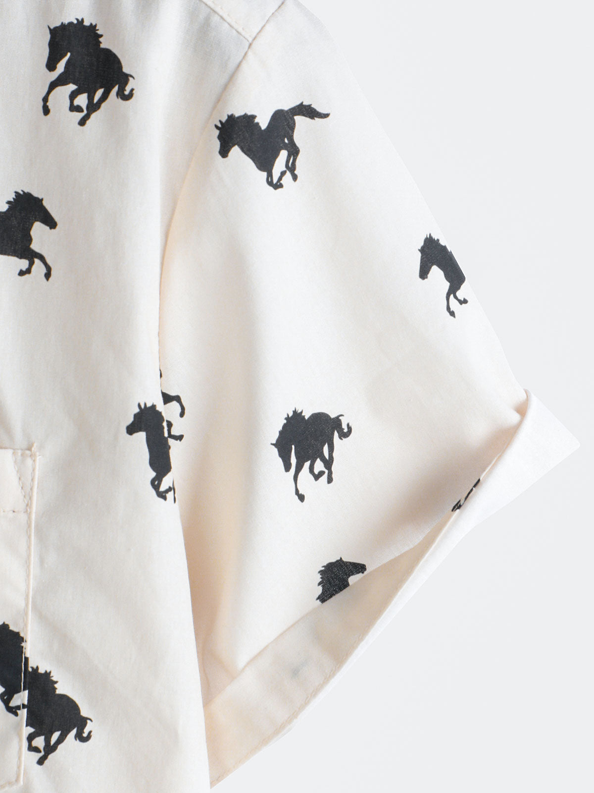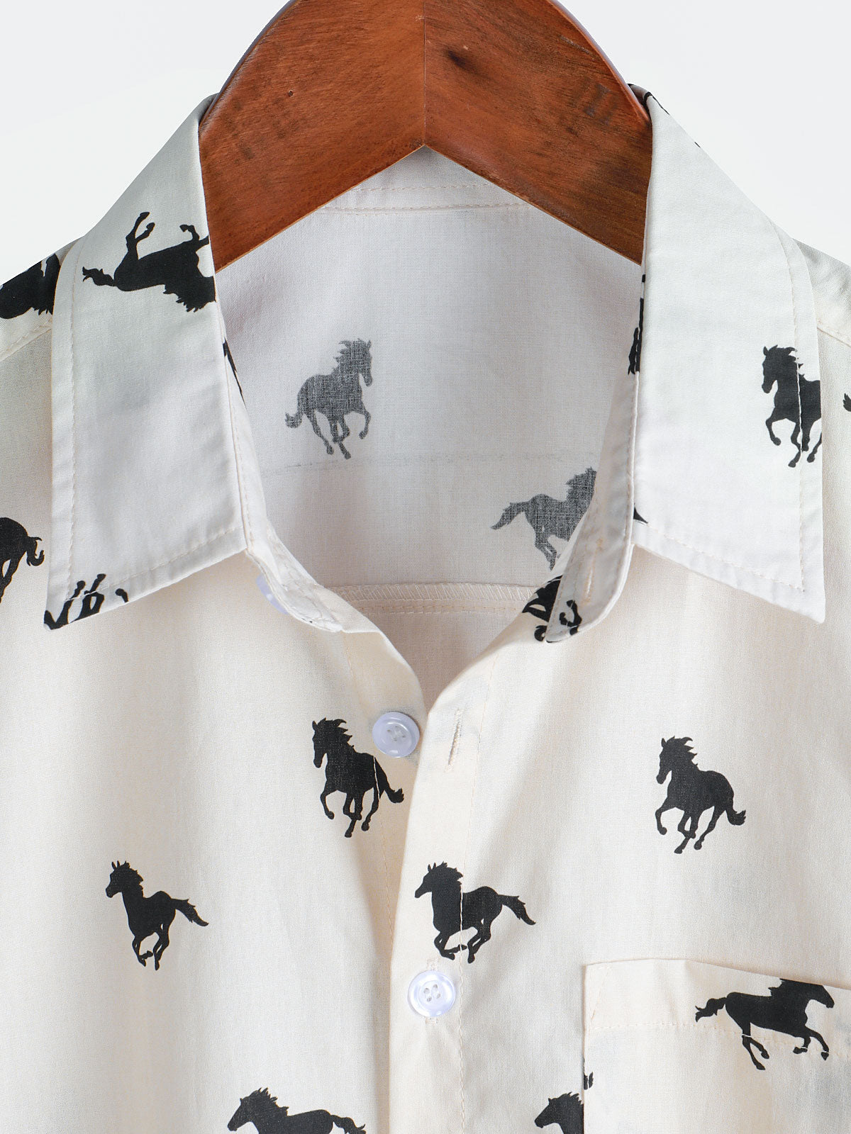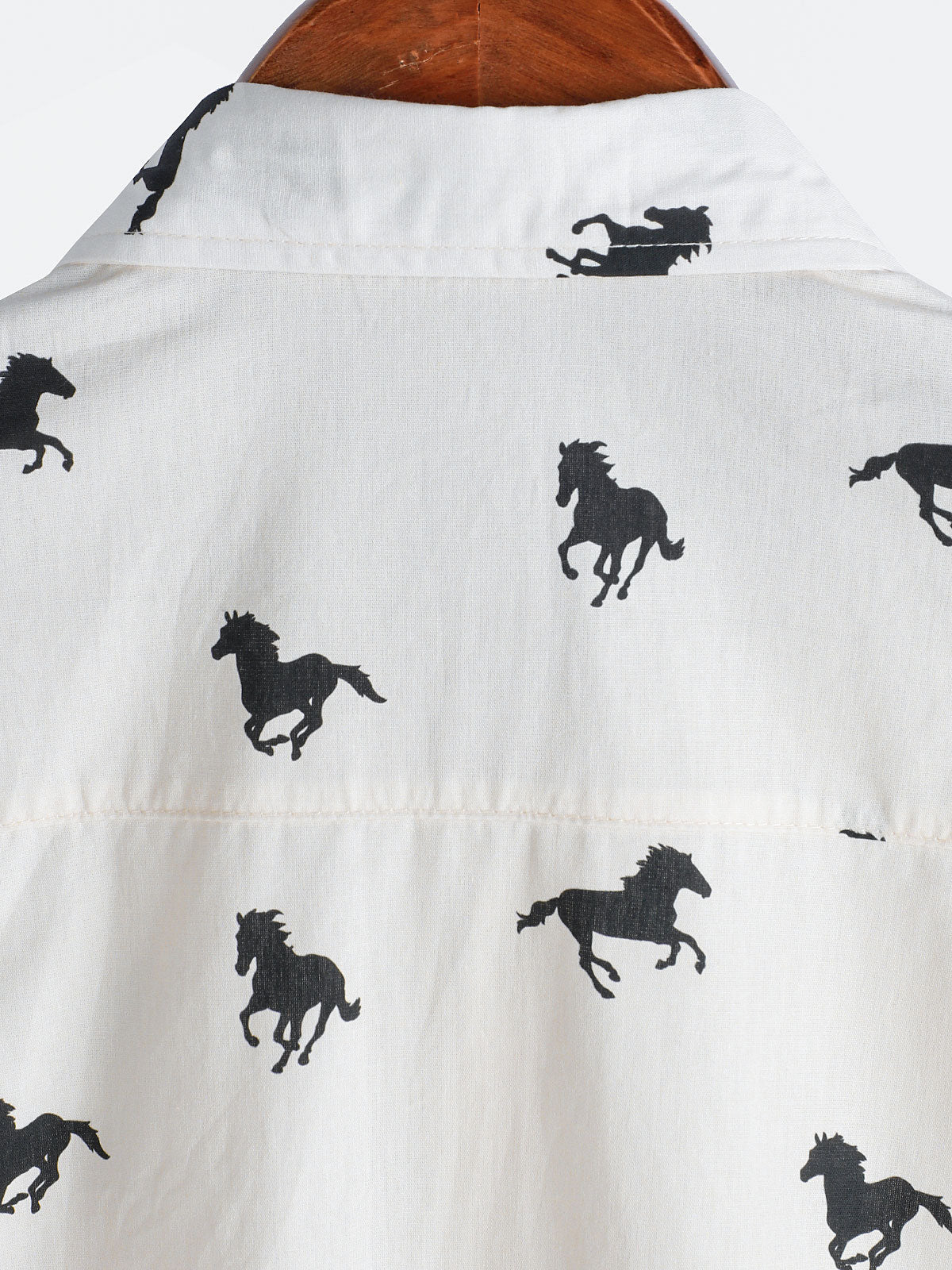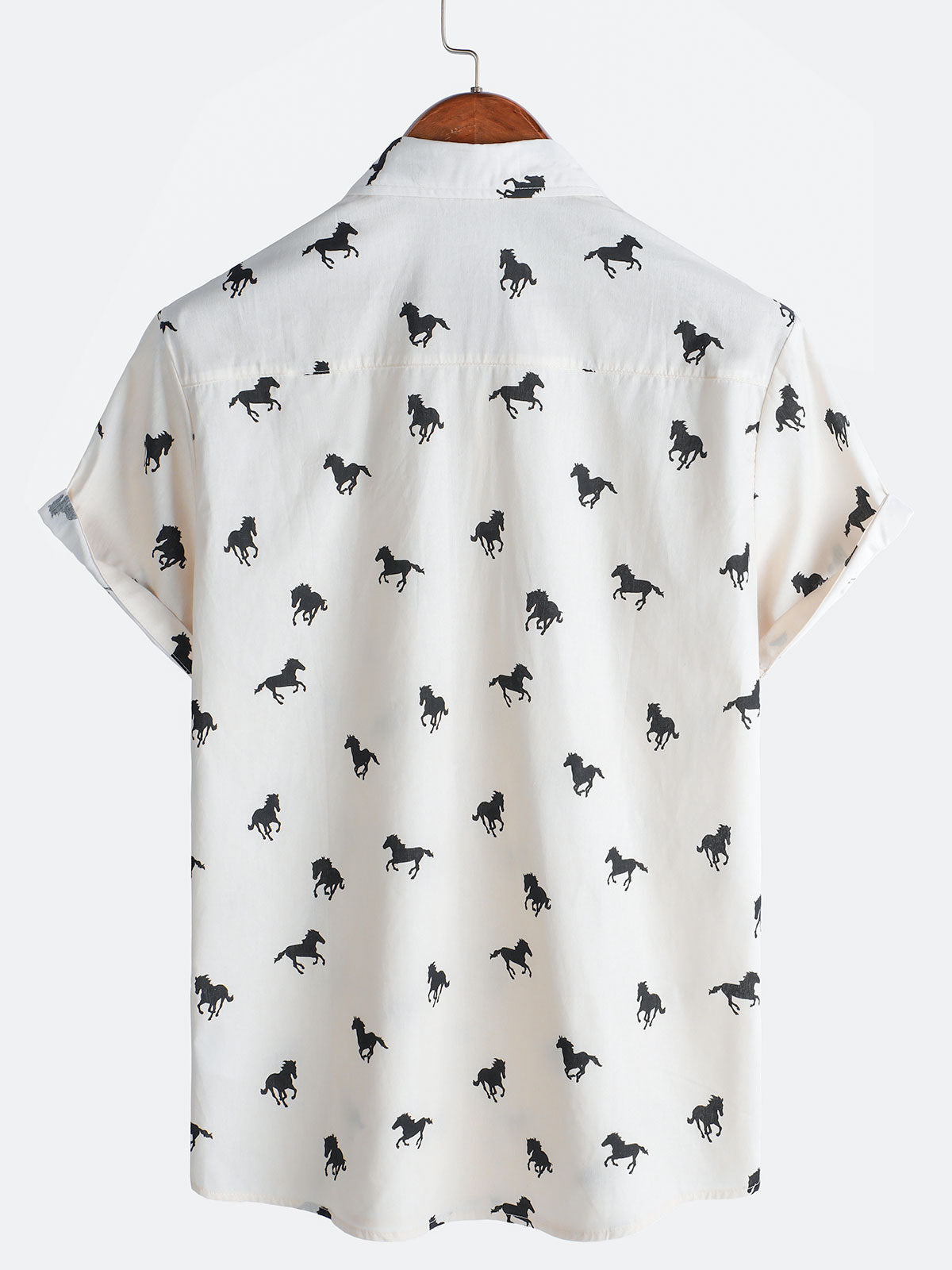 Men's Casual Horse Western Button Holiday Short Sleeve Shirt