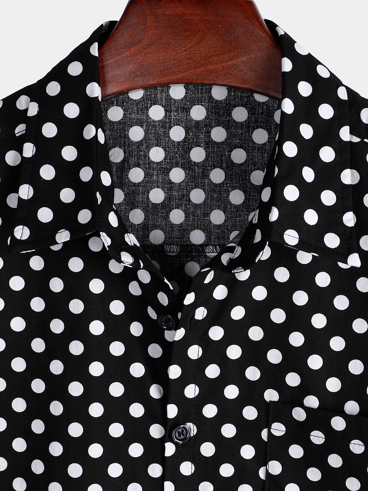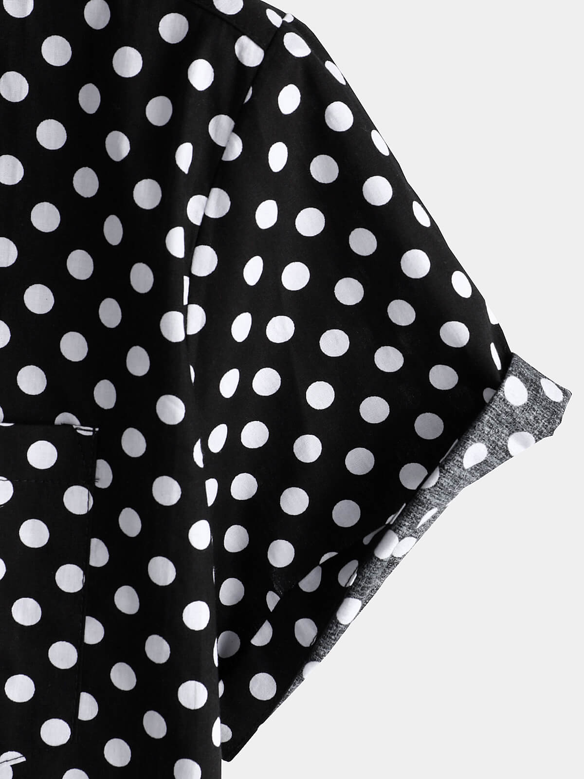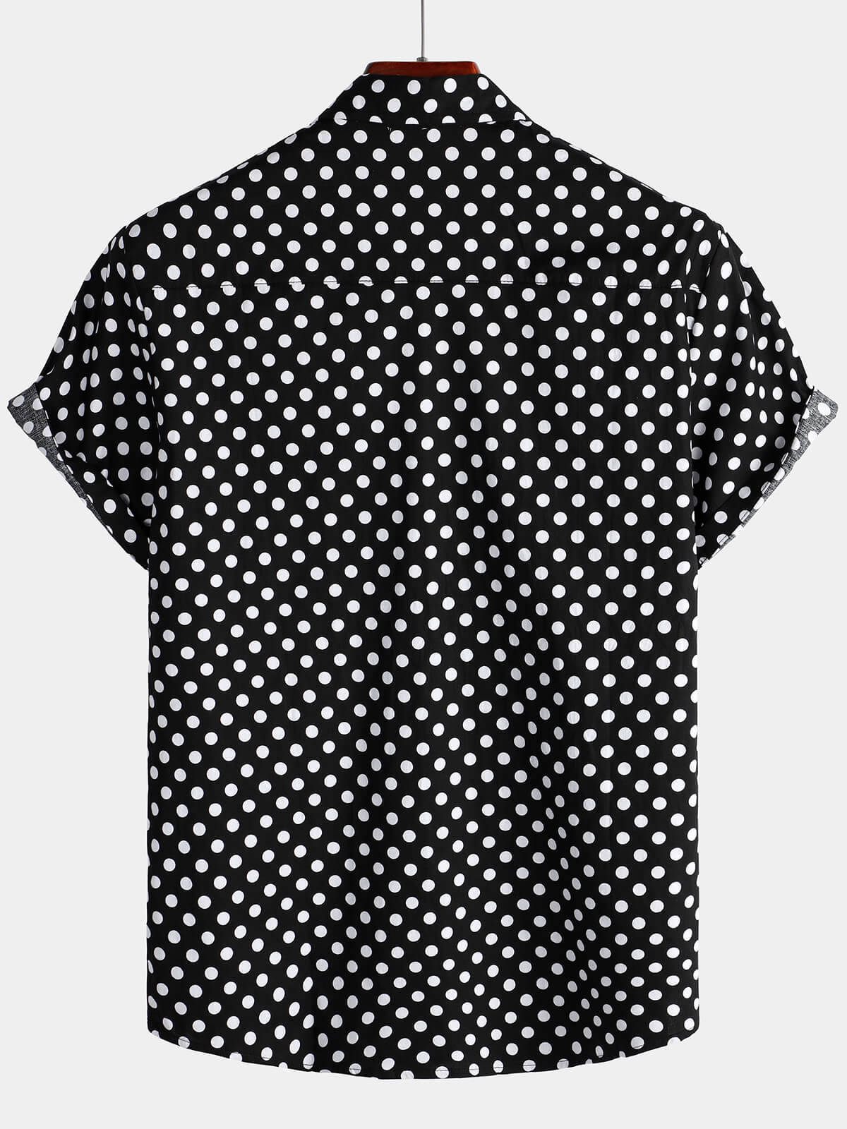 Men's Cotton Casual Polka Dot Summer Black Pocket Short Sleeve Shirt