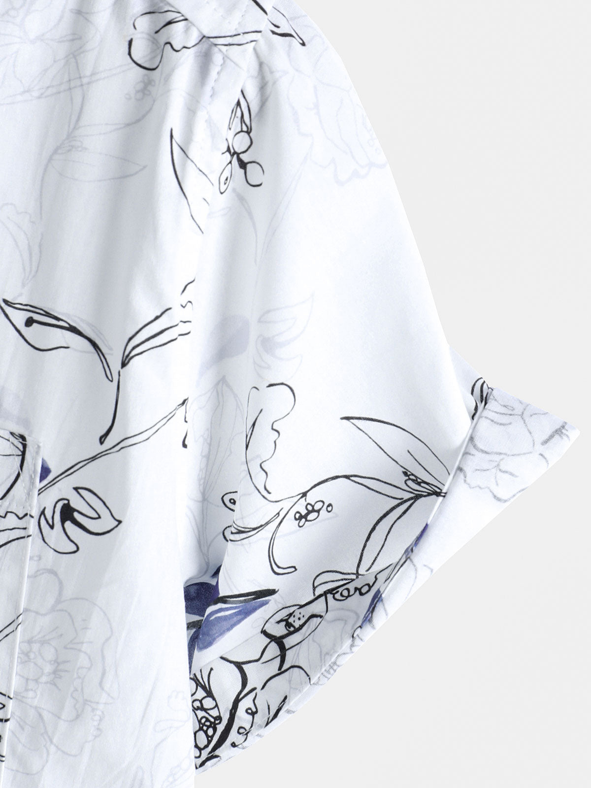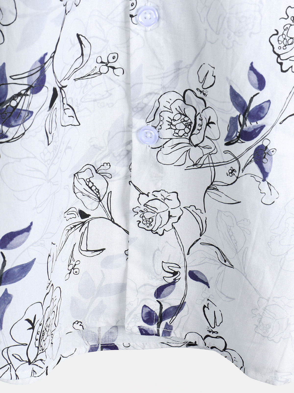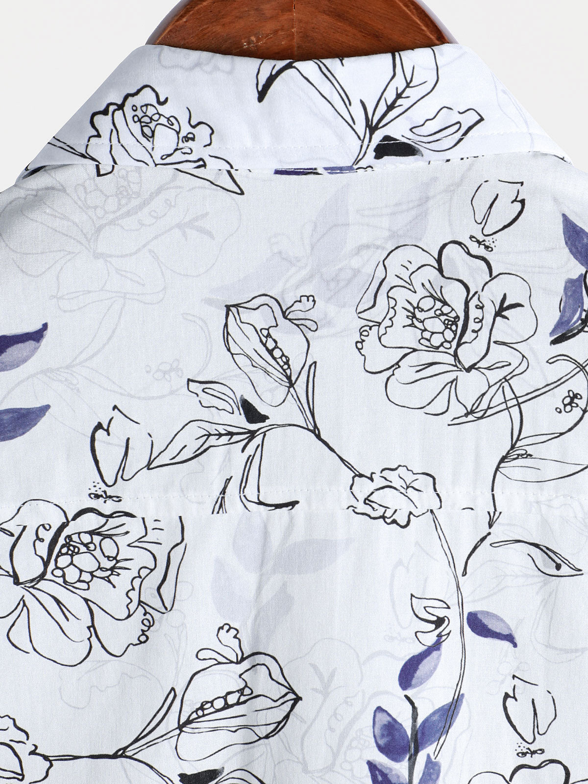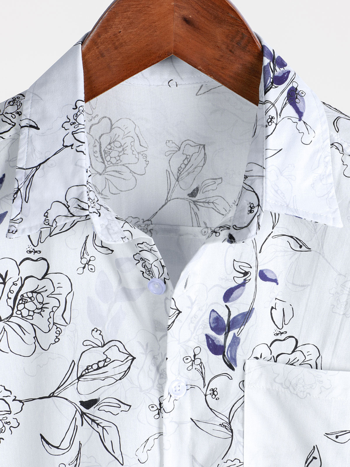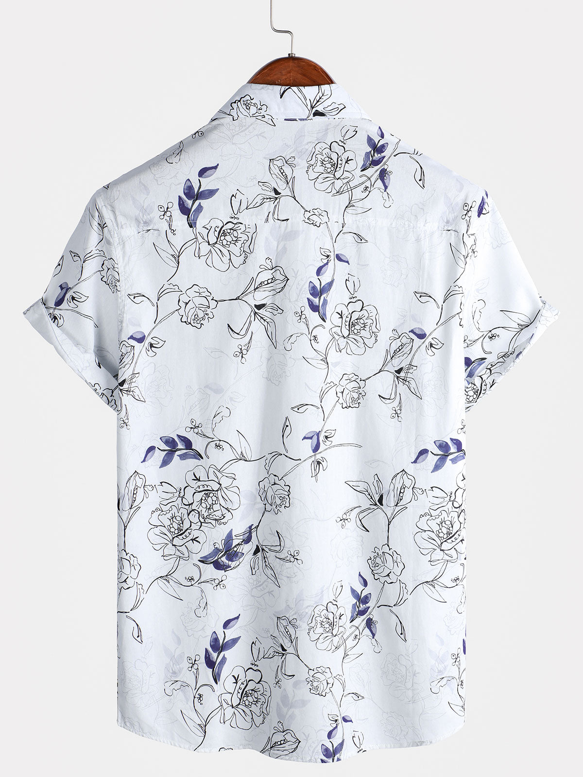 Men's Holiday Floral Print Cotton Short Sleeve Hawaiian Shirt
