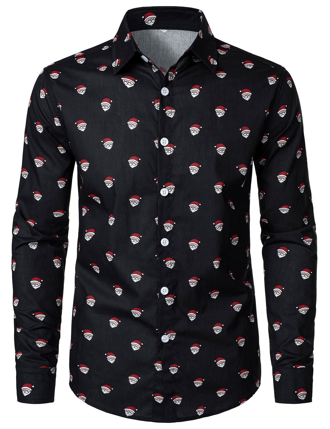 Men's Black Santa Print Christmas Long Sleeve Shirt