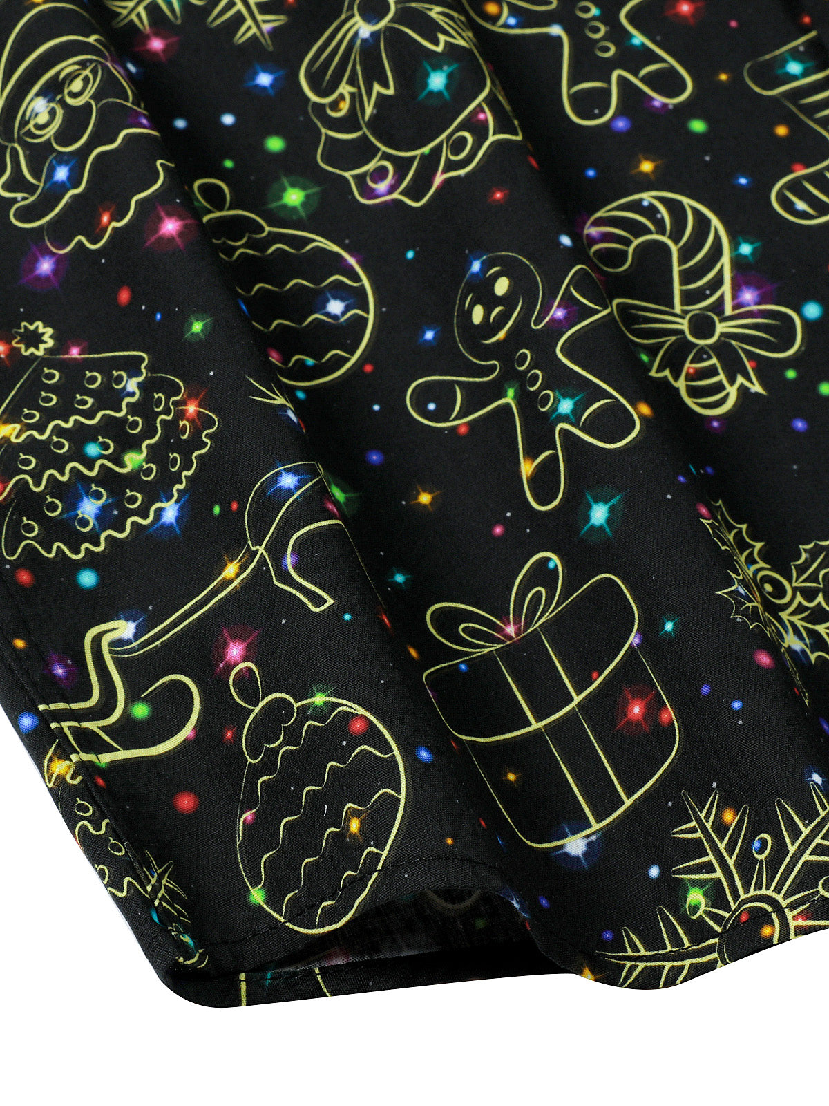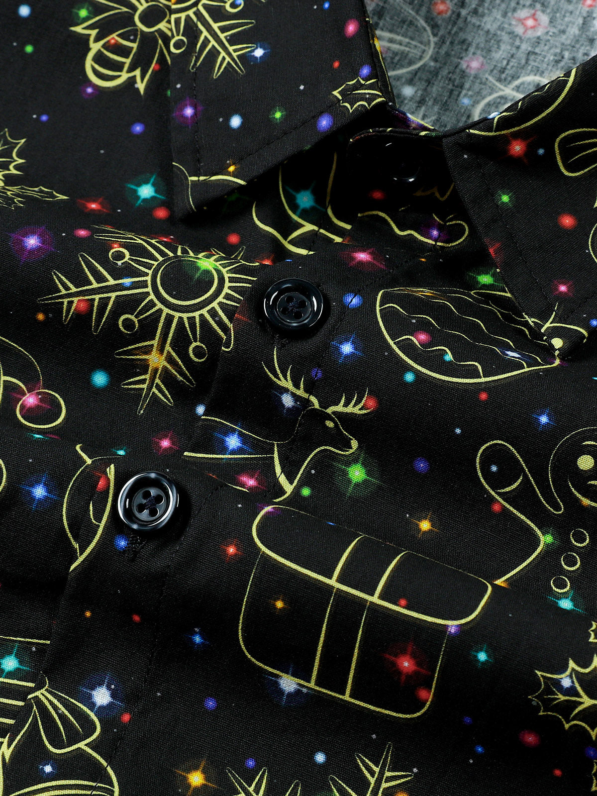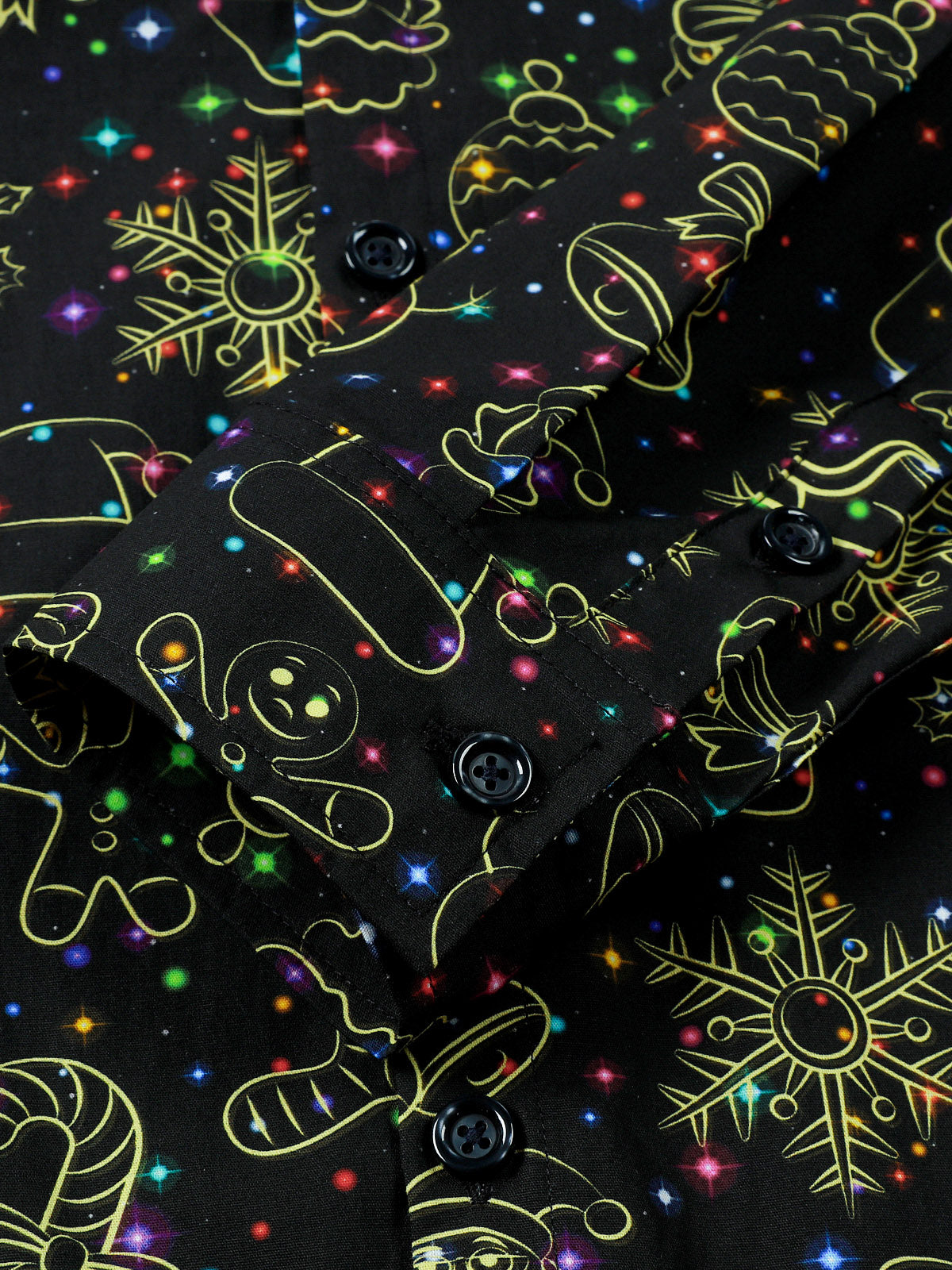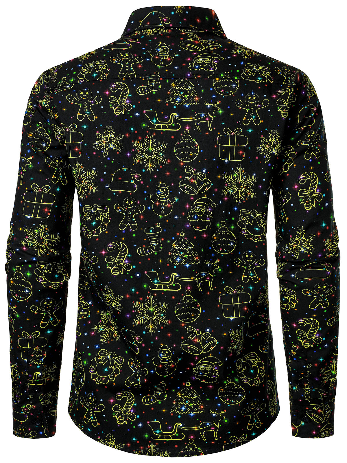 Men's Christmas Black Shiny Funny Long Sleeve Cotton Shirt