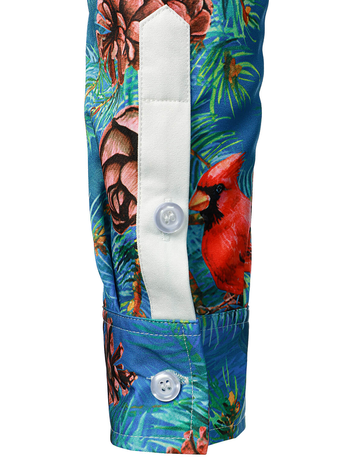 Men's Christmas Cardinals Birds Print Long Sleeve Shirt