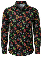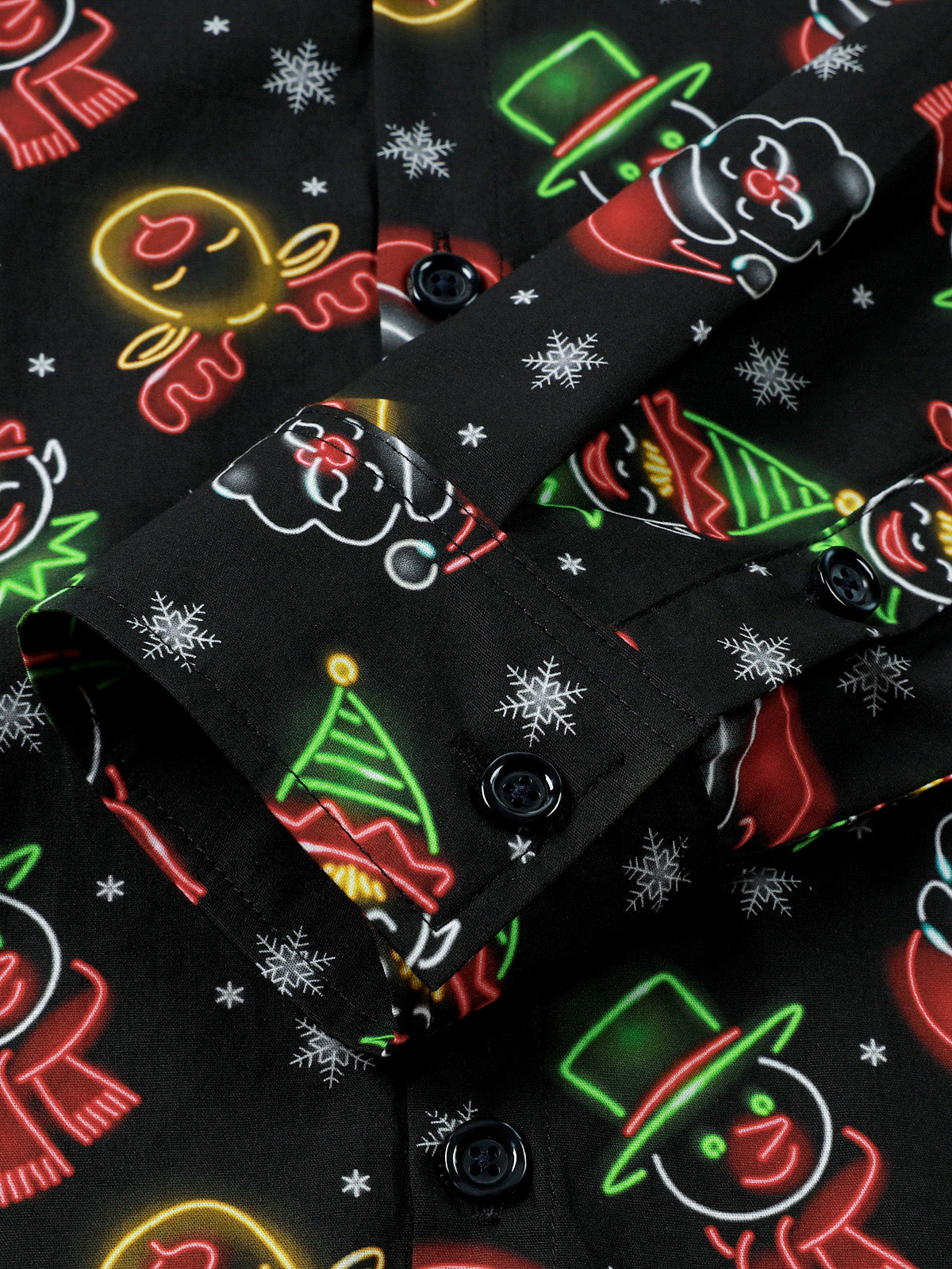 Men's Christmas Neon Pattern Long Sleeve Cotton Shirt