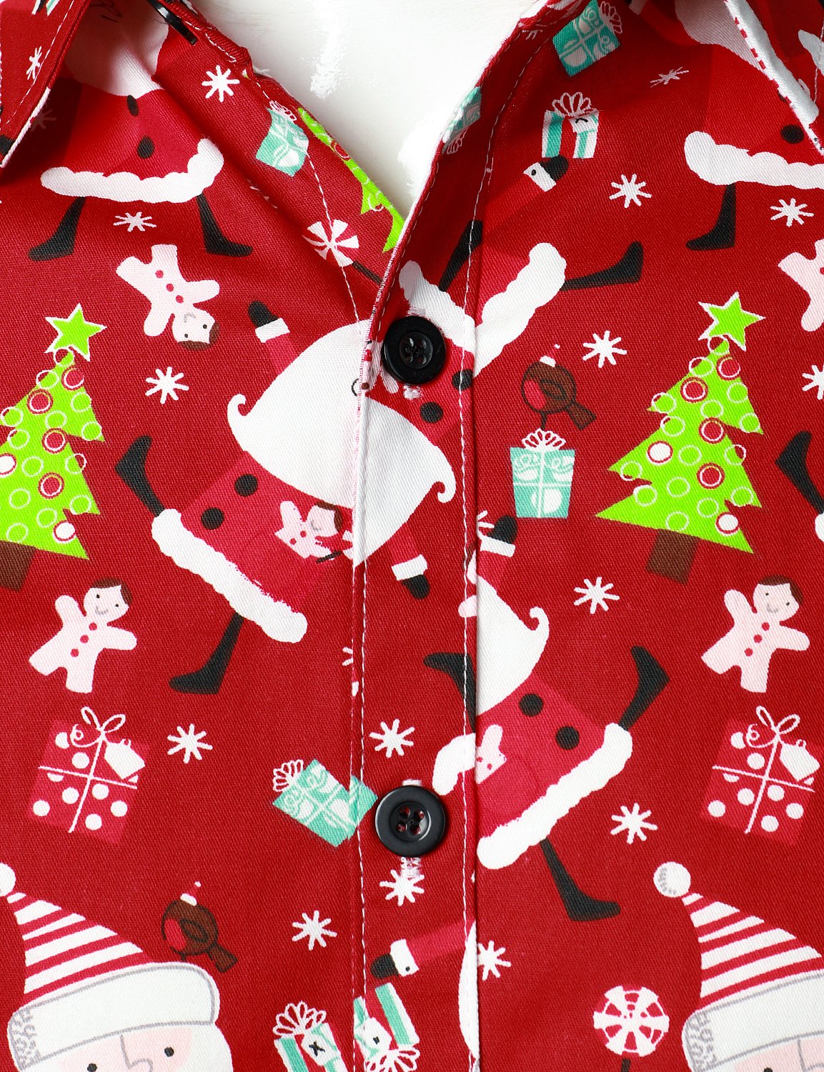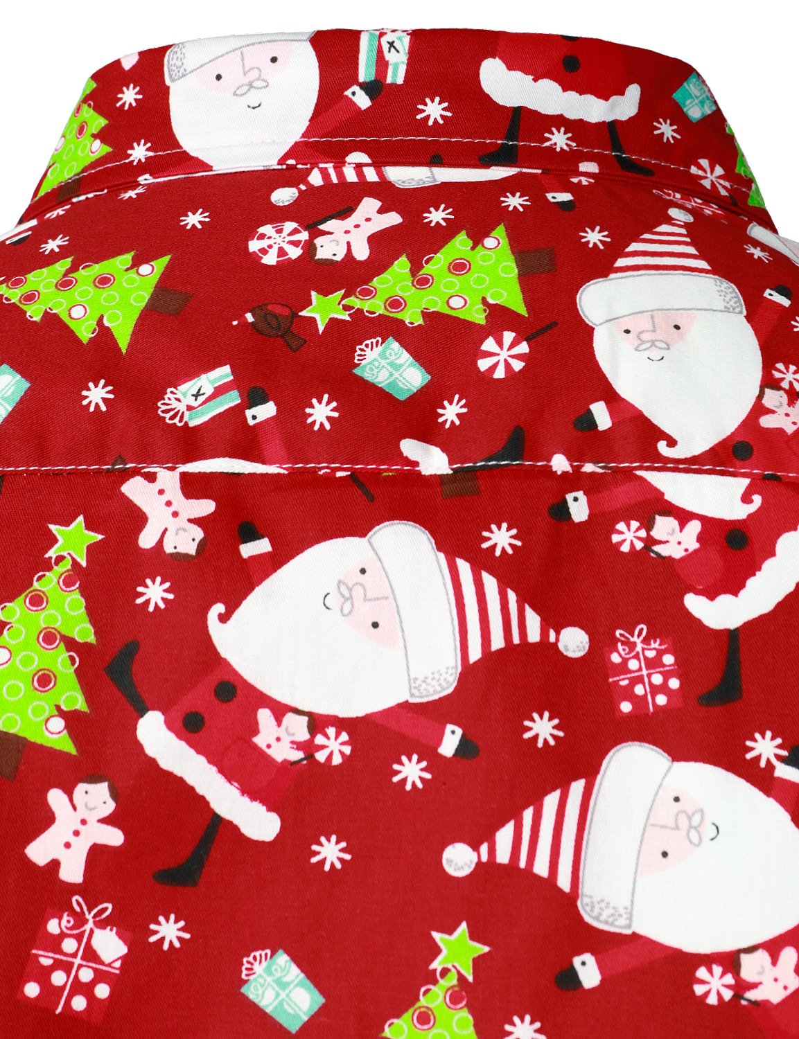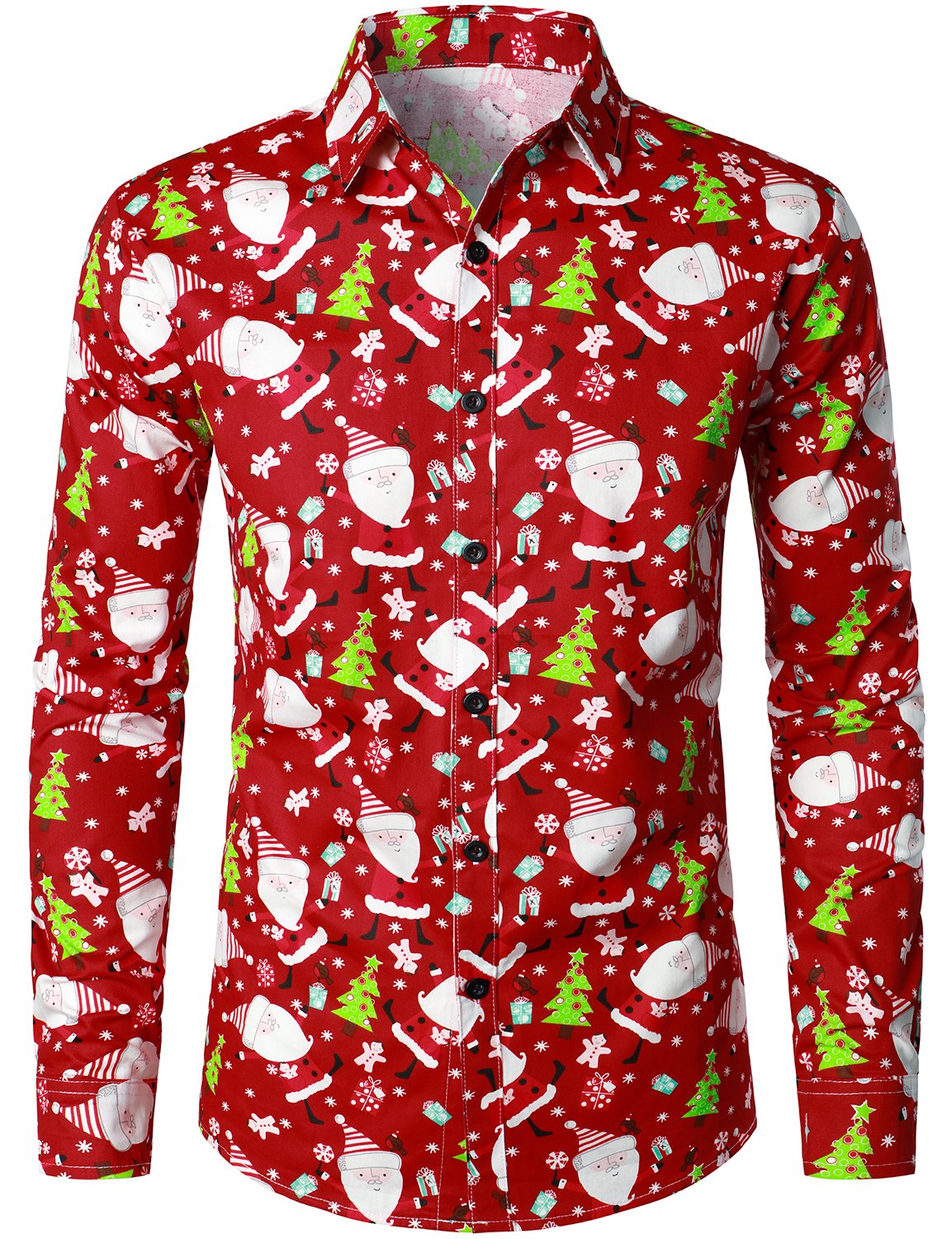 Men's Christmas Santa Print Regular Fit Red Long Sleeve Dress Shirt