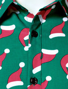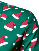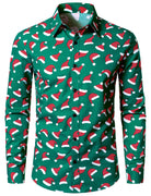 Men's Christmas Santa Hat Print Green Long Sleeve Shirt