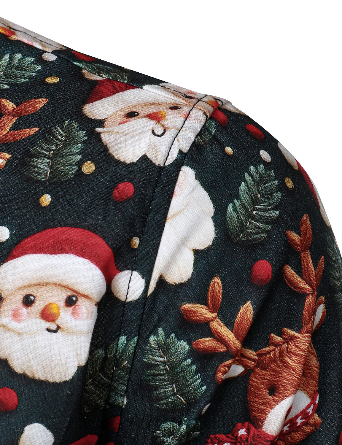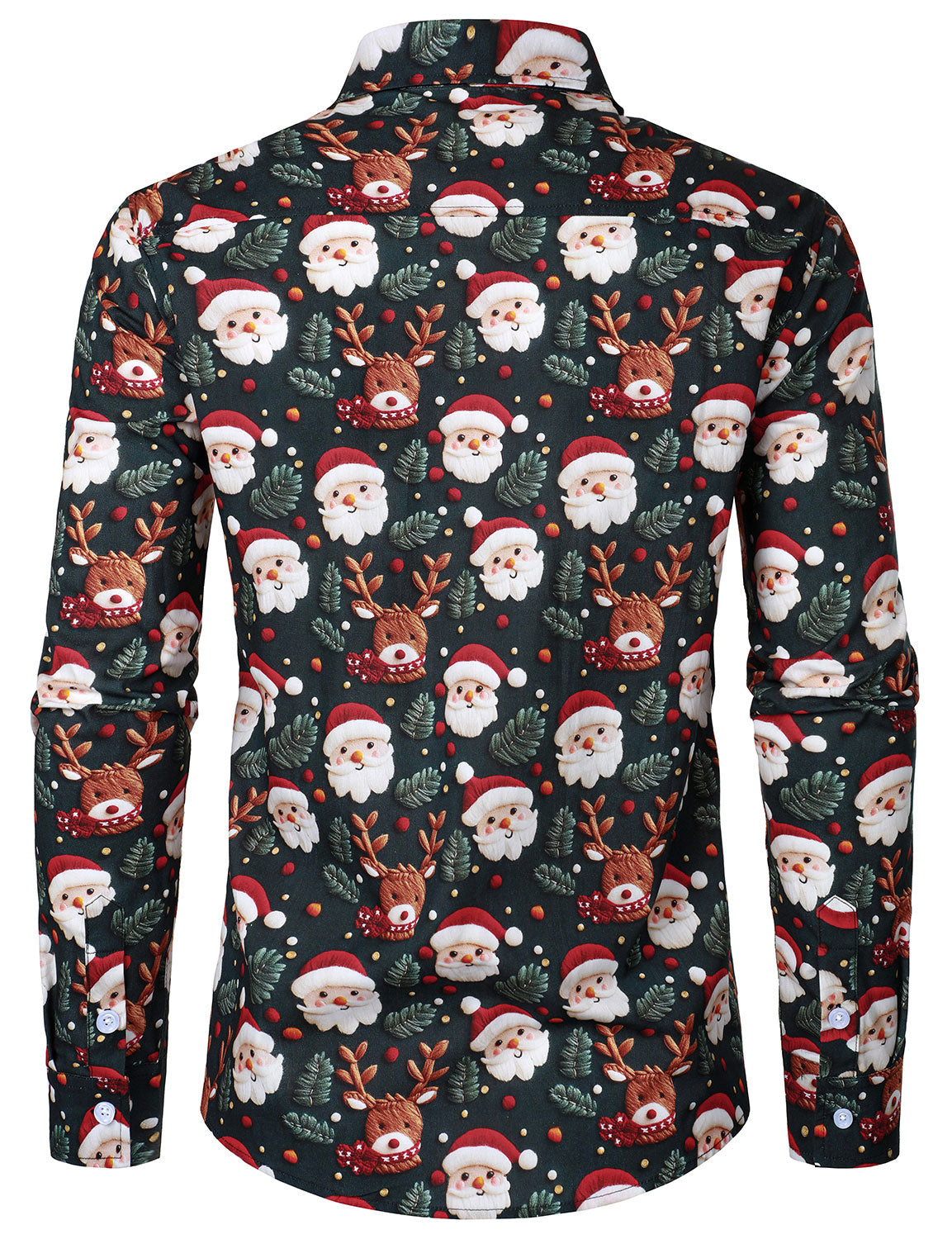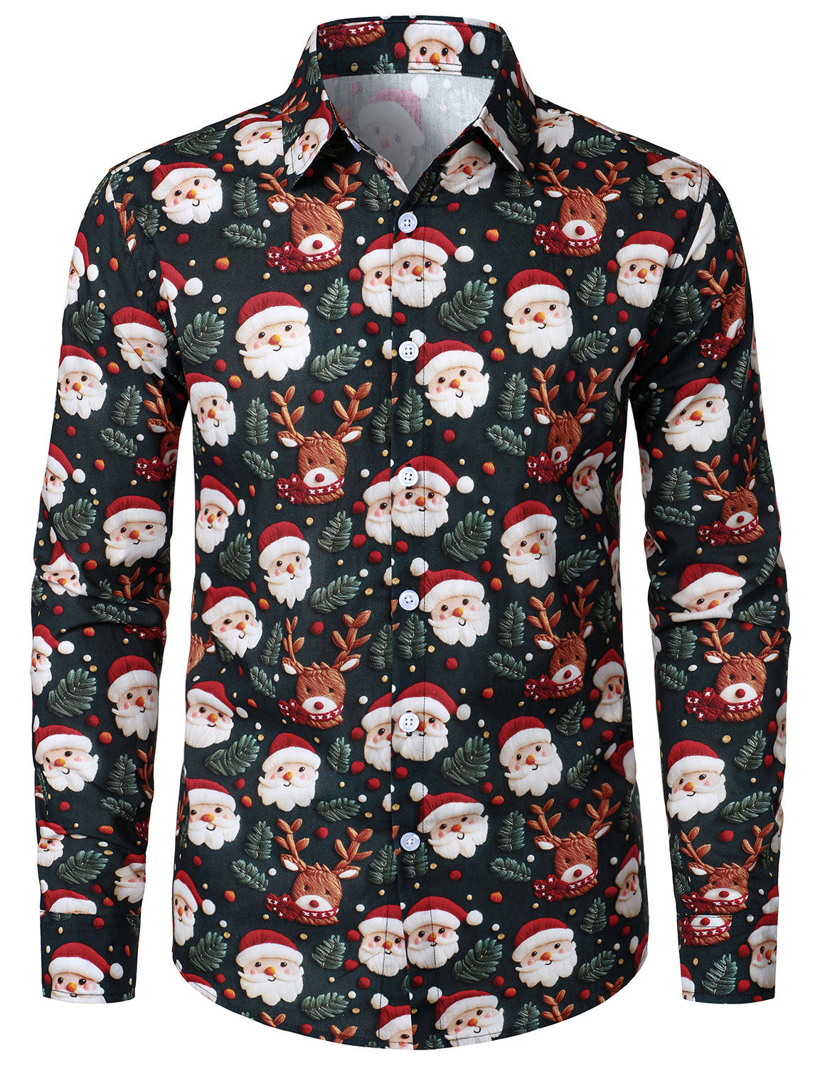 Men's Christmas Santa Print Funny Cotton Long Sleeve Shirt