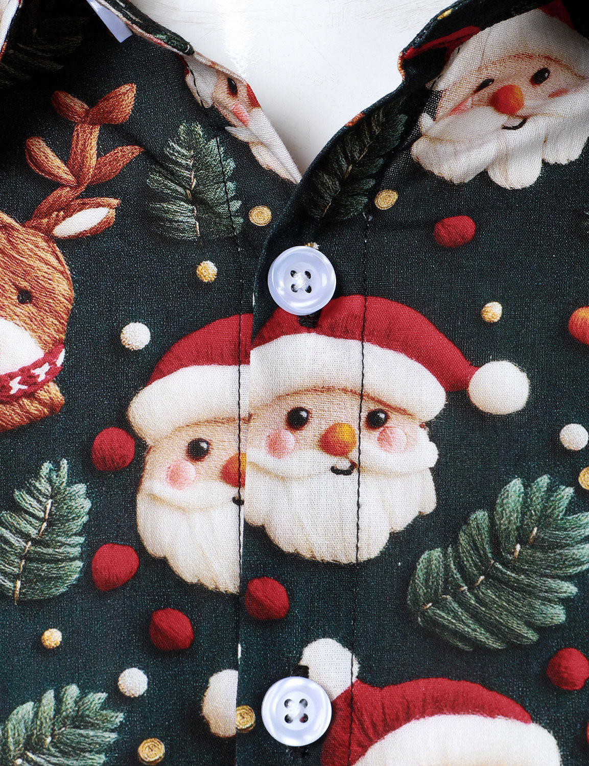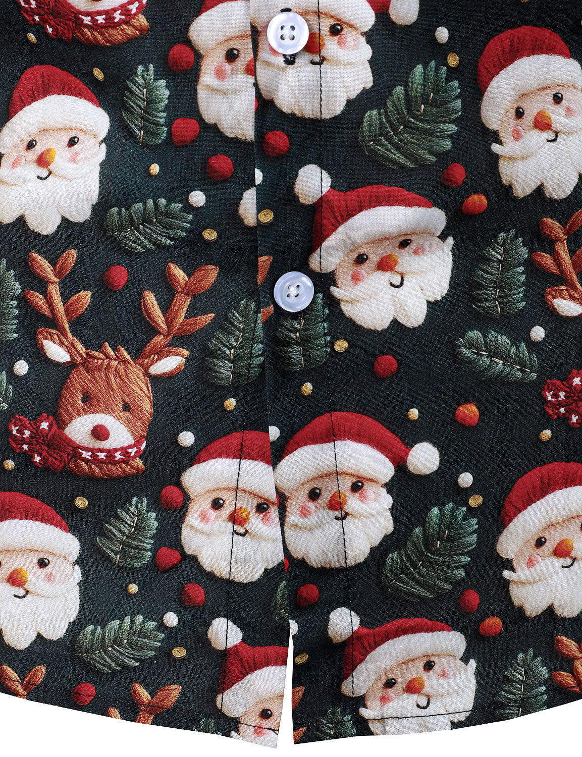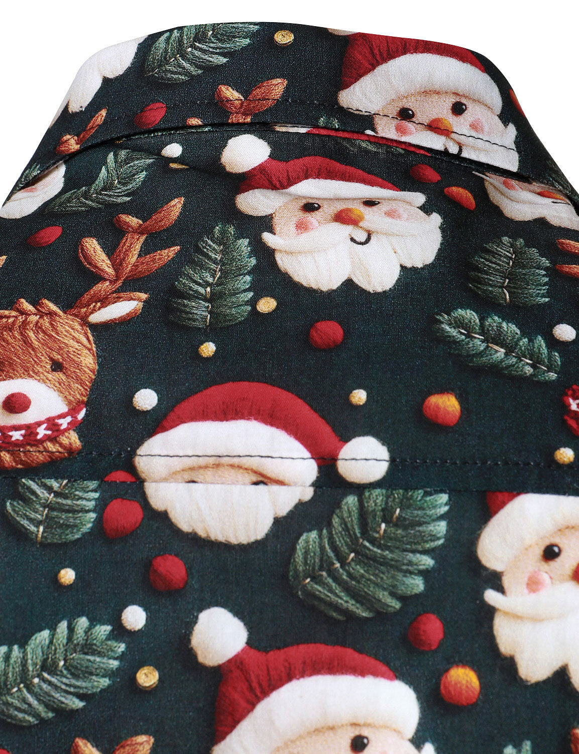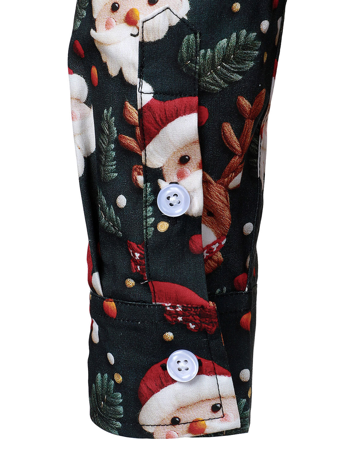 Men's Christmas Santa Print Funny Cotton Long Sleeve Shirt