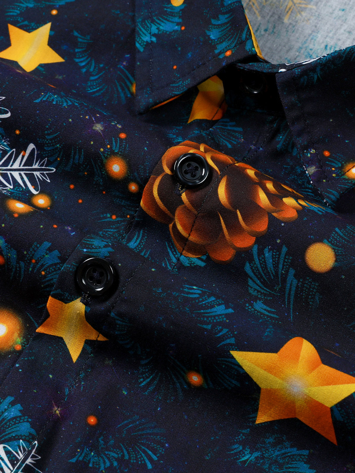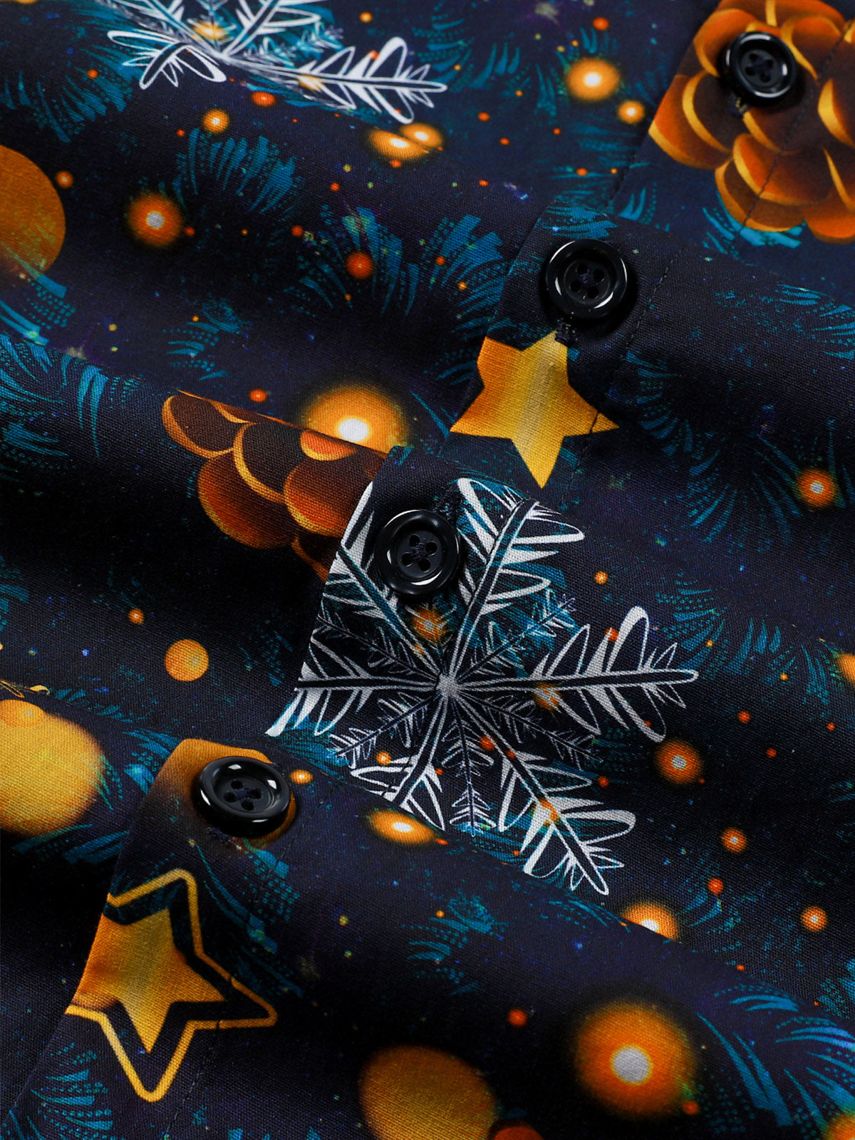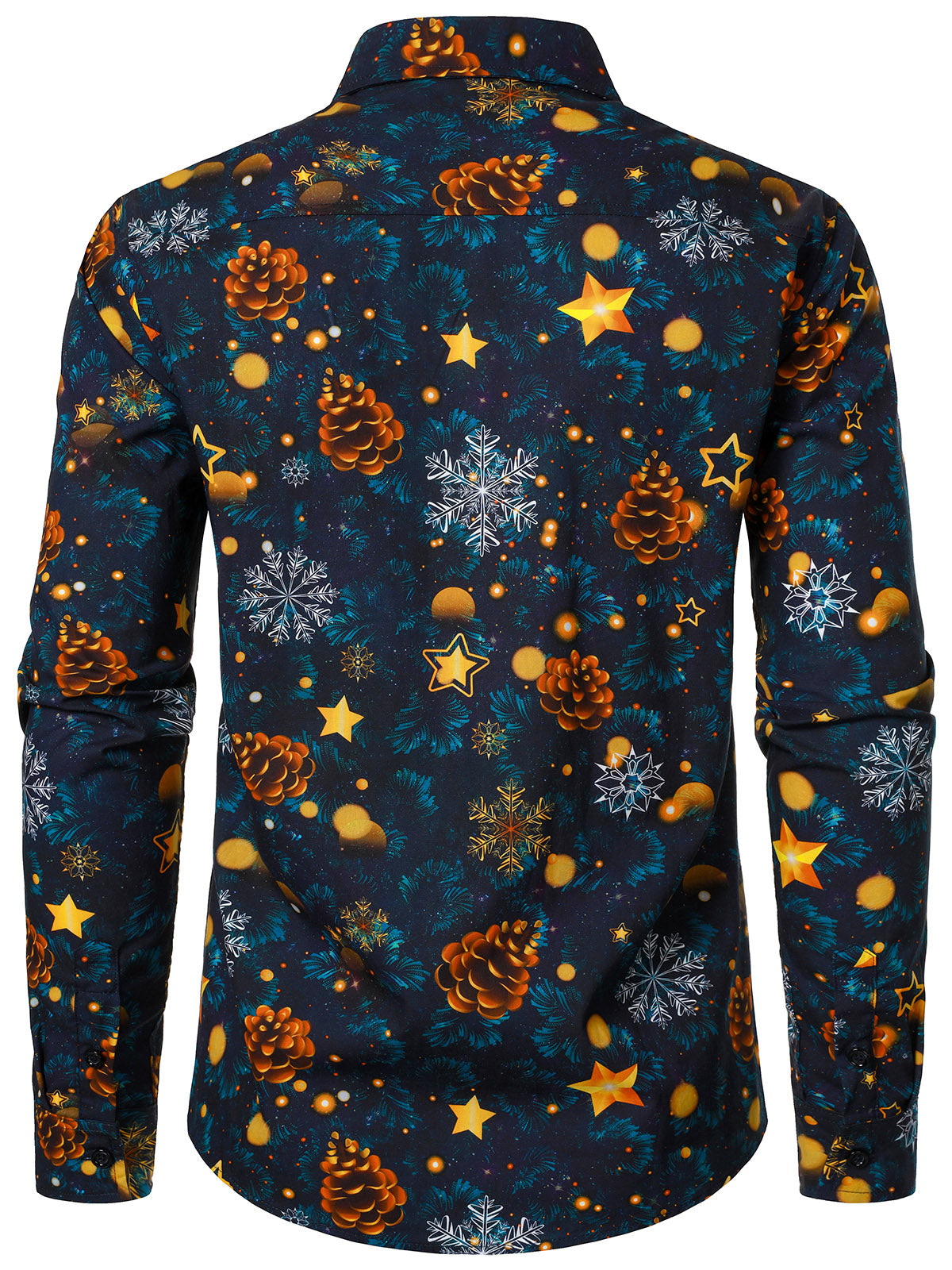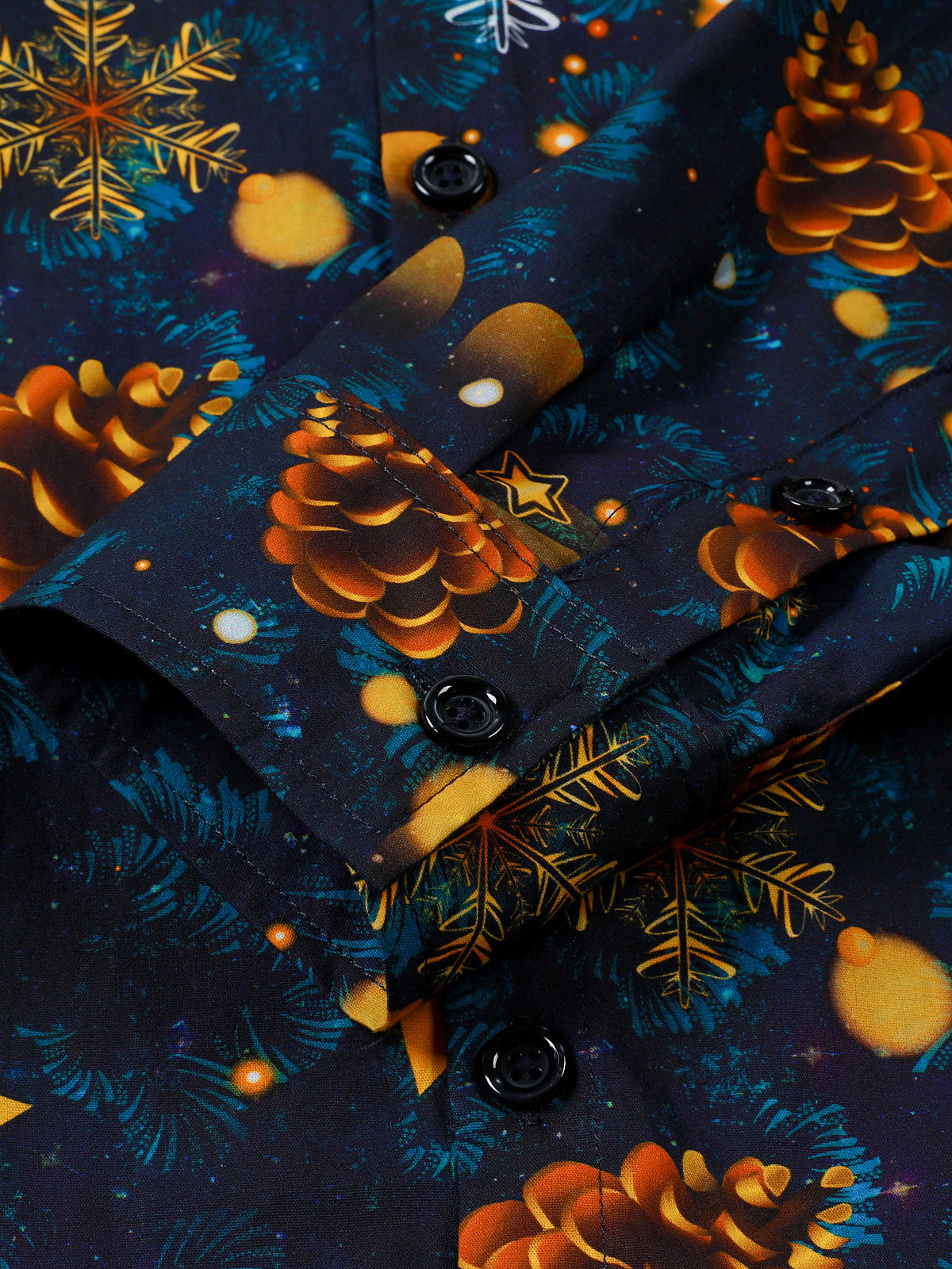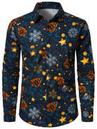 Men's Christmas Snowflake Holiday Cotton Long Sleeve Shirt