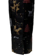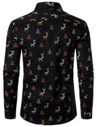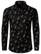 Men's Christmas Tree Elk Print Breathable Black Long Sleeve Shirt