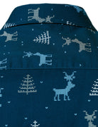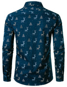 Men's Christmas Tree Elk Print Breathable Navy Blue Long Sleeve Shirt