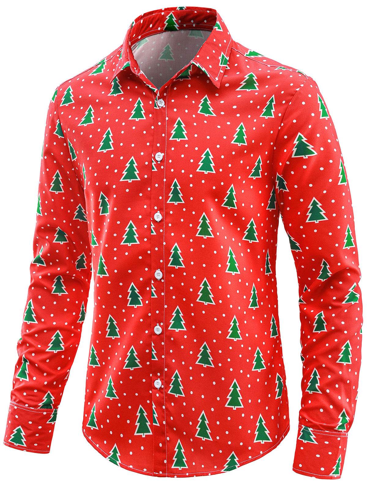 Men's Christmas Tree Holiday Button Down Long Sleeve Shirt