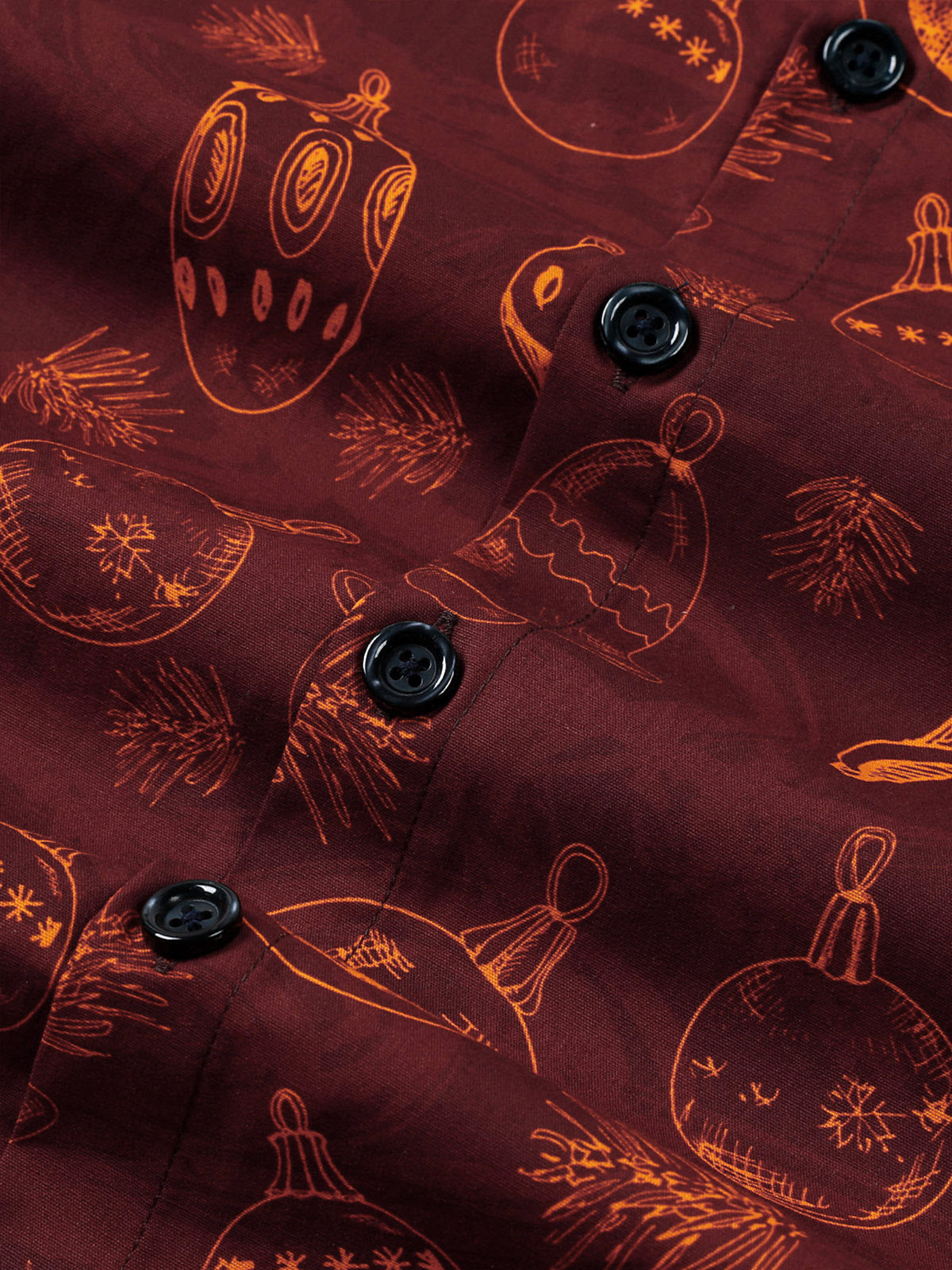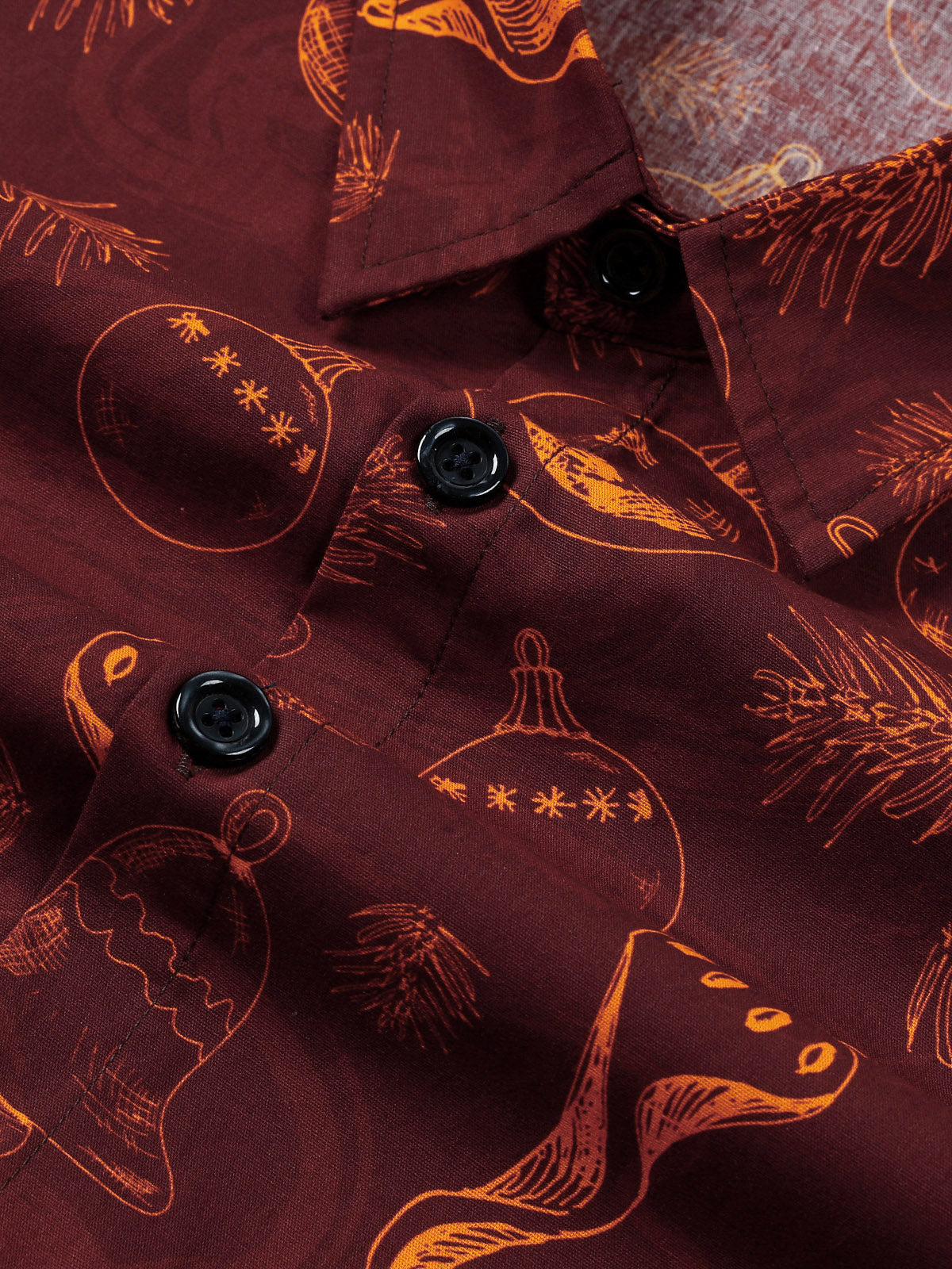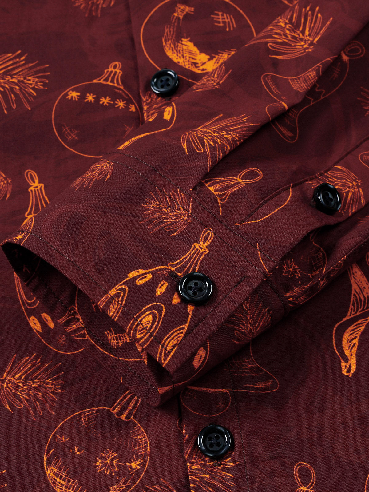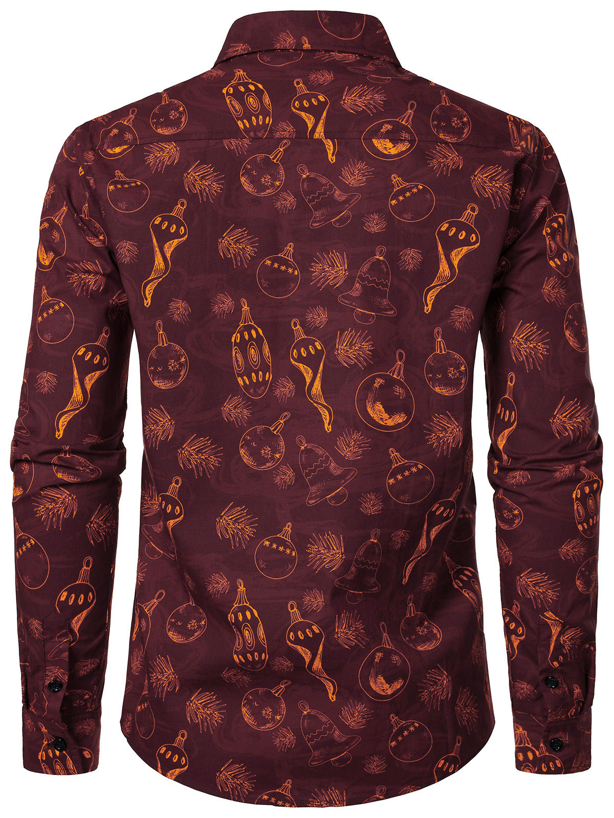 Men's Christmas Tree Print Xmas Party Cotton Long Sleeve Shirt